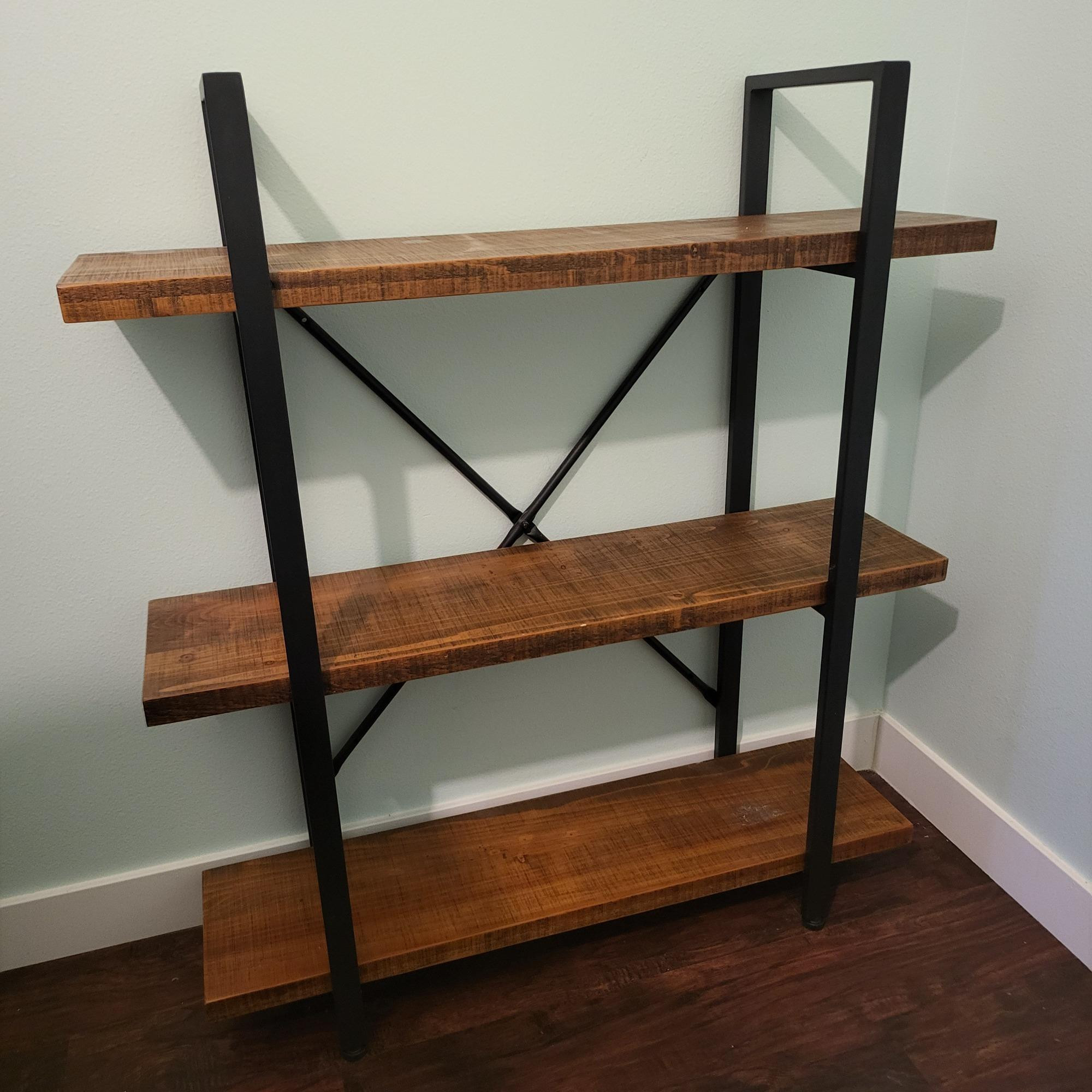 Versitile and lightweight three tier nutmeg wooden shelves and black metal construction frame. Perfect for any room.