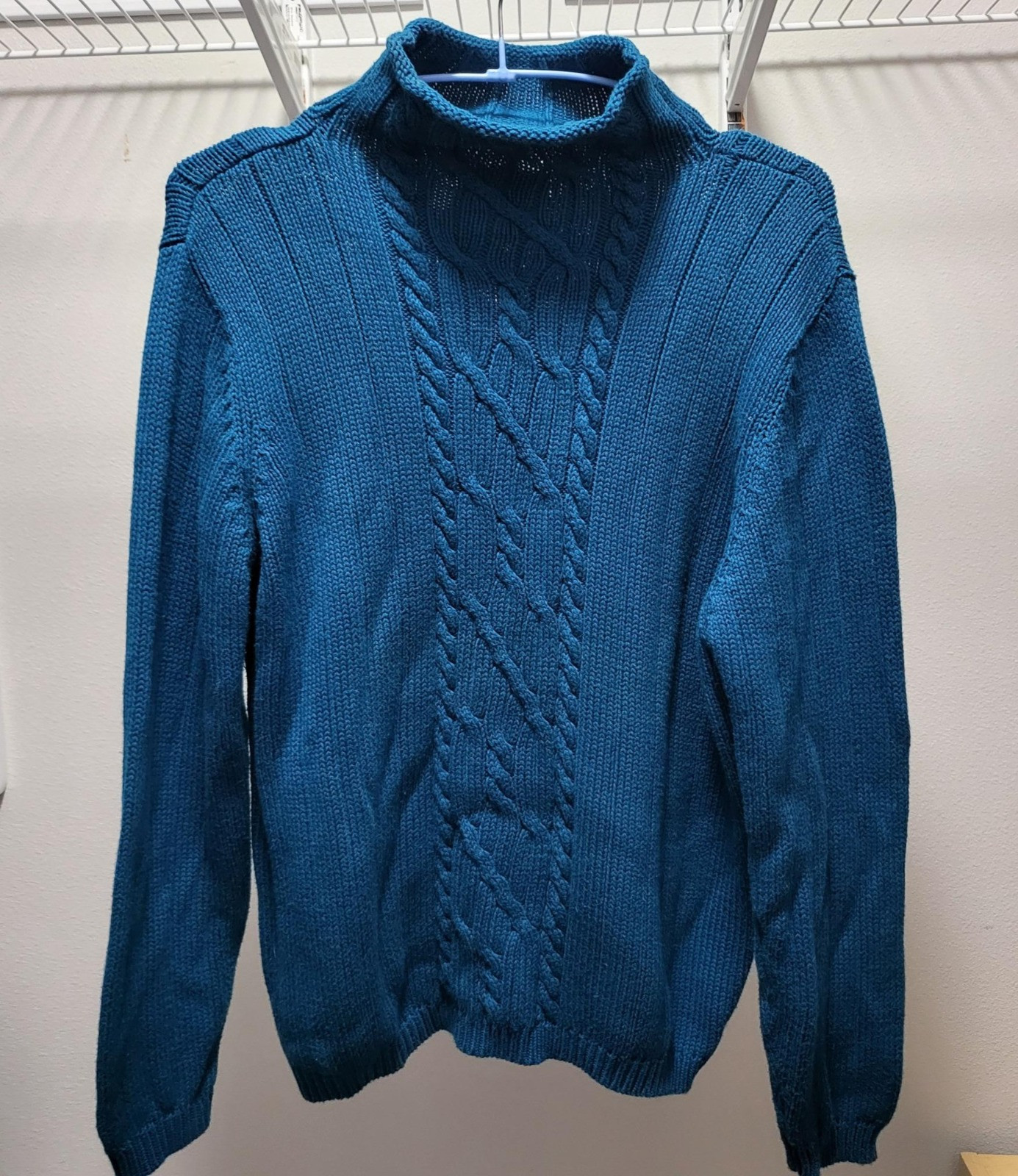 Beautiful dark teal Pendleton 100% cotton cable knit turtleneck sweater size large.