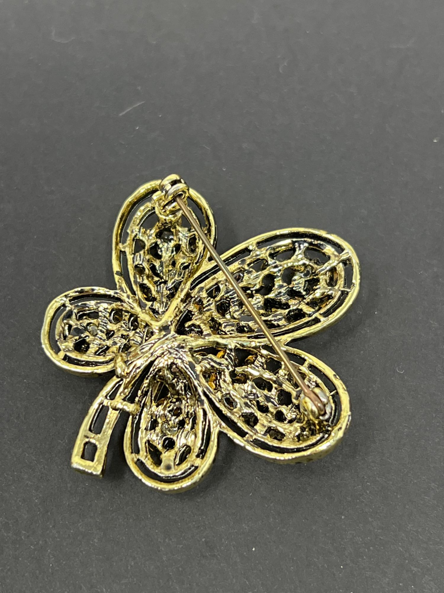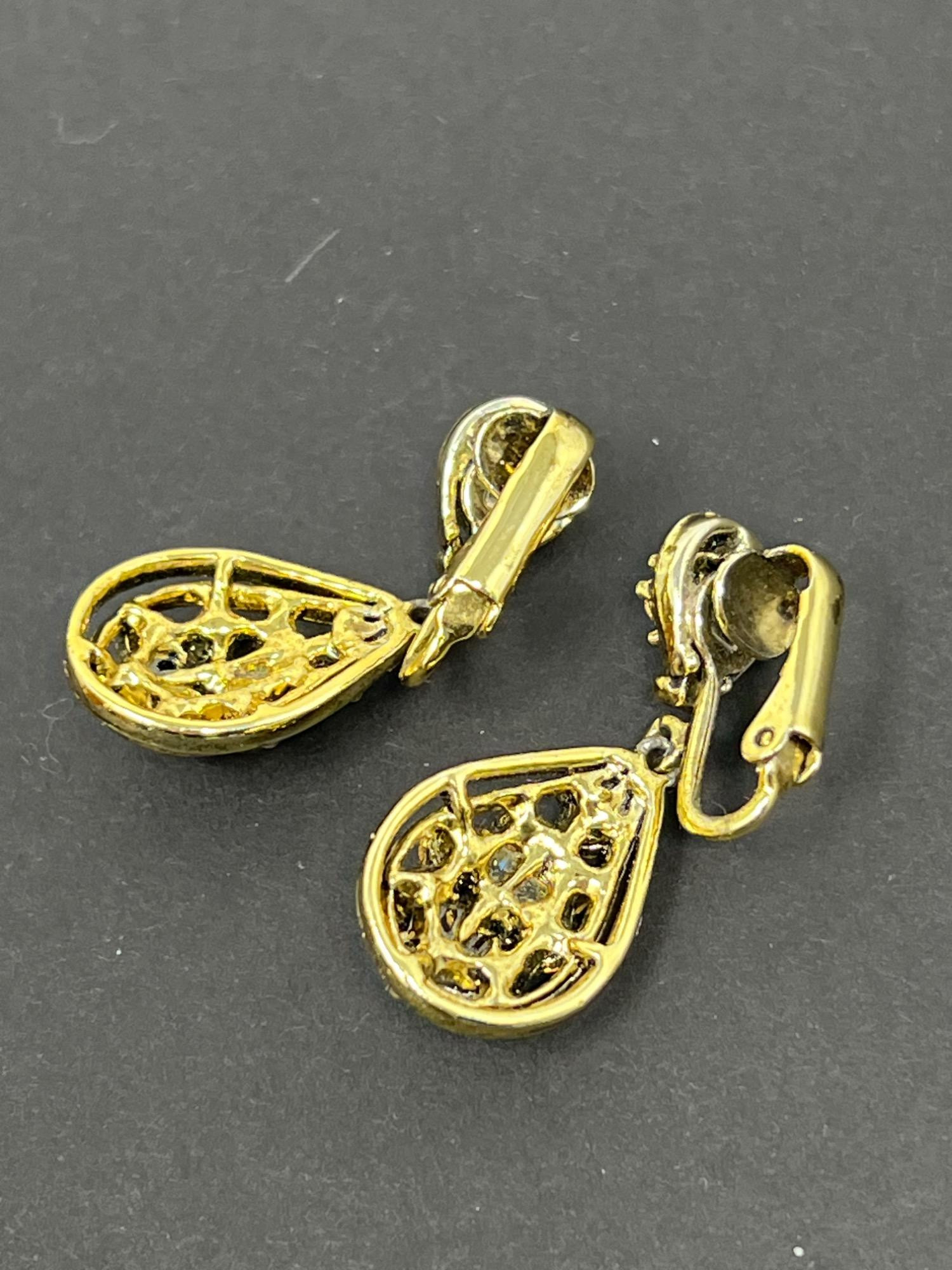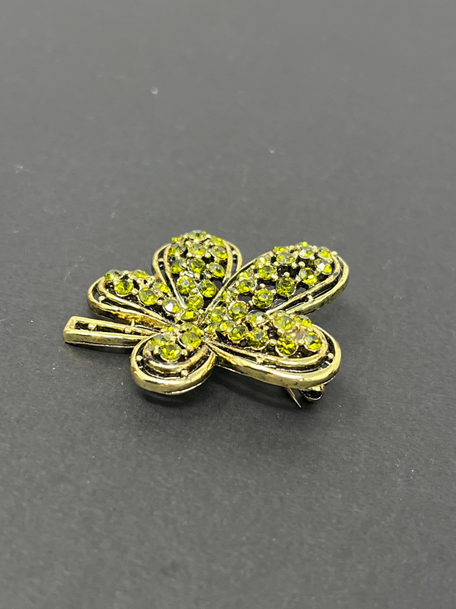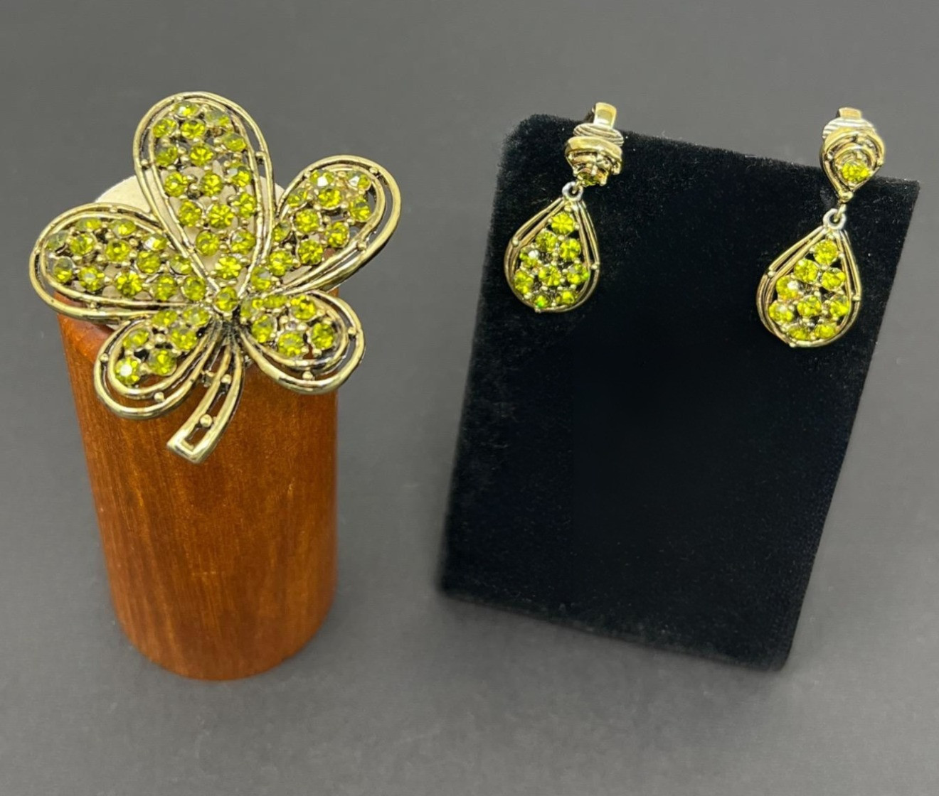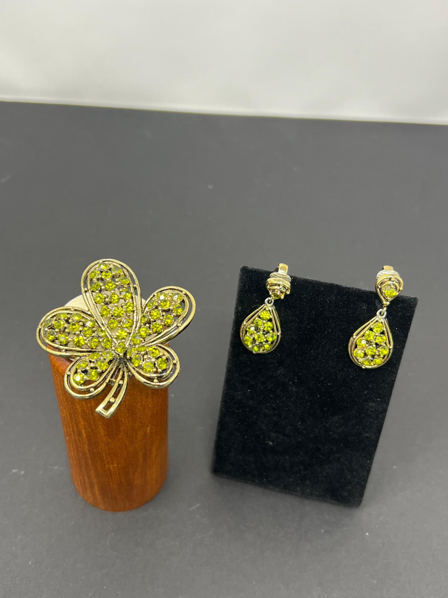 Lot # 5 - Vintage Lime Rhinestone 5 Petal Brooch & Drop Earrings
