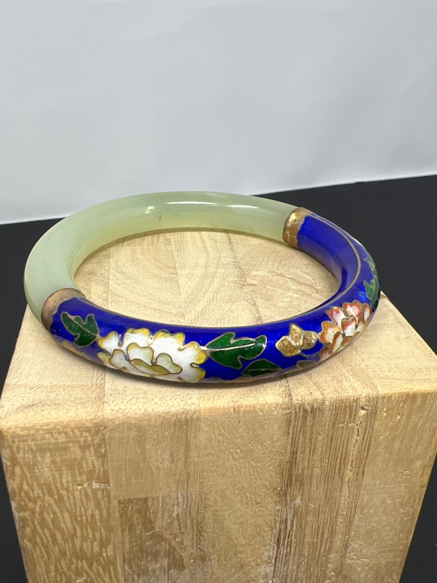 Lot # 29 - Vintage Chinese Jade & Cloisonné Bangle Bracelet