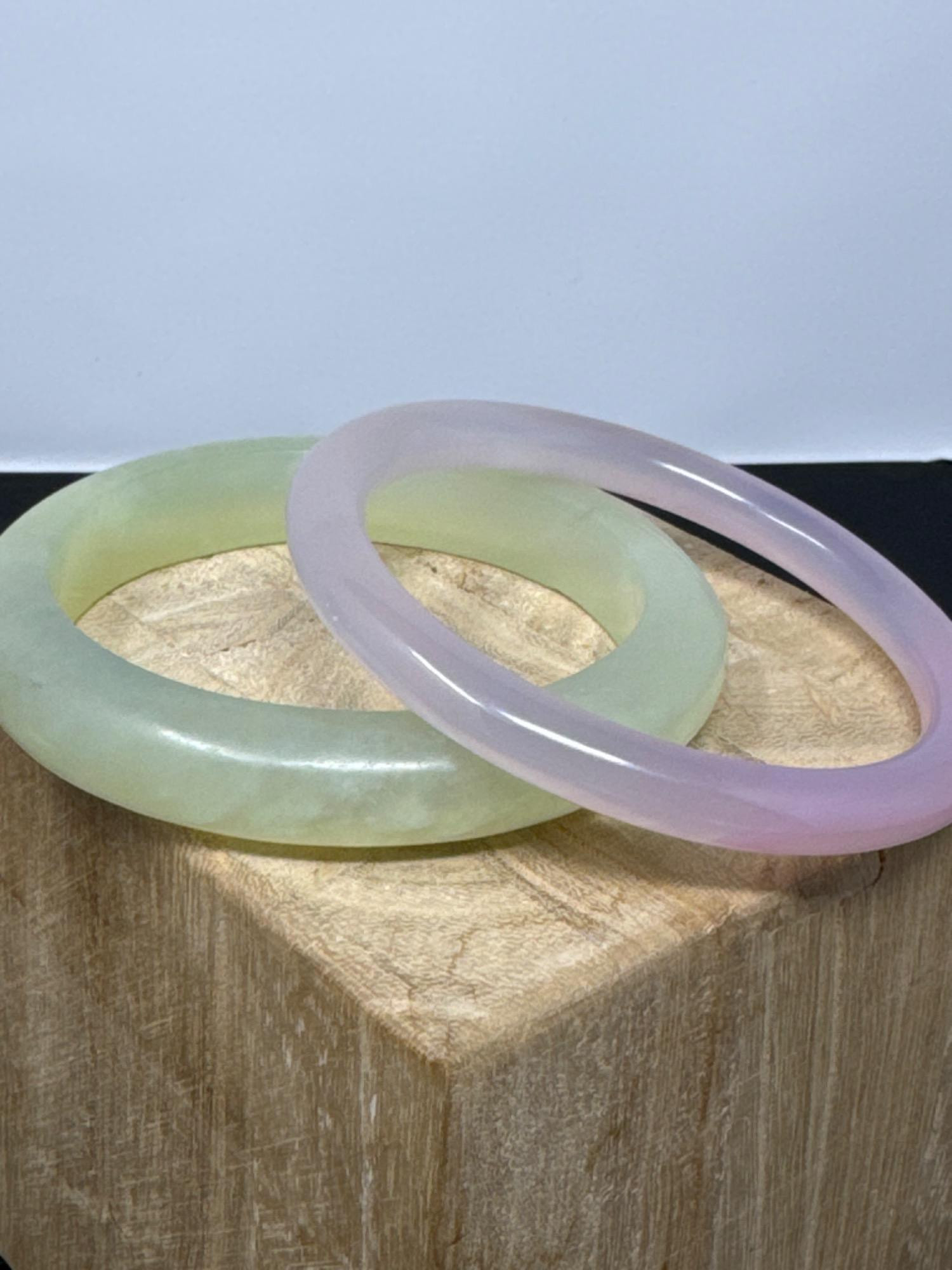 Natural Light Green and Natural White Pink Jade Gemstone Chinese Bangle Bracelets.
