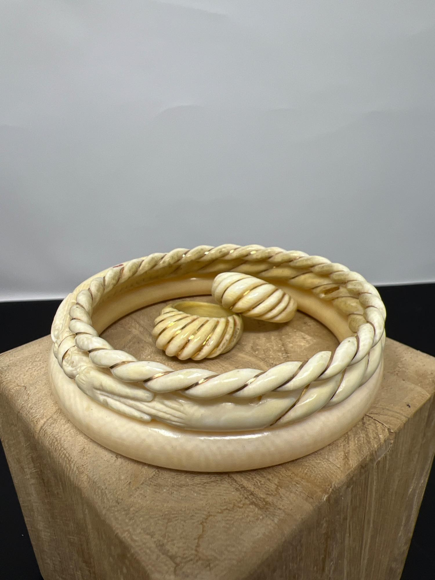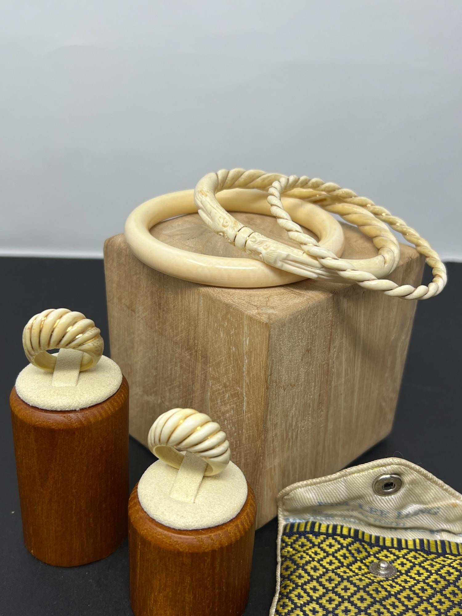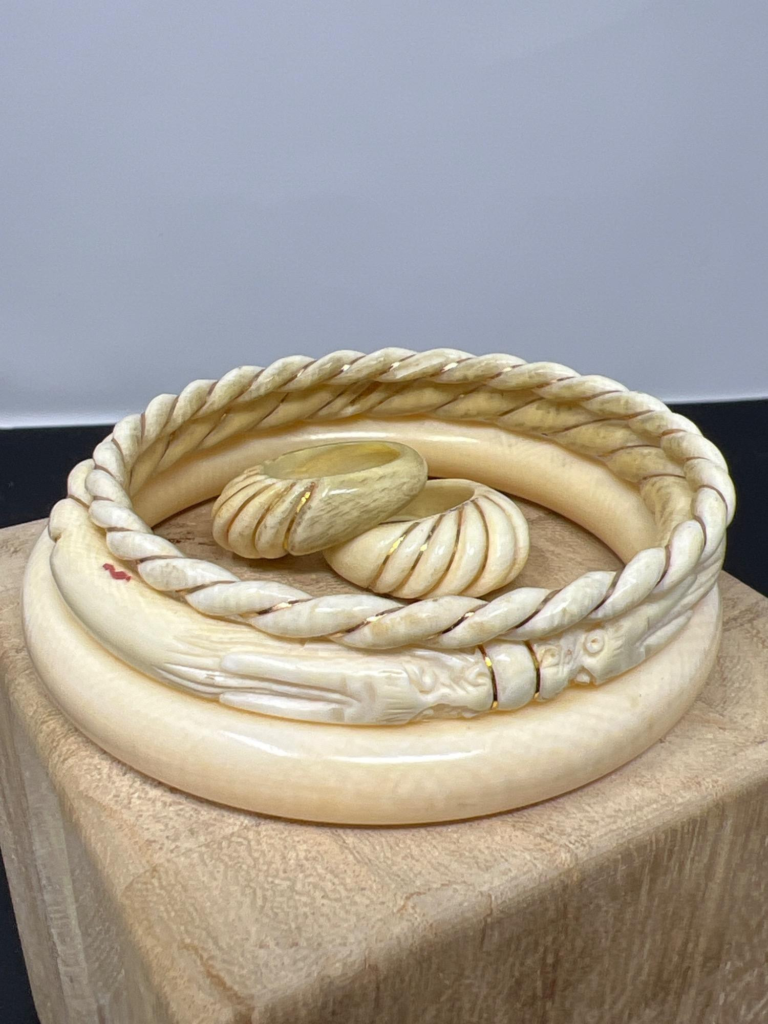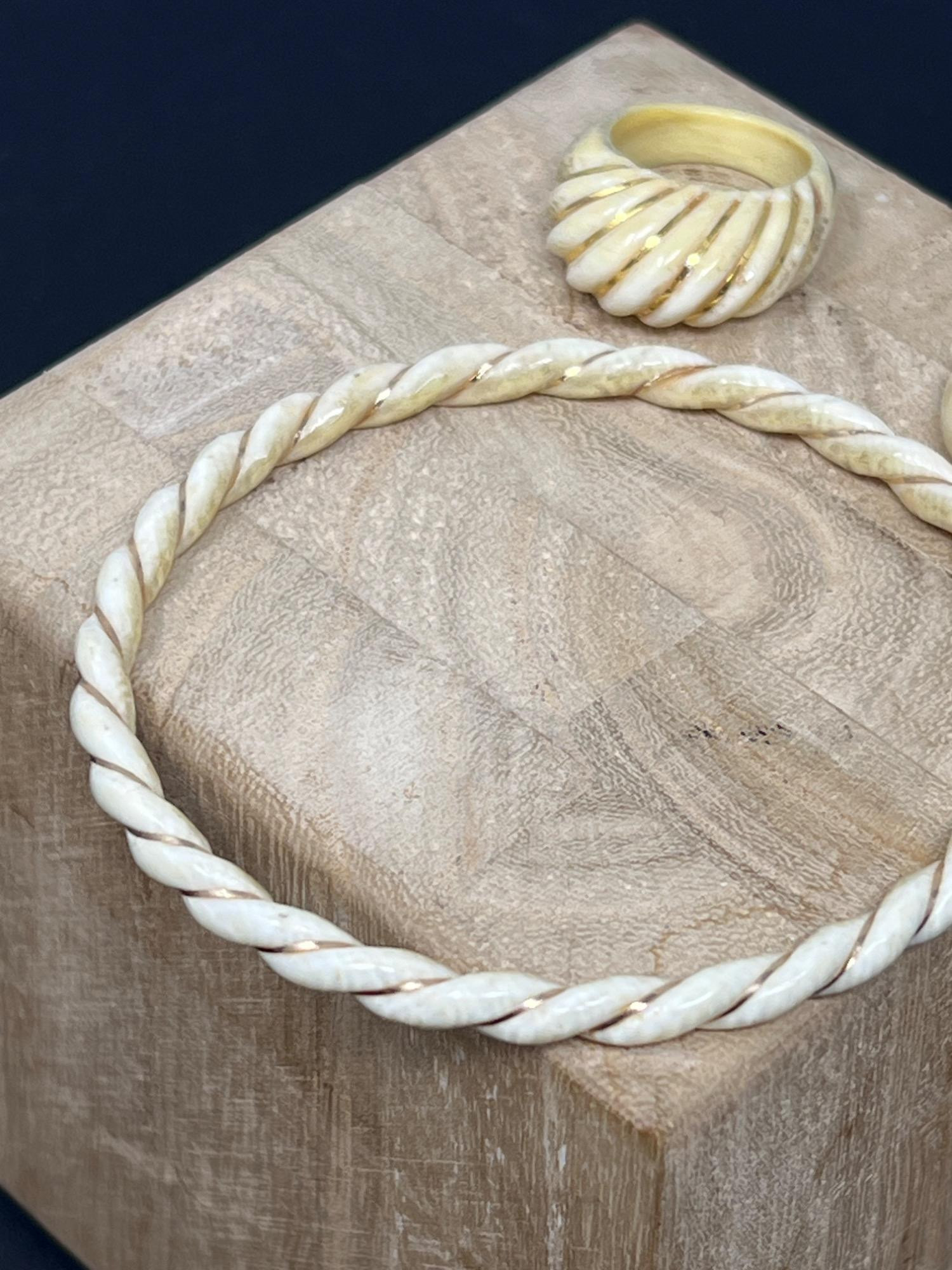 Lot # 50 - Bone & 14k Gold Threads - Bracelet & Rings