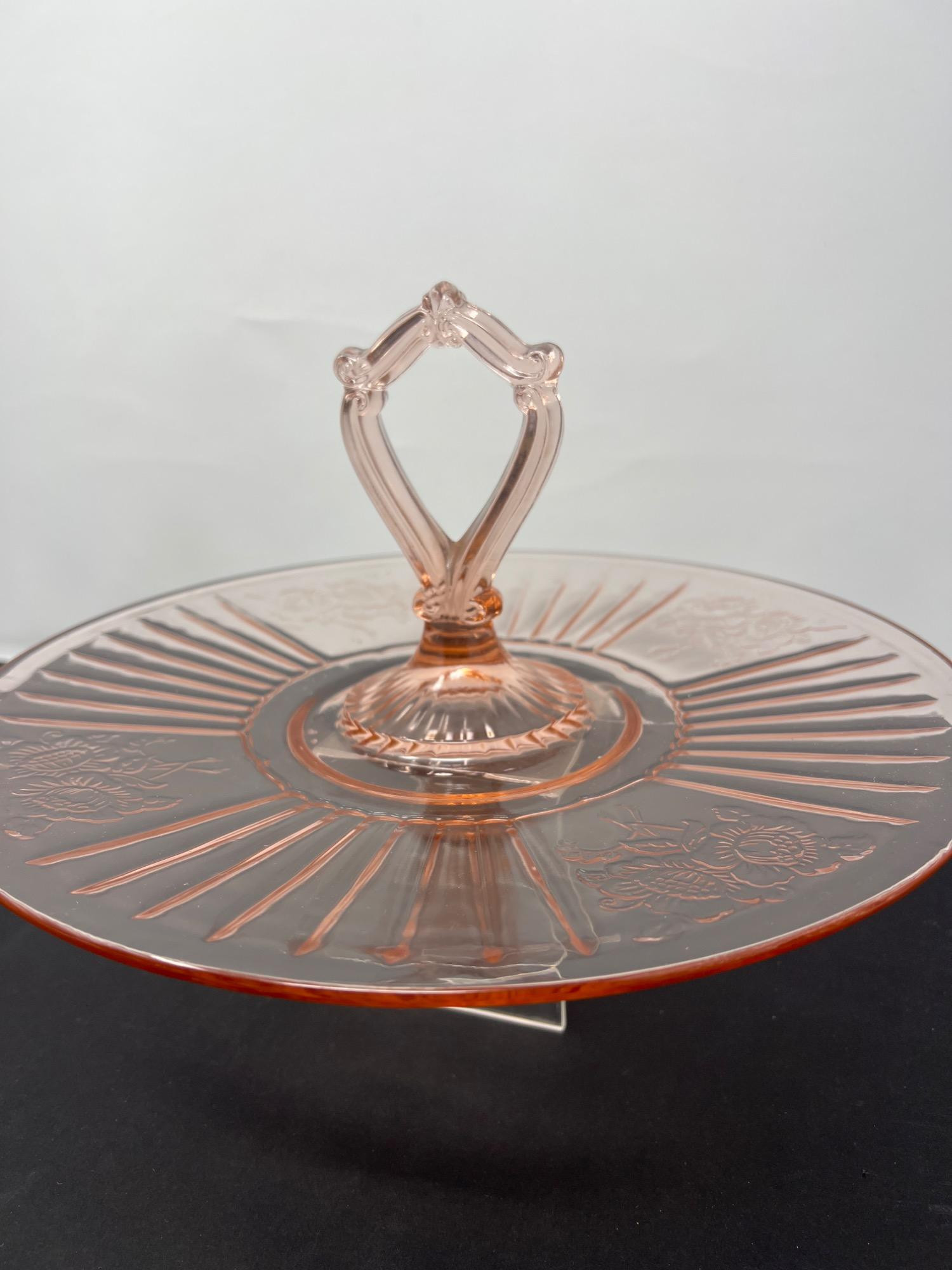 Lot # 60 - Pink Depression Glass Handled Serving Tray
