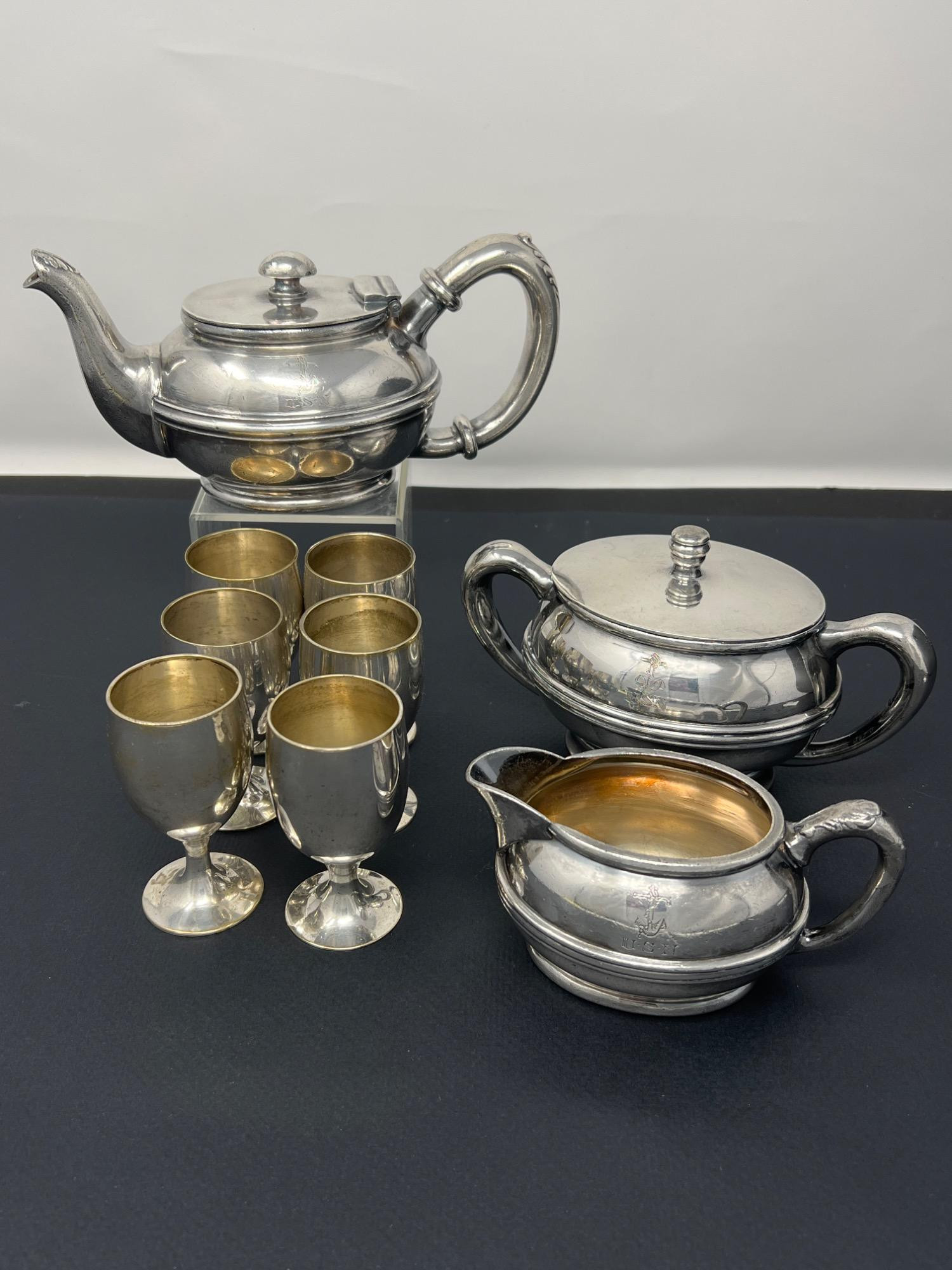 Lot # 69 - Silver Soldered USN Teapot & Service