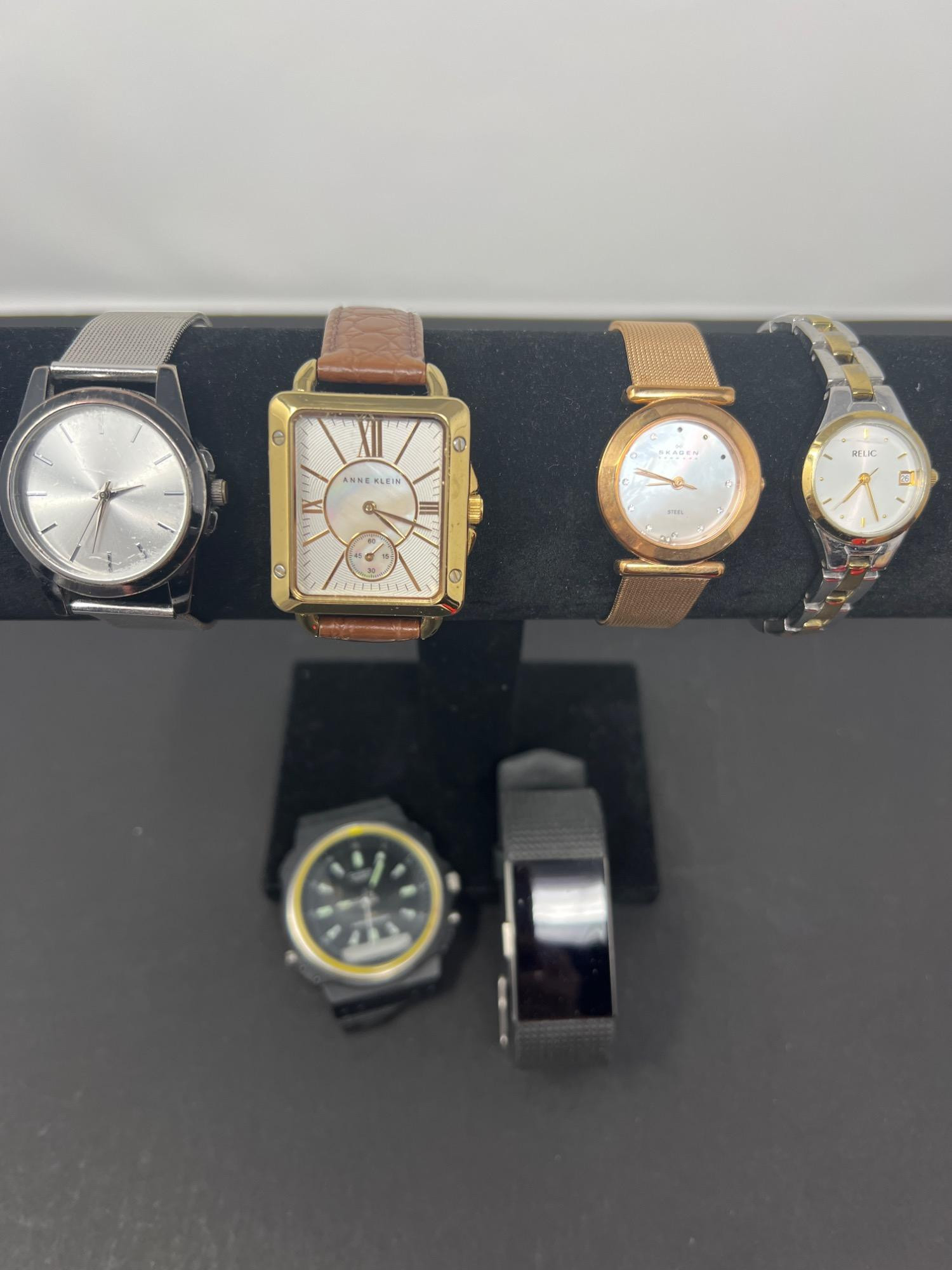 Vintage watches - Skagen, Anne Klein, Relic; a Fitbit (powers on), and Casio watch for parts. Watches all need new batteries. GT