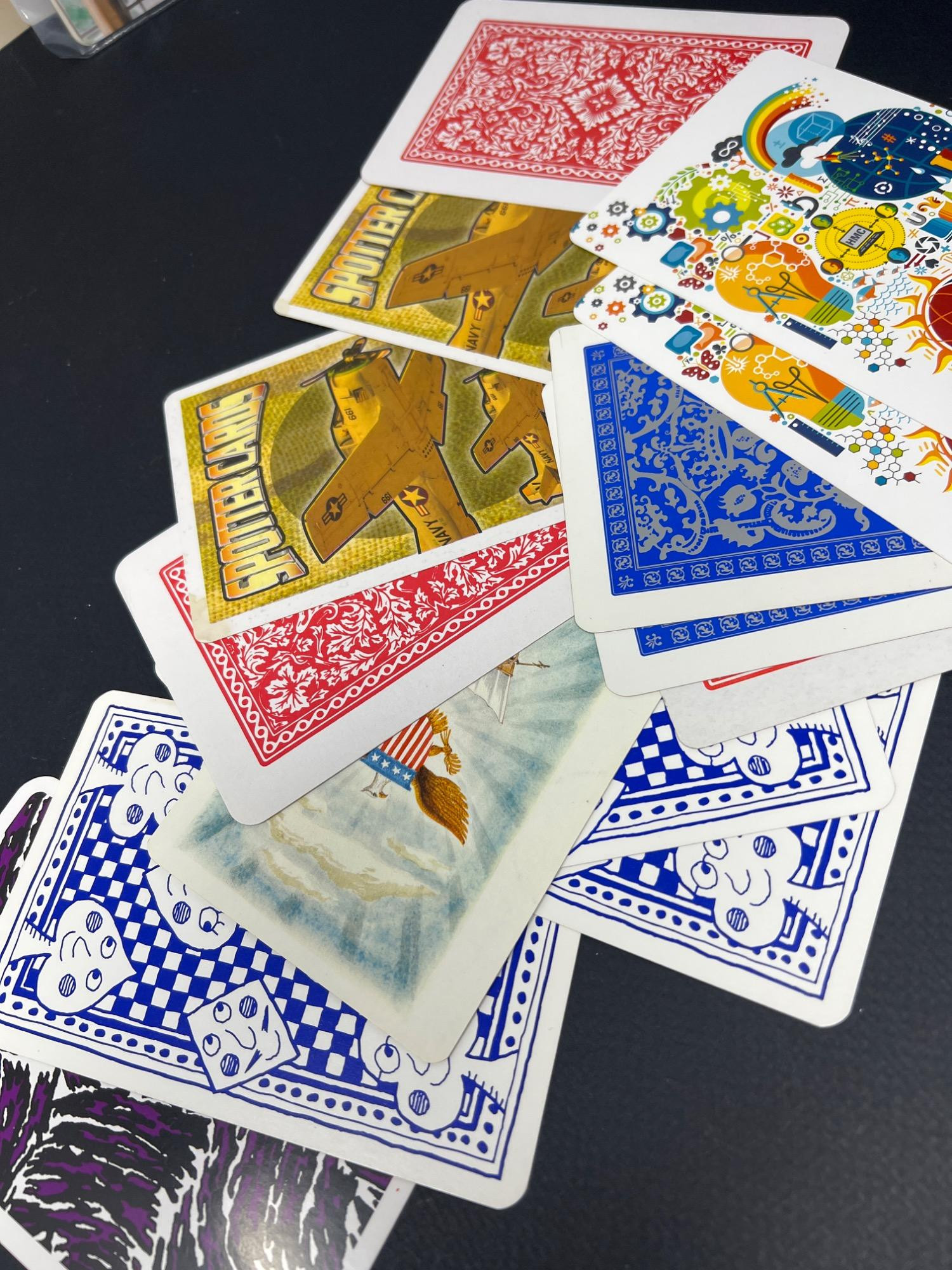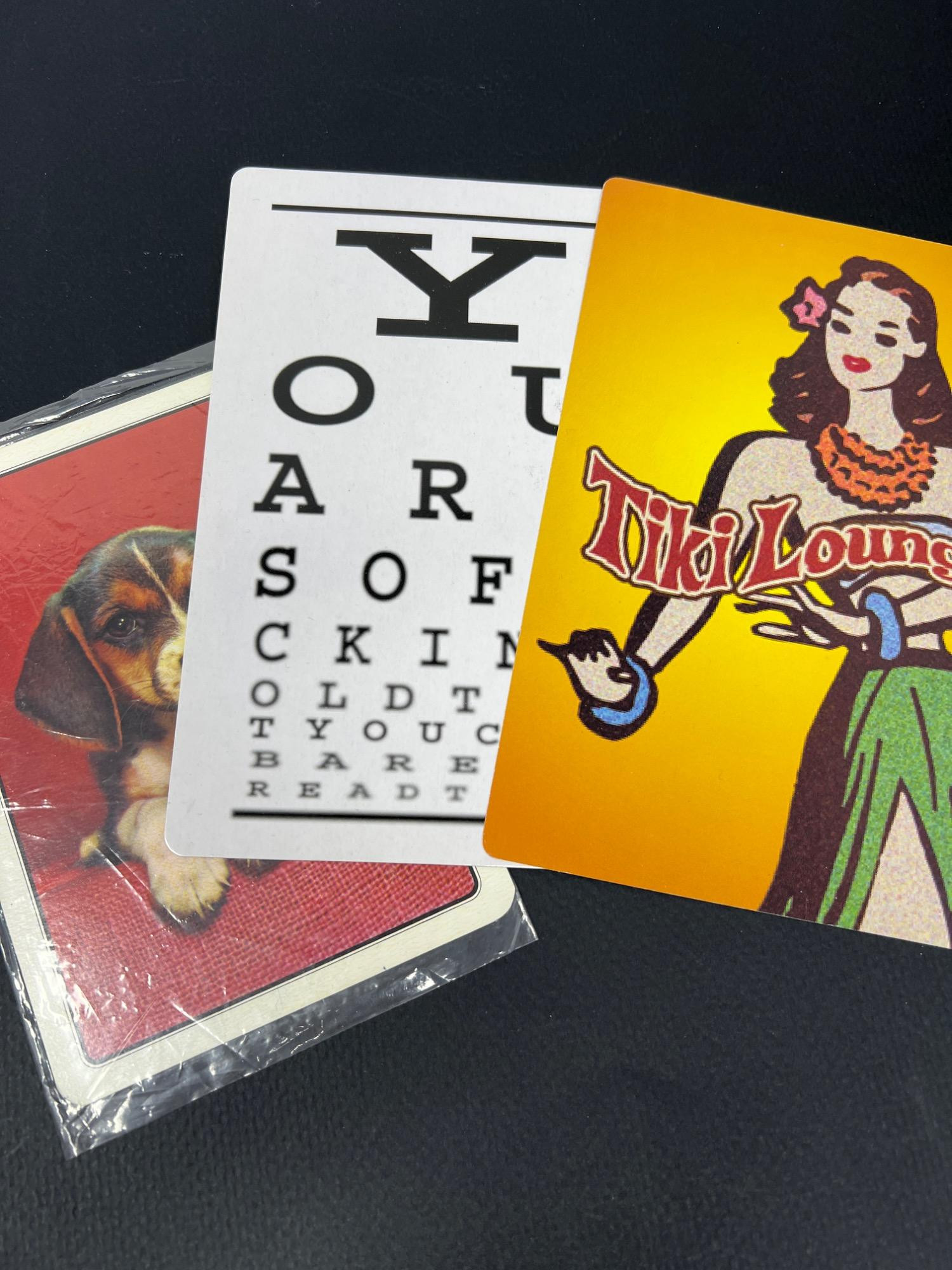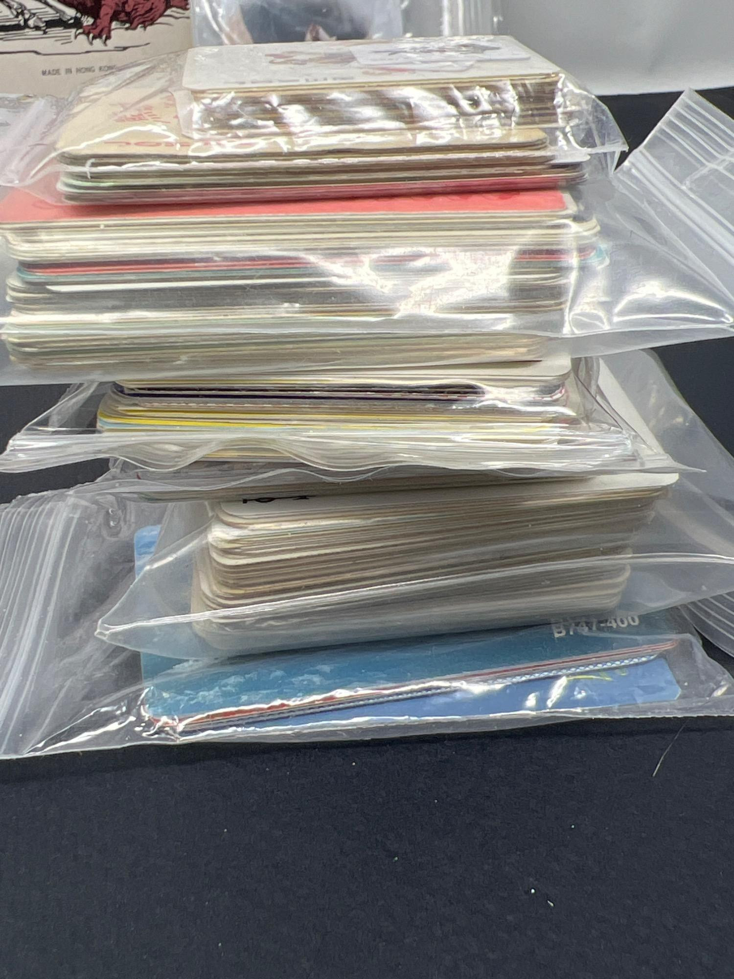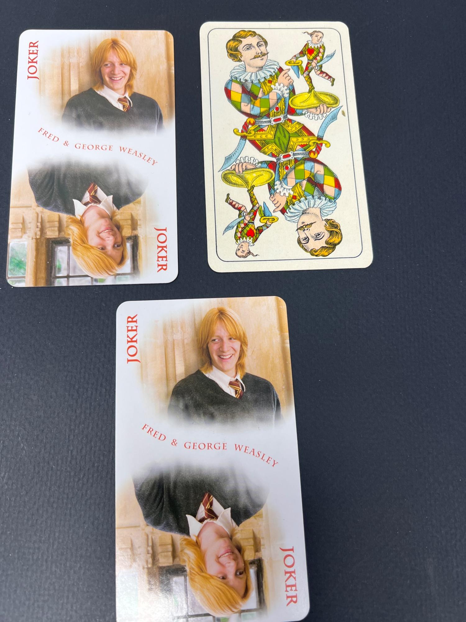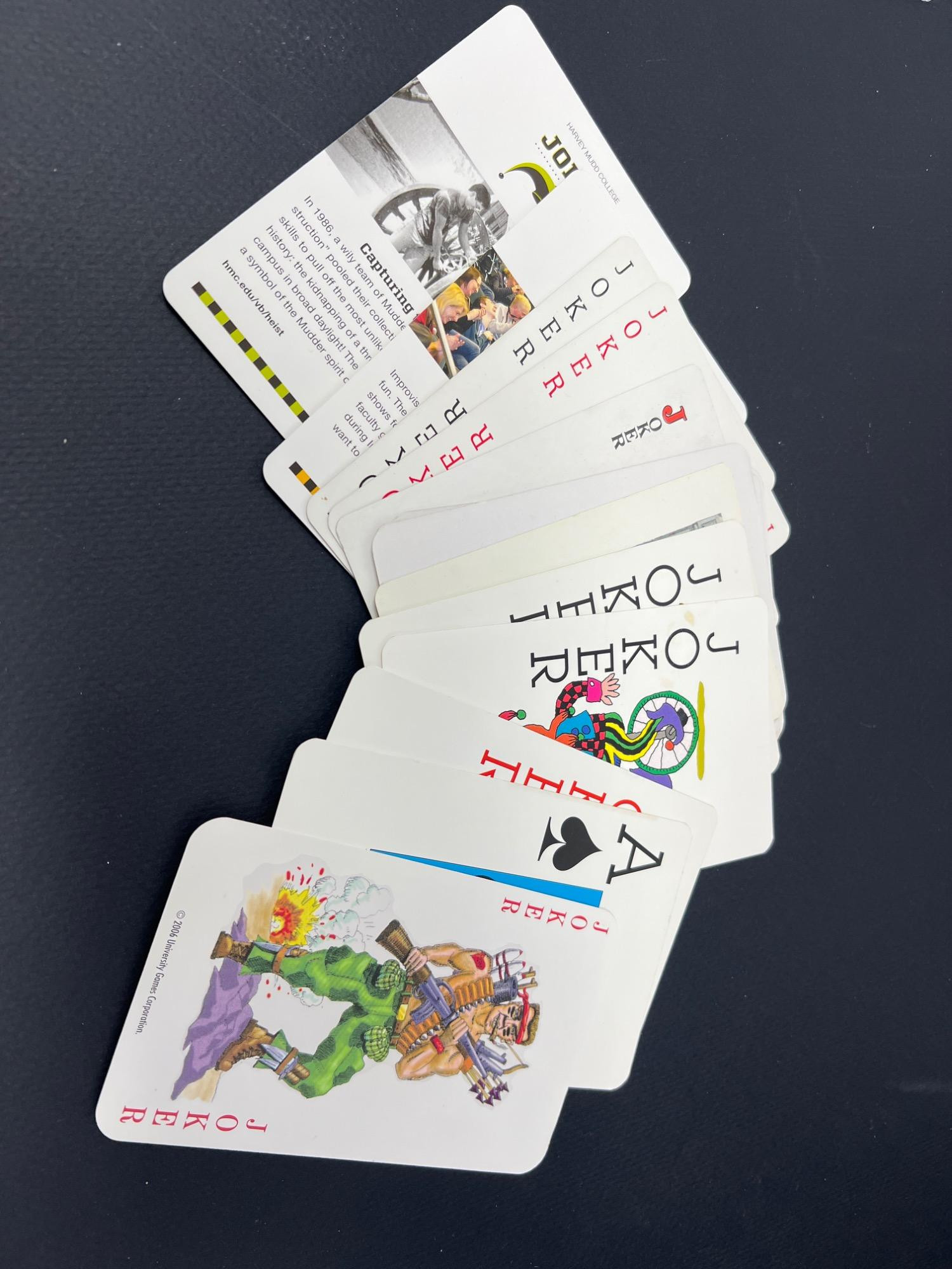 Variety of collectible joker cards of varied sizes. From 8.5” height to 1” height. CAP