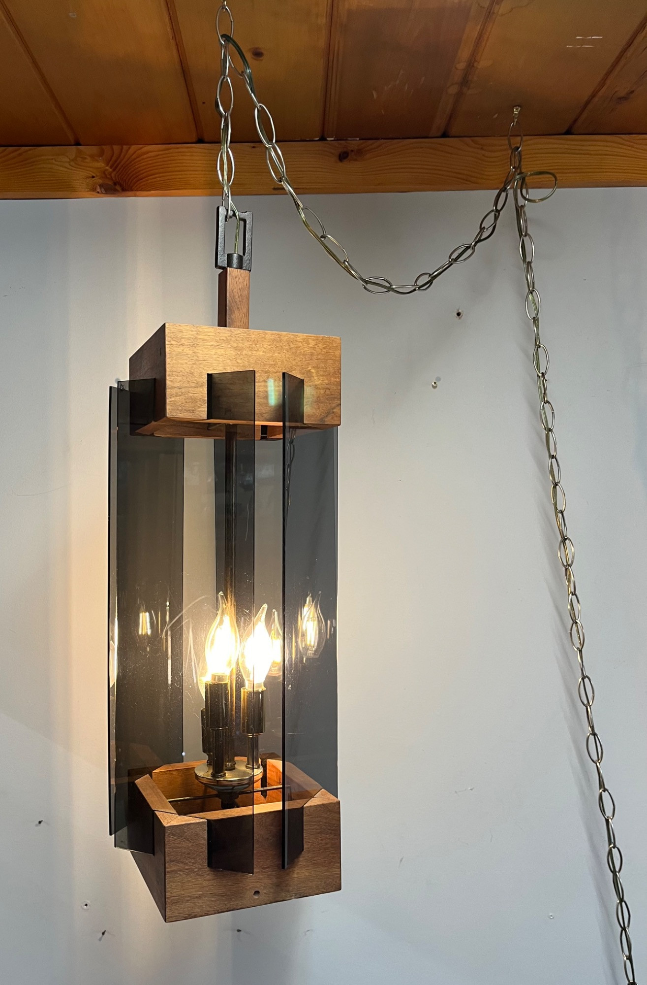 Teak and Lucite Swag Lamp