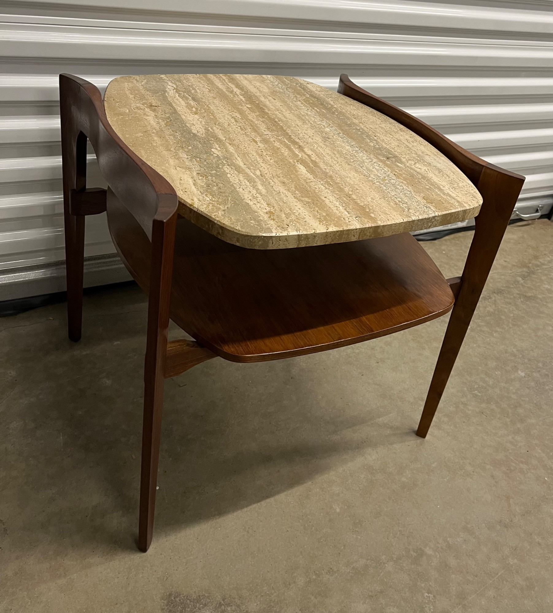 Lot # 5 - Bertha Schaeffer Sculpted Walnut Side Table w/ Italian Travertine Top