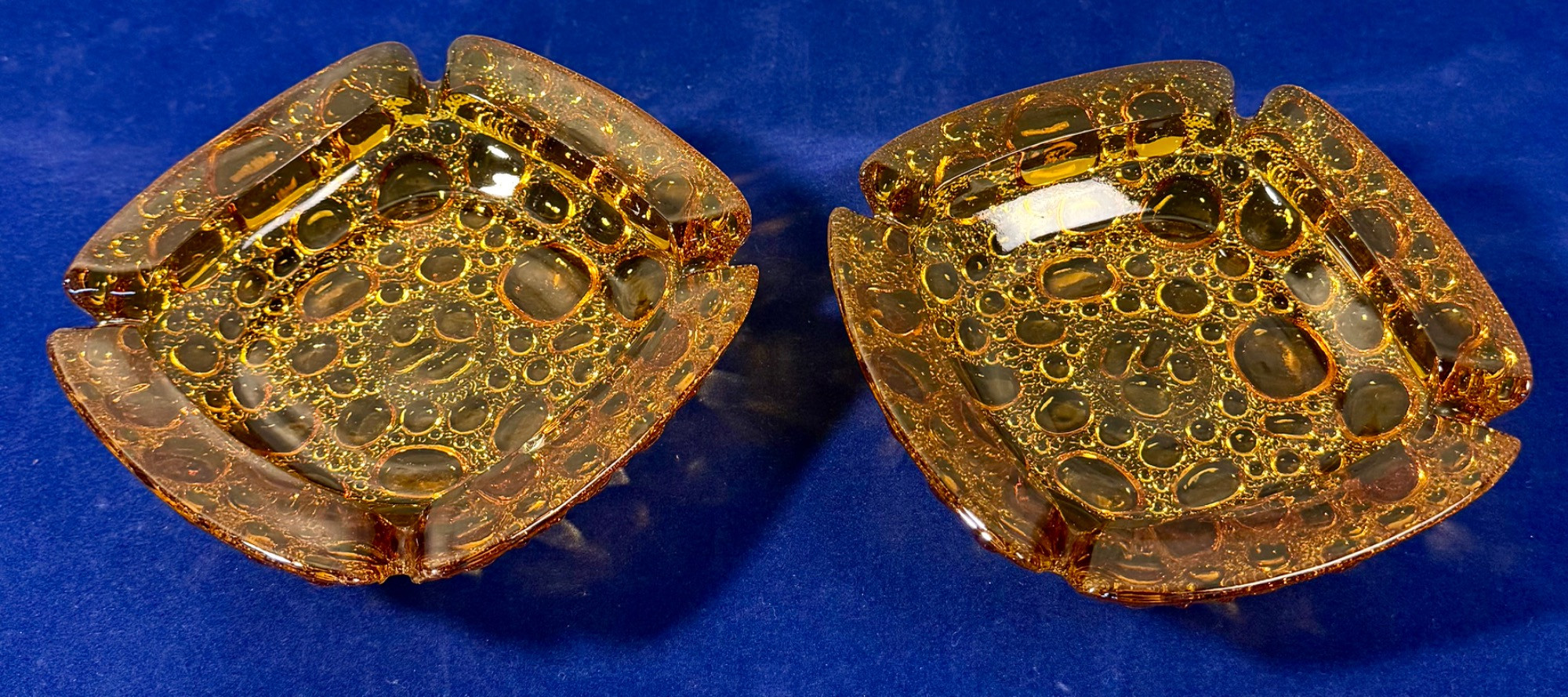 1960’s Bubble Glass Ashtray There are a 2 small chips in one ashtray and 1 small chip in the other one. (See pics) 6 inches