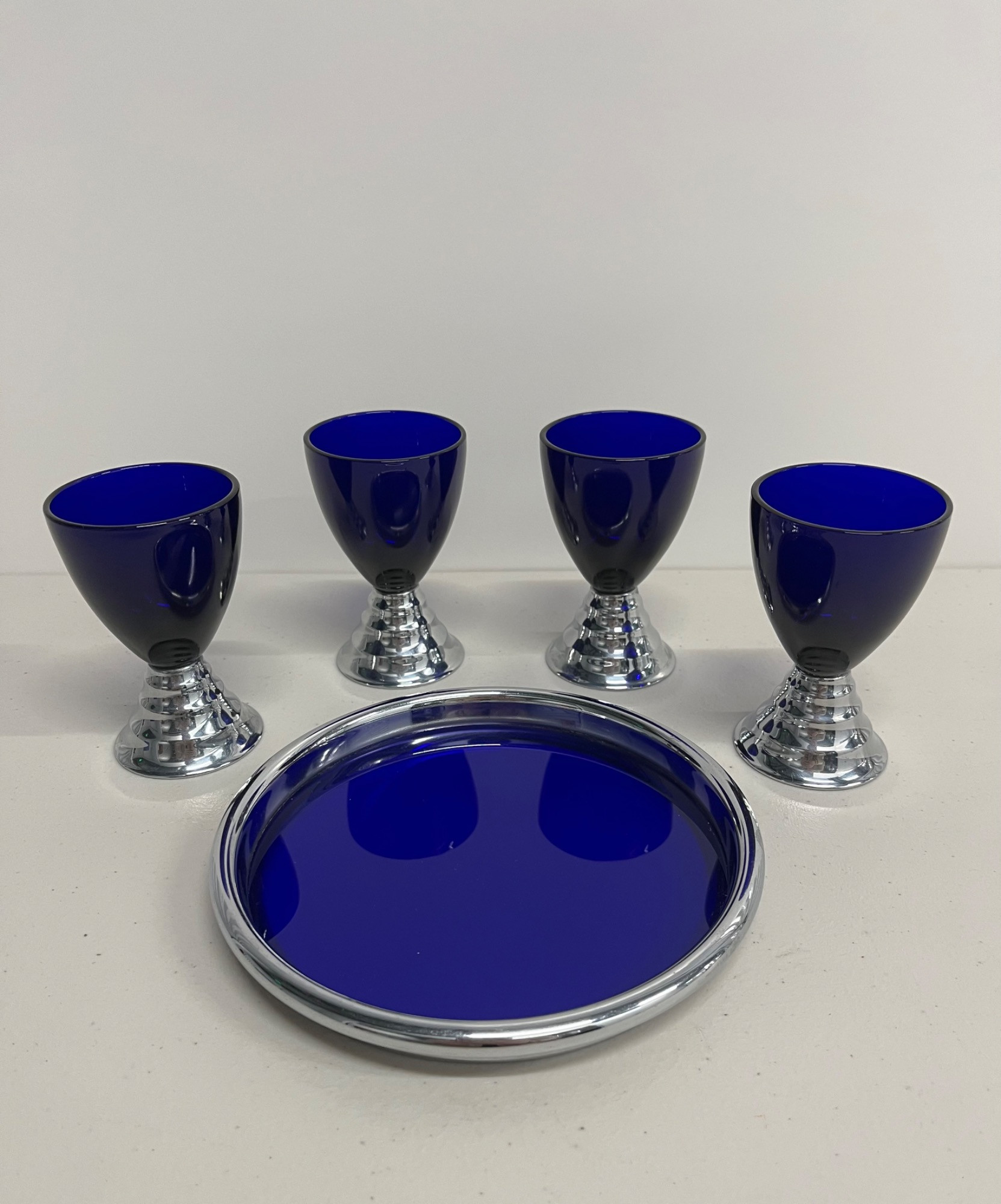 60’s Art Deco Cobalt Chase Blue Moon Cocktail Set Glasses - 2 3/8 x 3 1/2