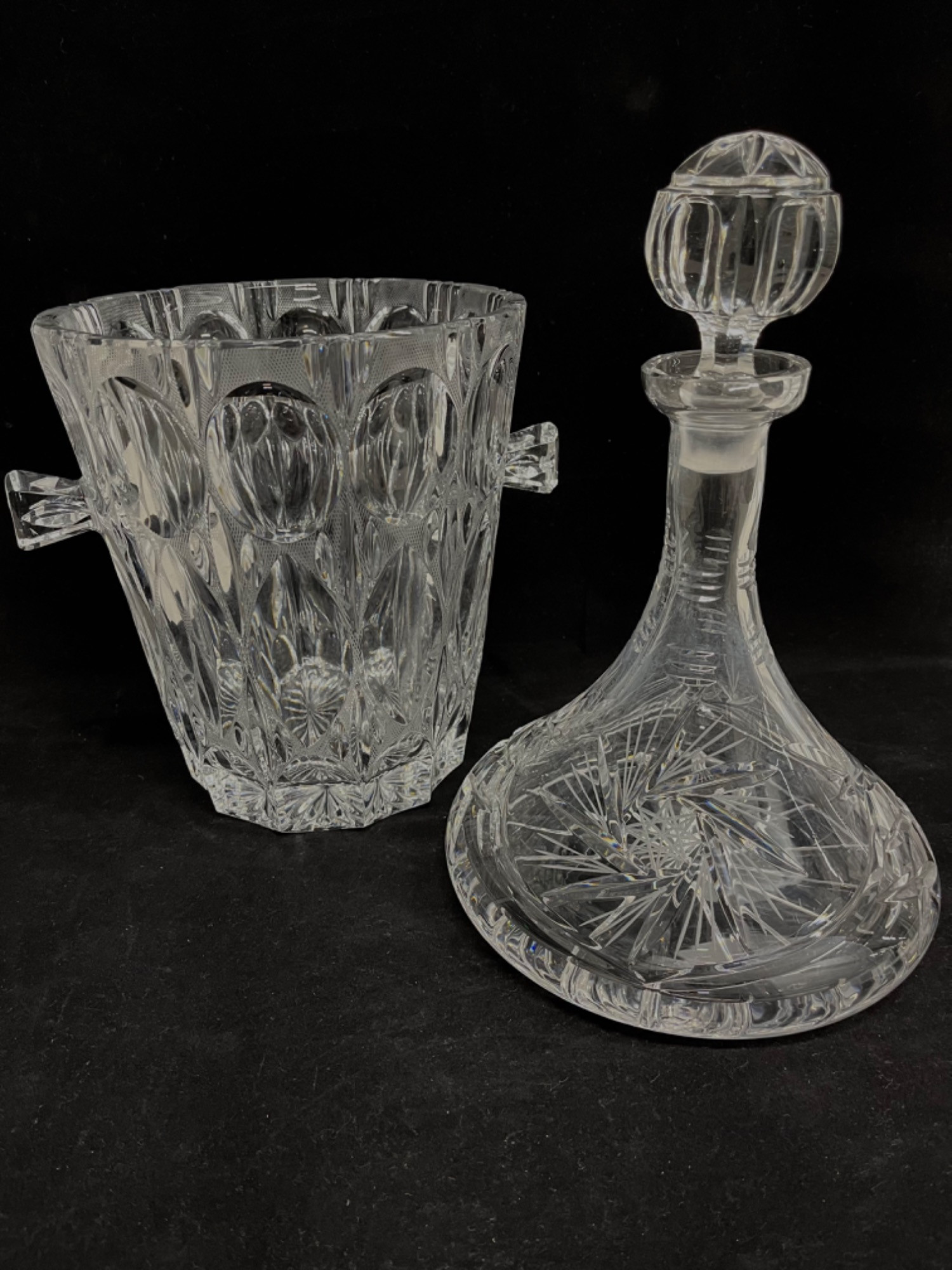German Cut Crystal Ice Bucket & Crystal Brandy Decanter