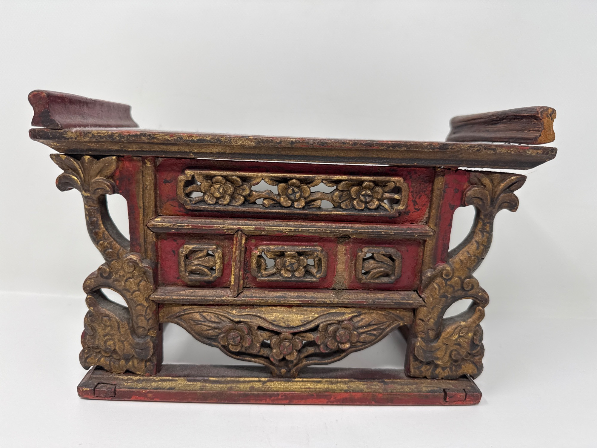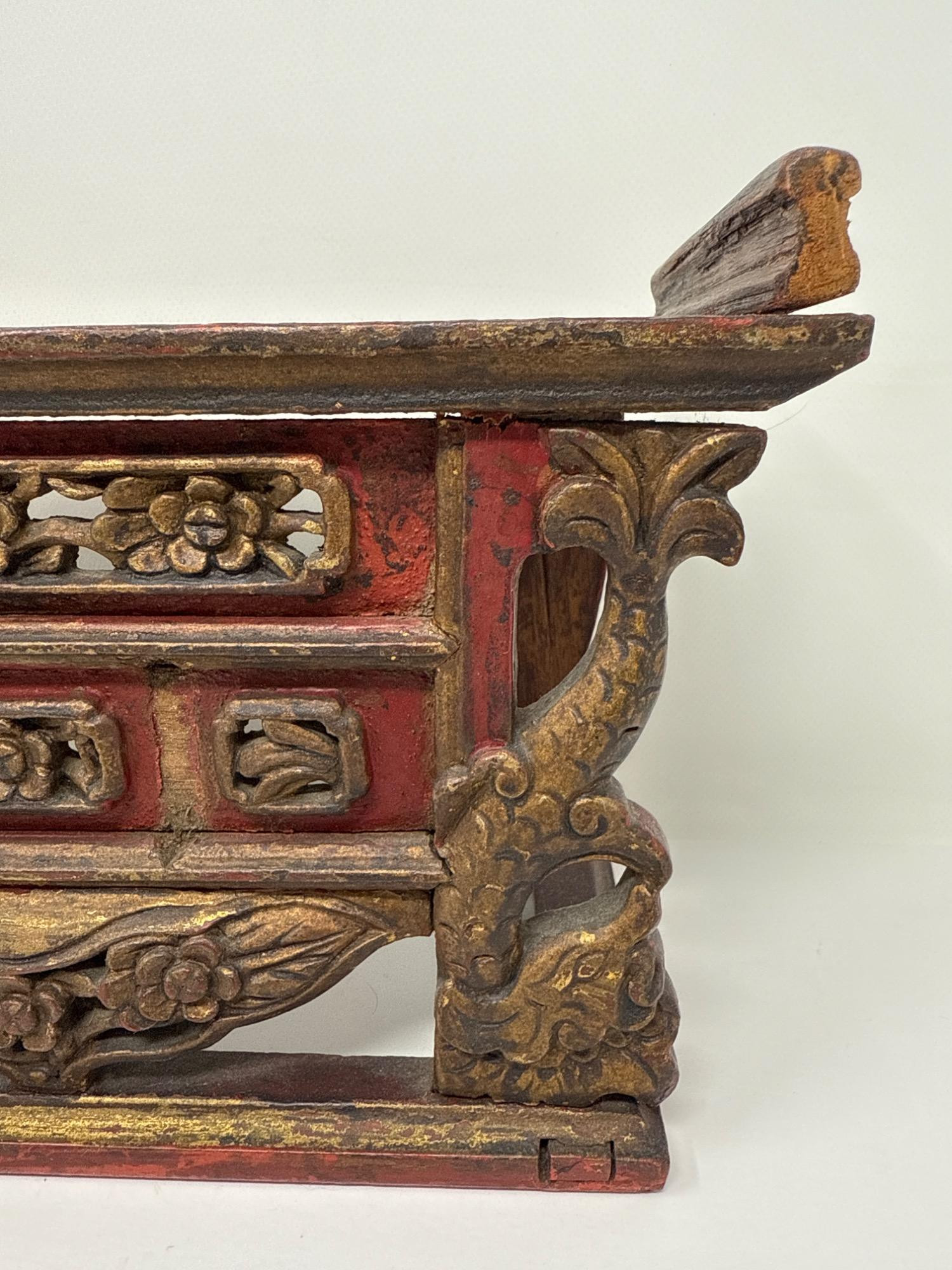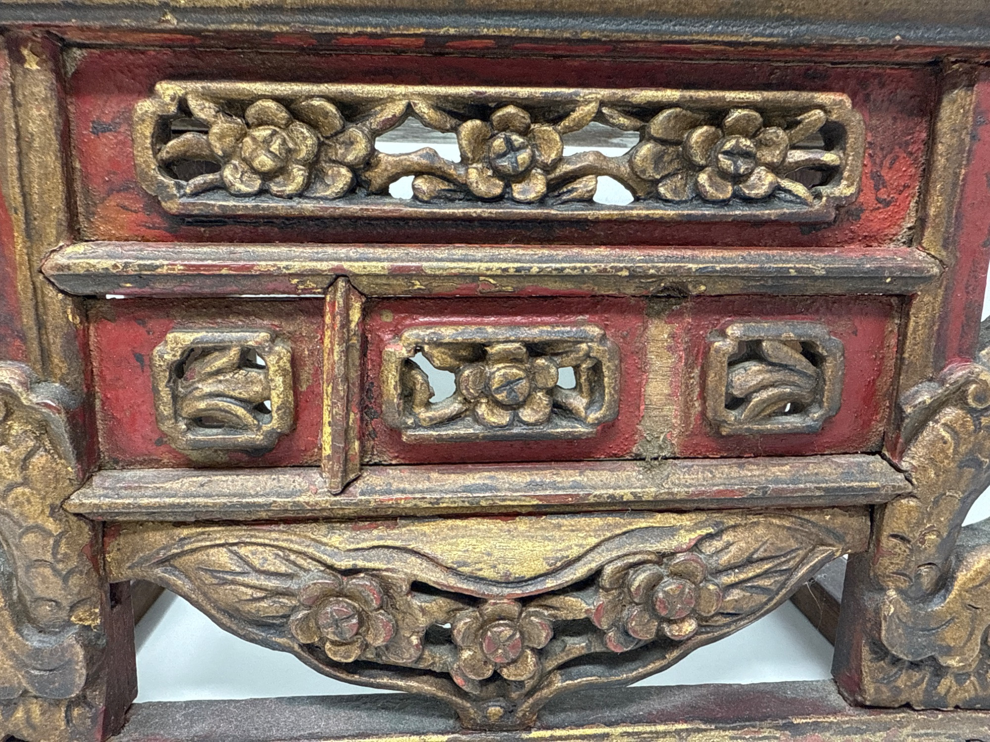 Vintage Small Chinese Altar Table Tabletop size. Hand carved and painted with ornamental detail. Delicate.