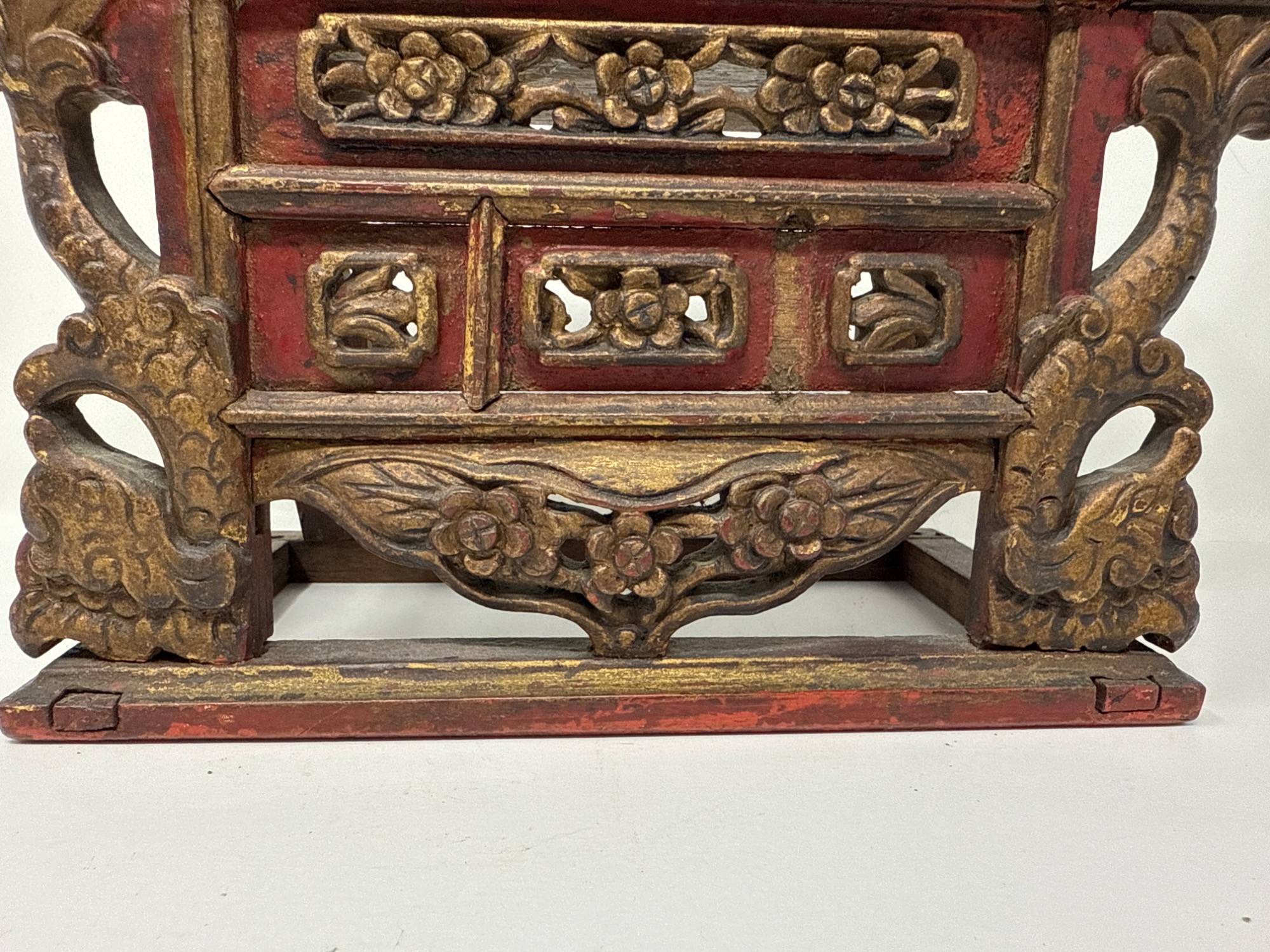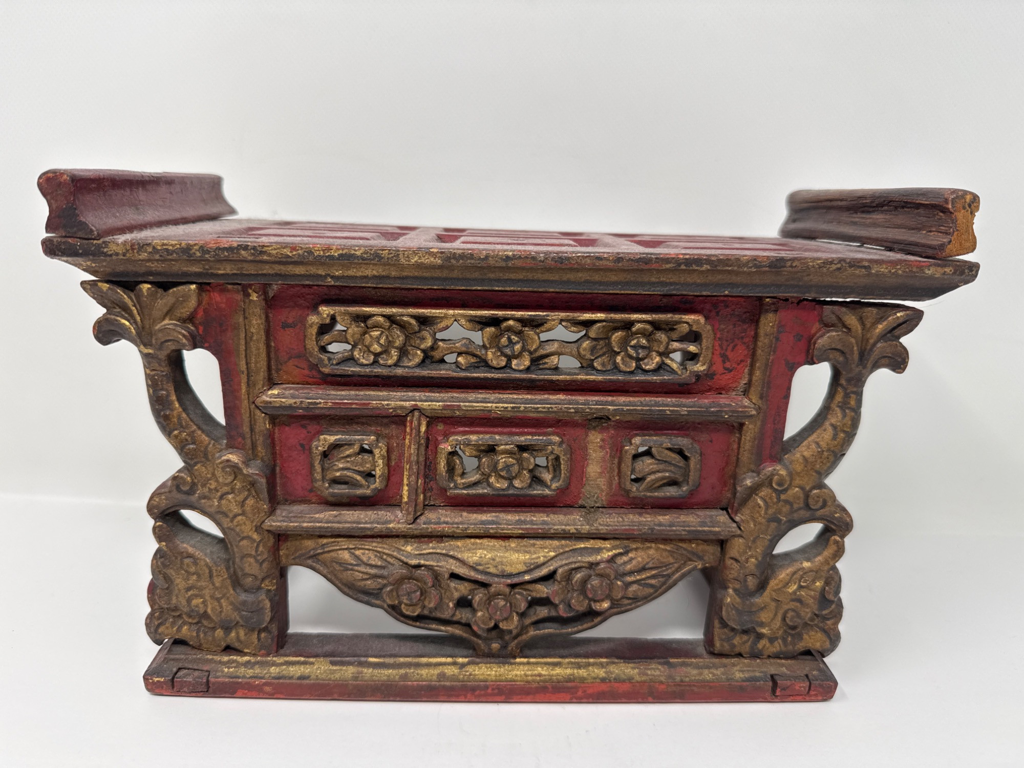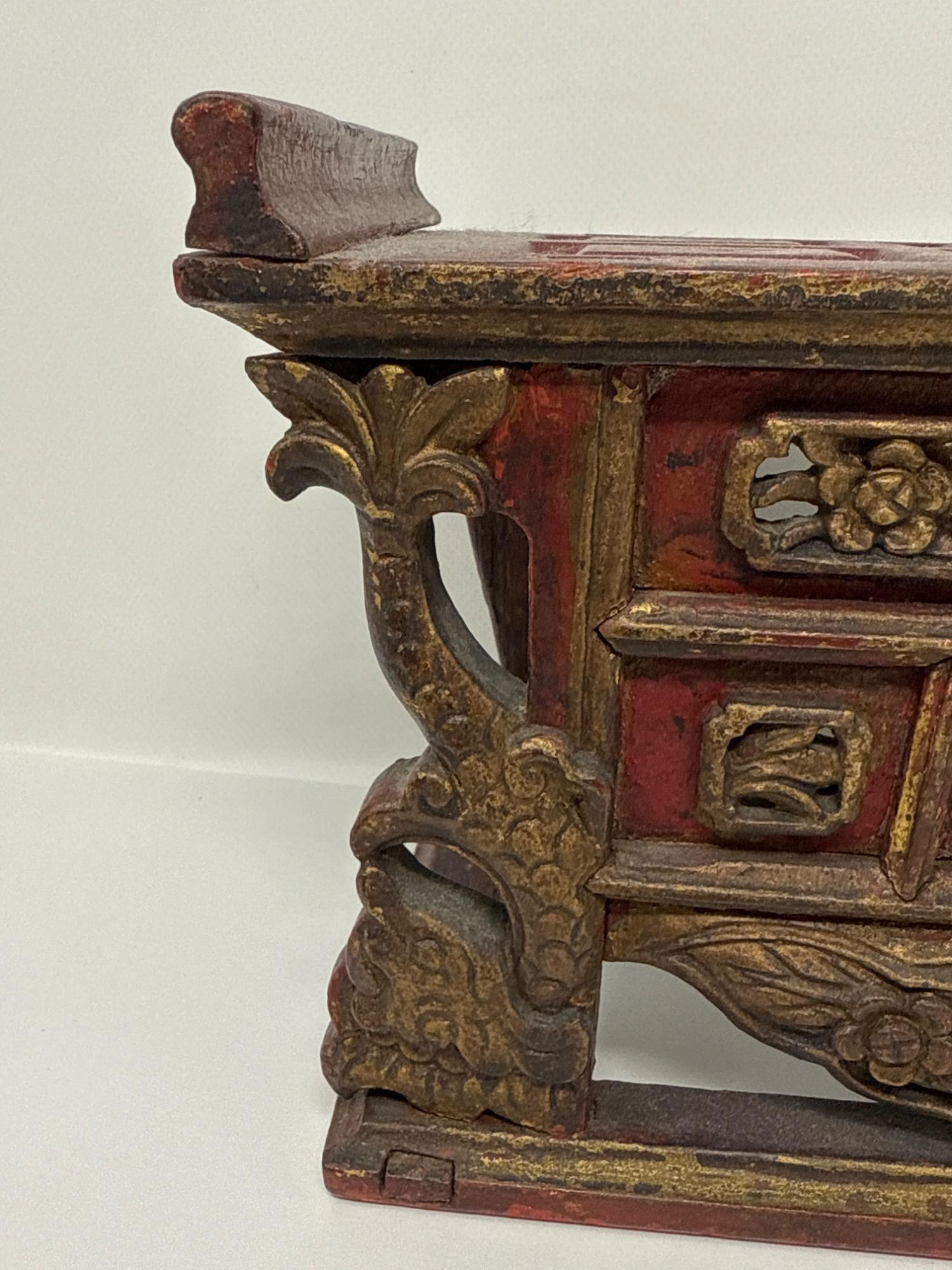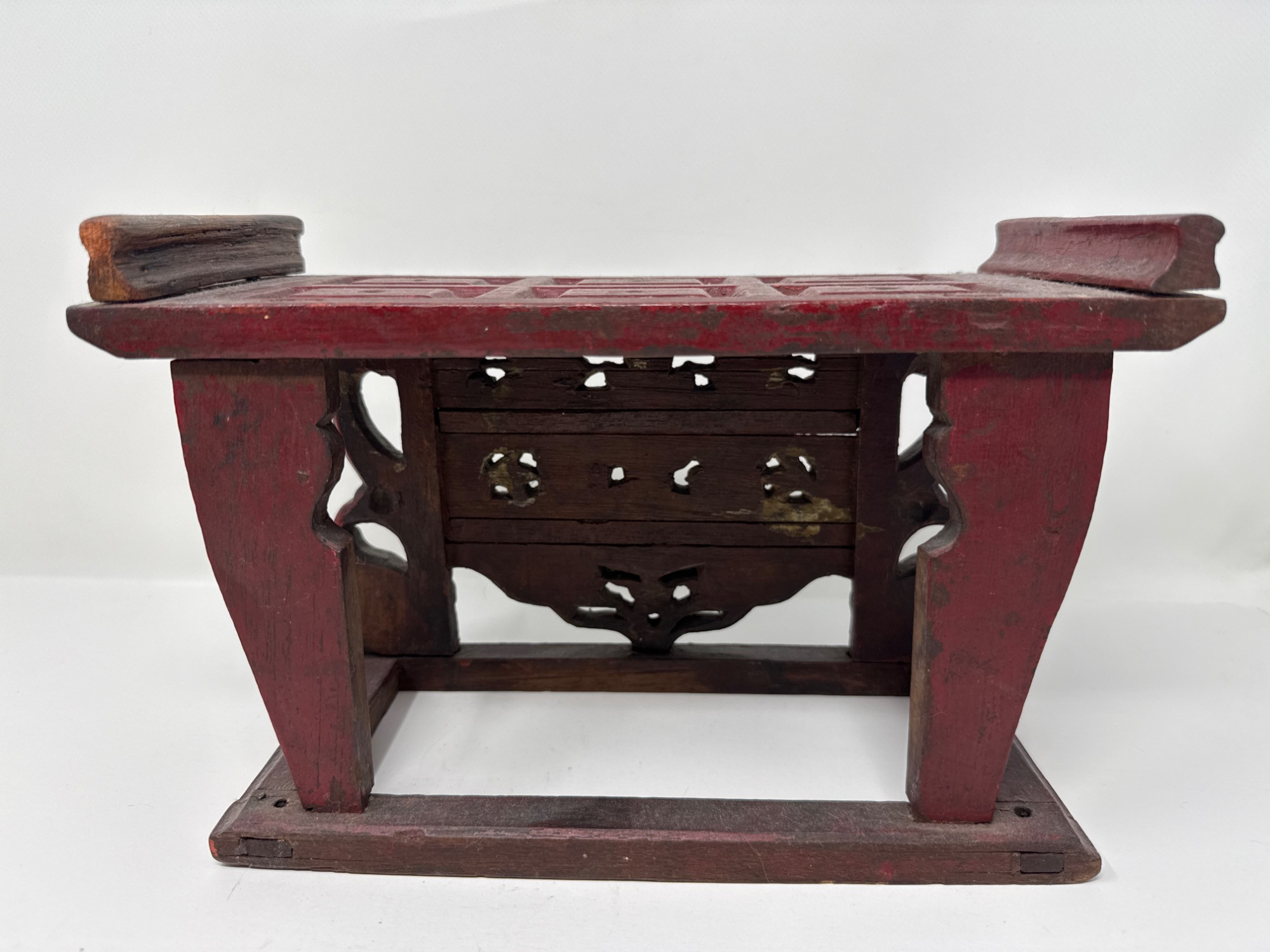 Vintage Small Chinese Altar Table Tabletop size. Hand carved and painted with ornamental detail. Delicate.