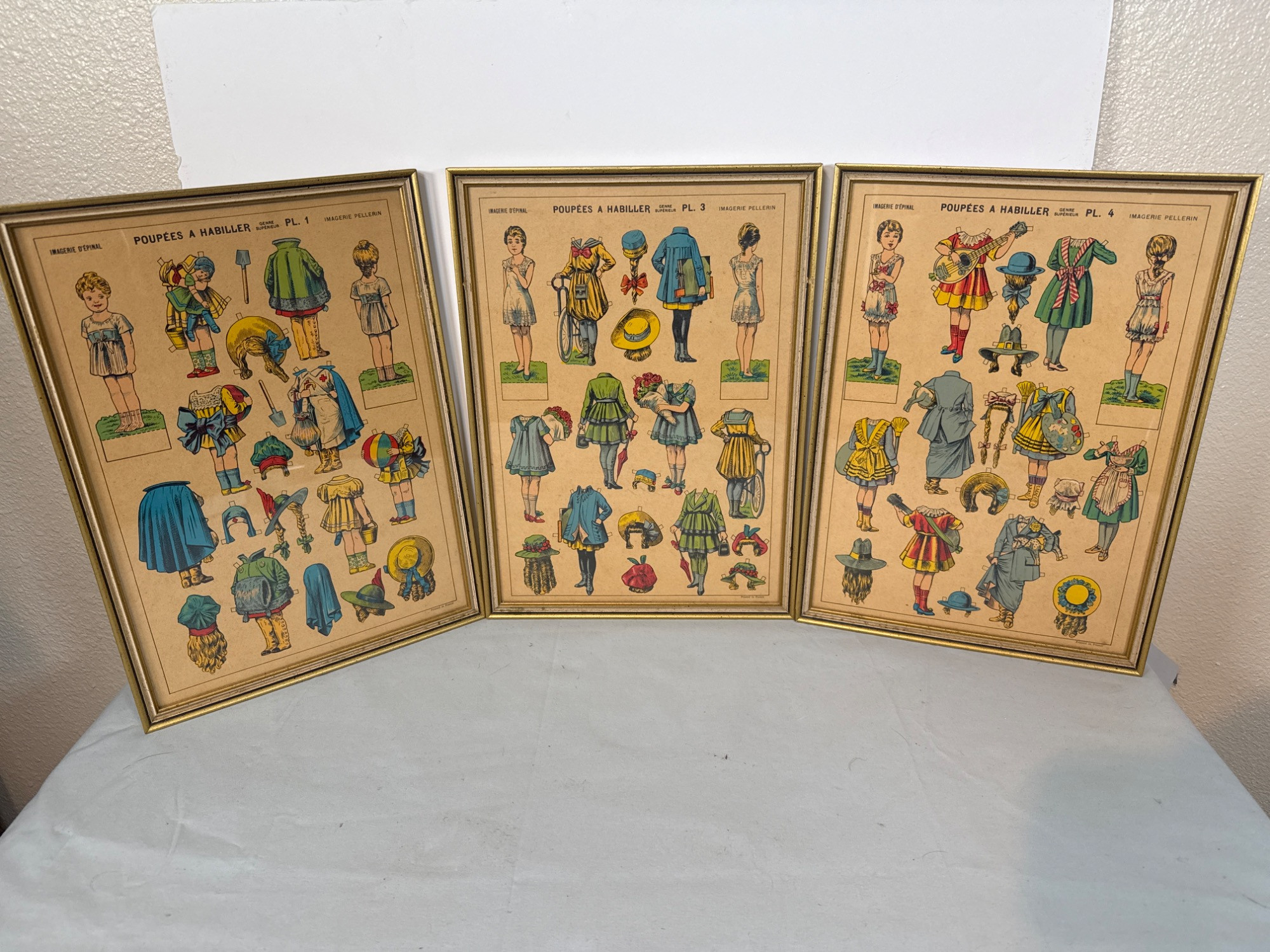 Lot # 128 - Vintage 1916 Poupees A Habiller French Paper Doll Sheets-Framed