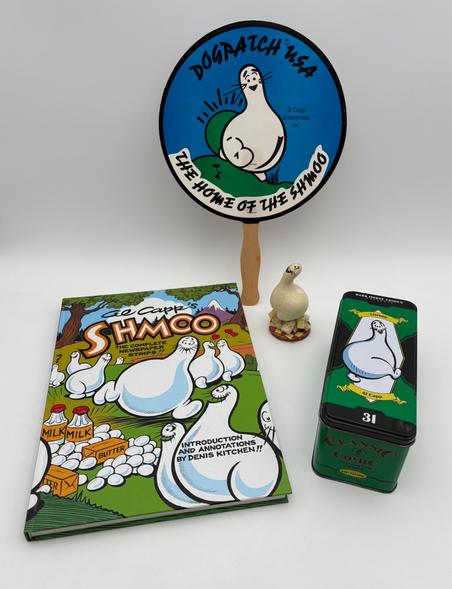 All things Shmoo from Al Capp’s classic comic strip "Lil Abner". Lot includes: Shmoo figure from