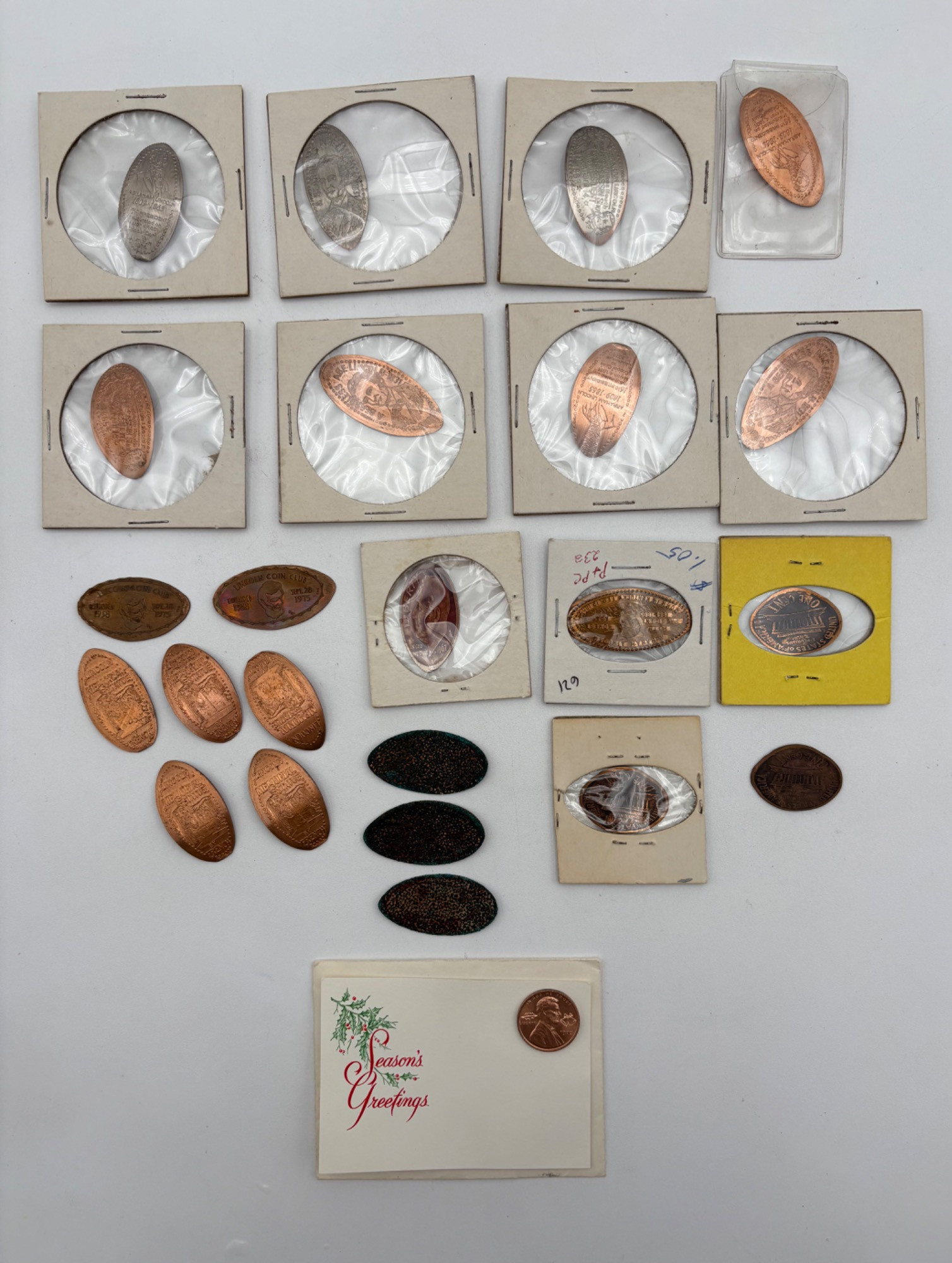 locations/years. The unpressed penny has Christmas bells etched into it. 24 in