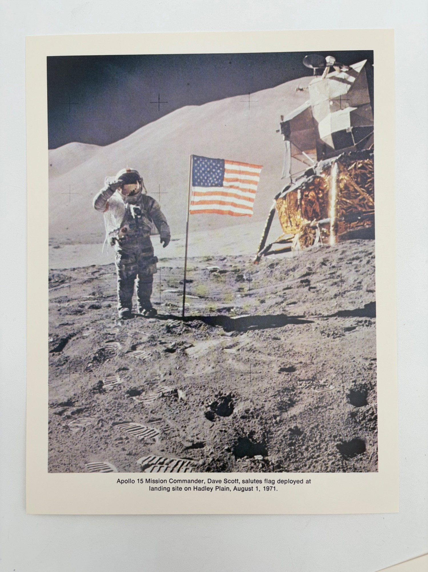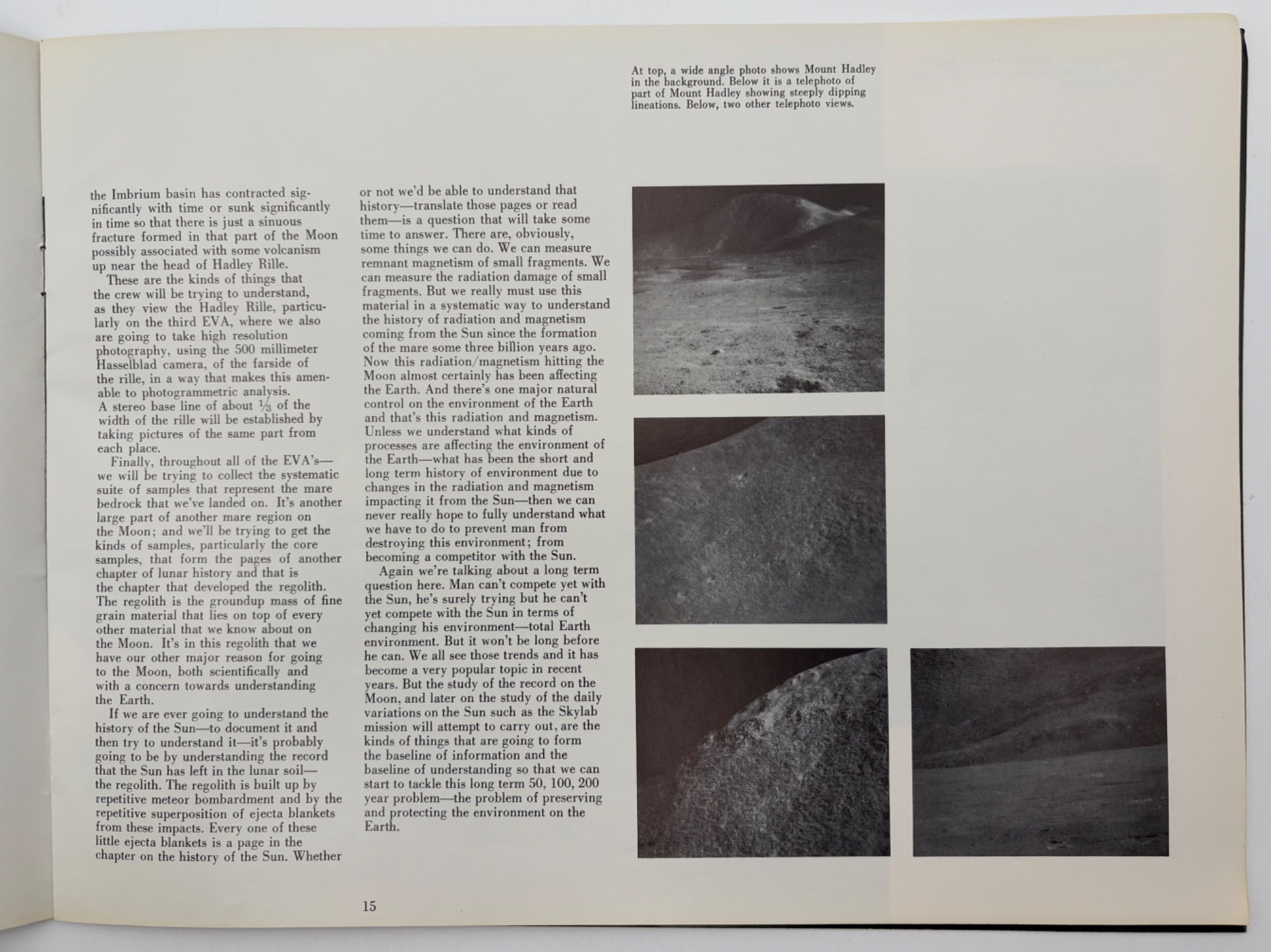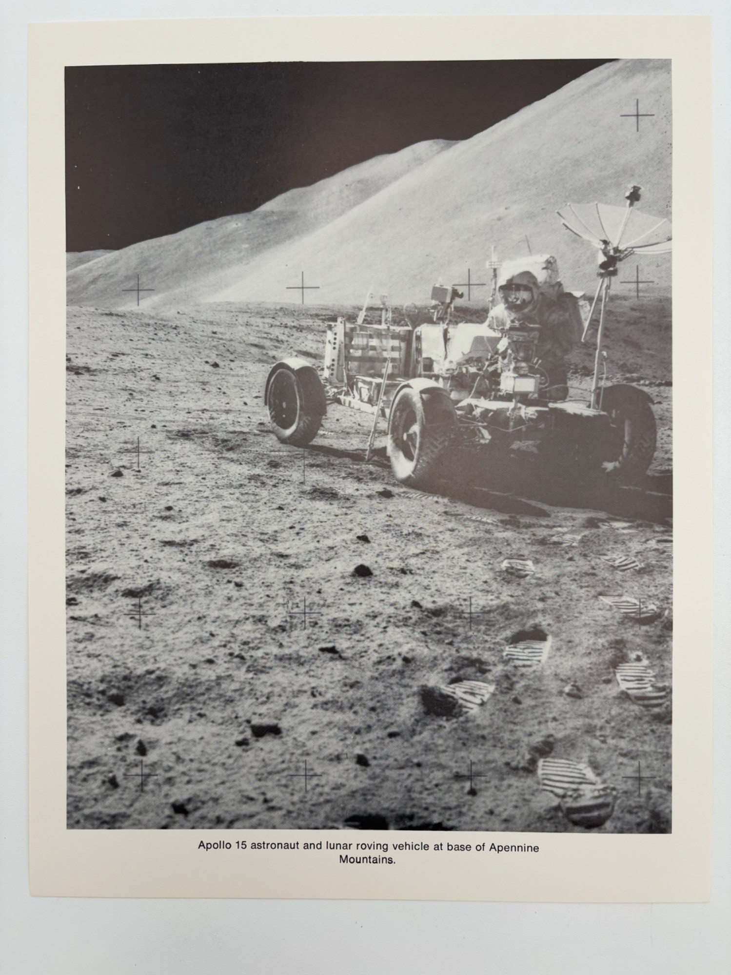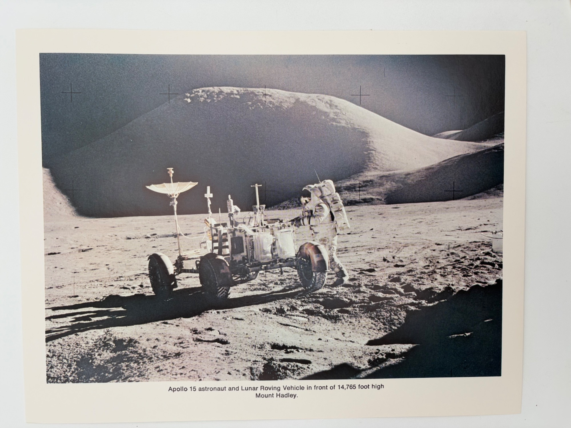 Photos from Apollo 15. 6 color, 6 black & white. NASA photos published by