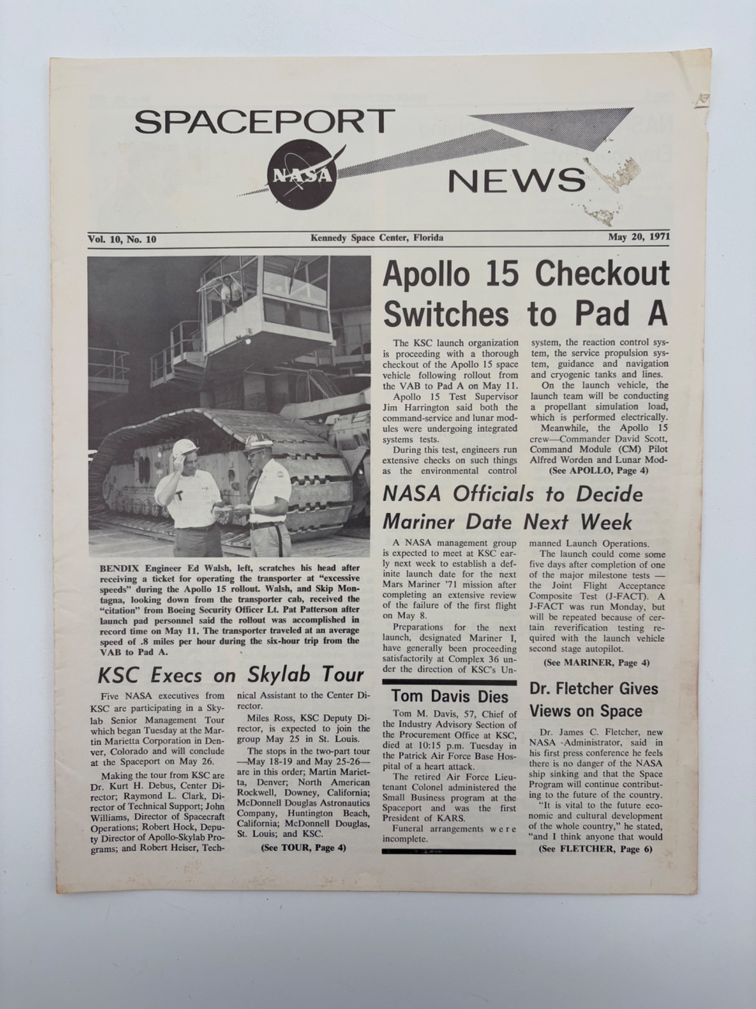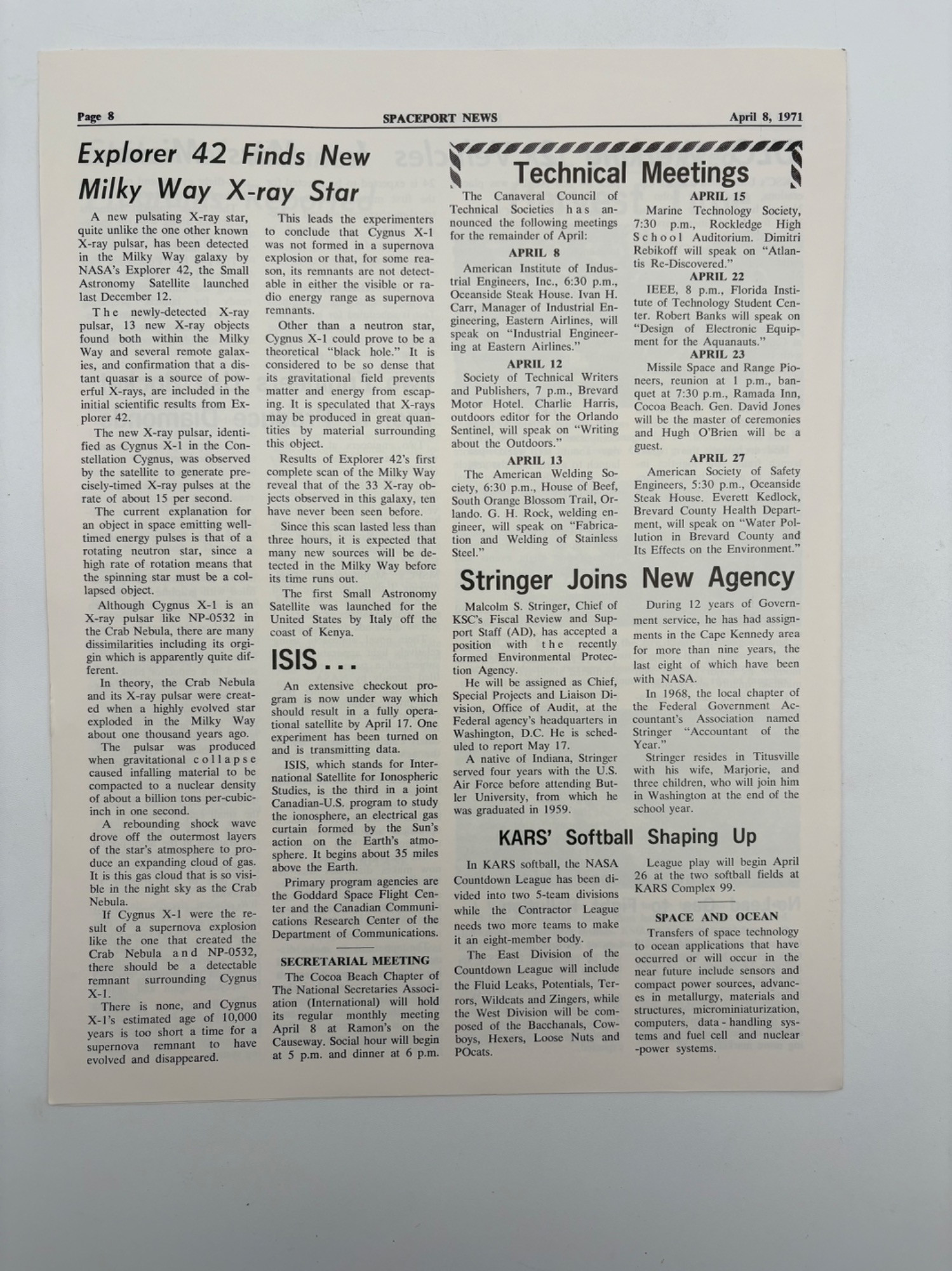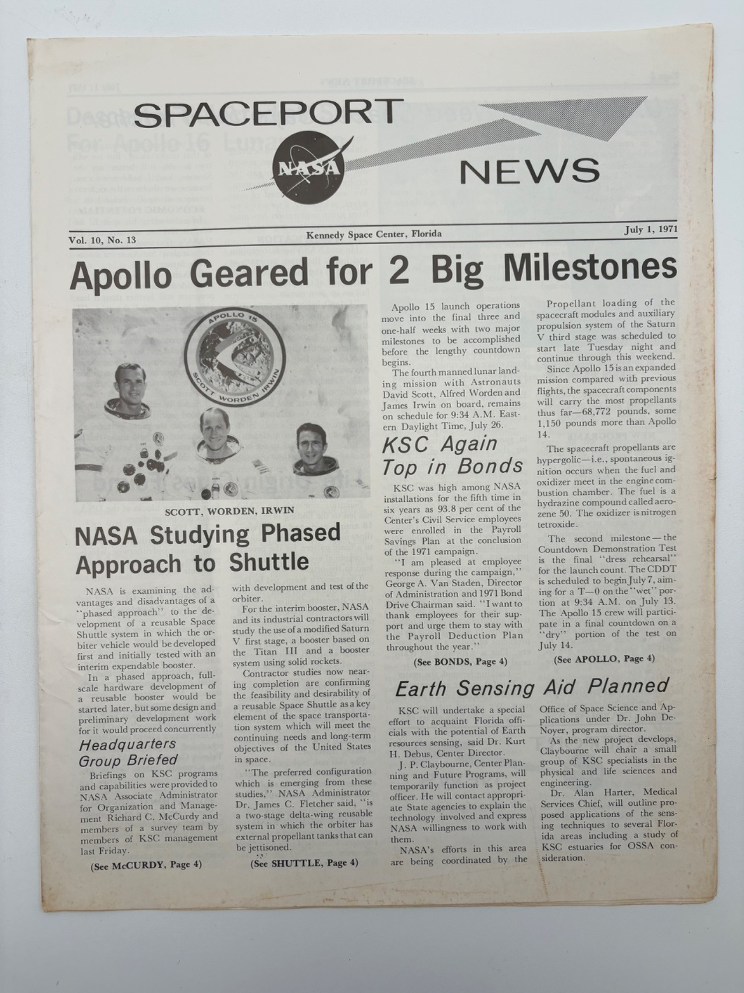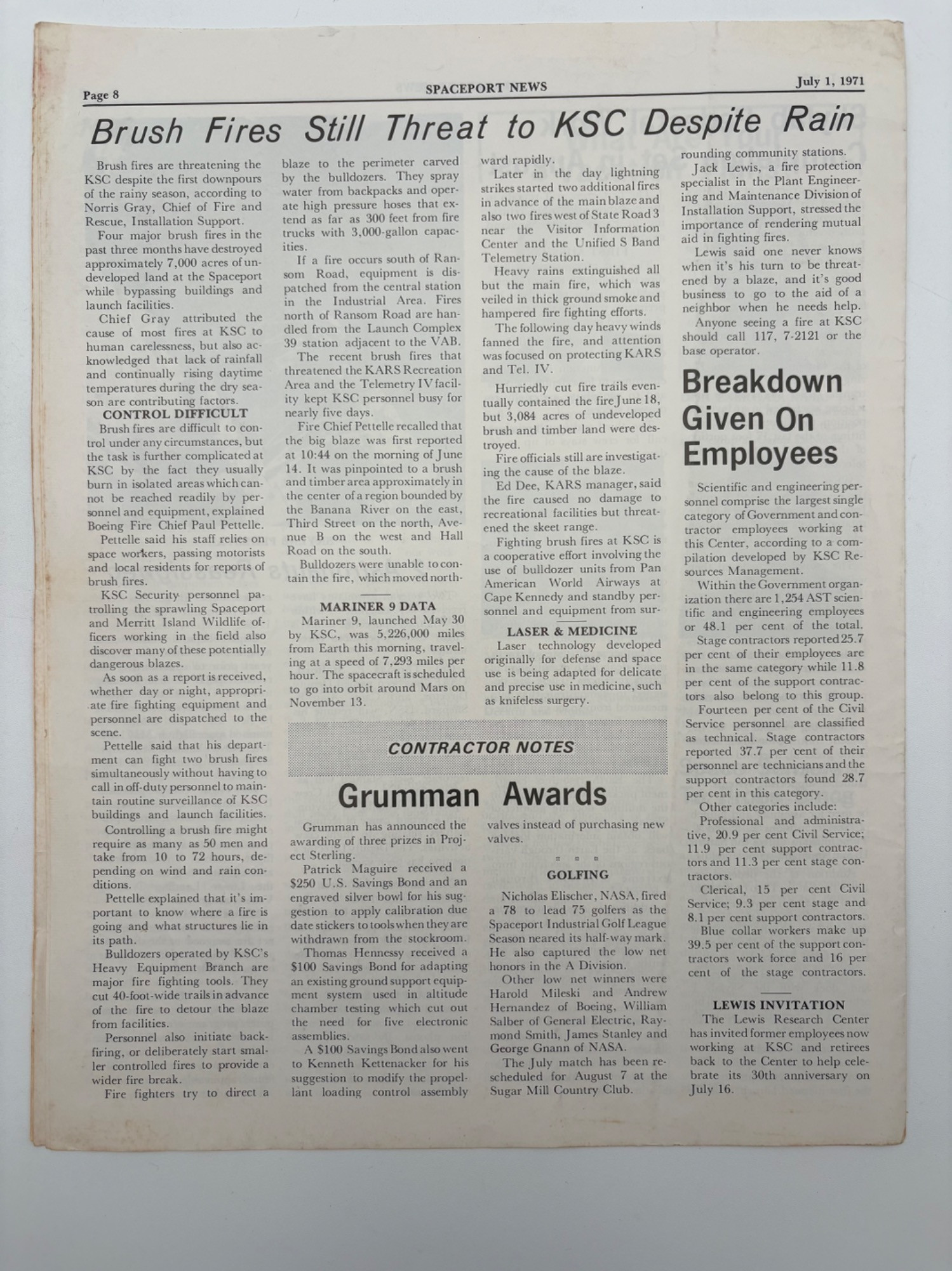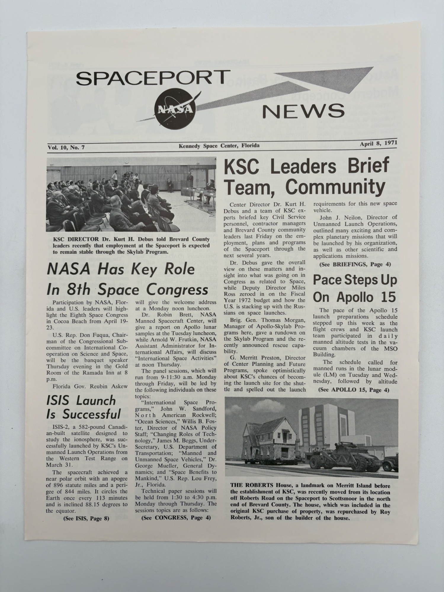 (Kennedy Space Center Employee newsletter) dated 4/8/71, 5/20/71, and 7/1/71.