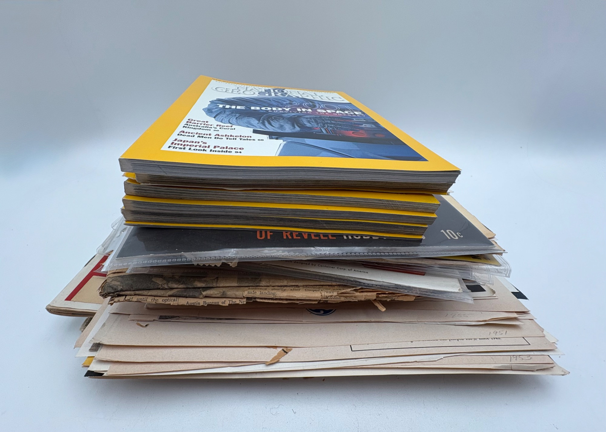various astronauts, and ads for aerospace manufacturers & cereal premiums.