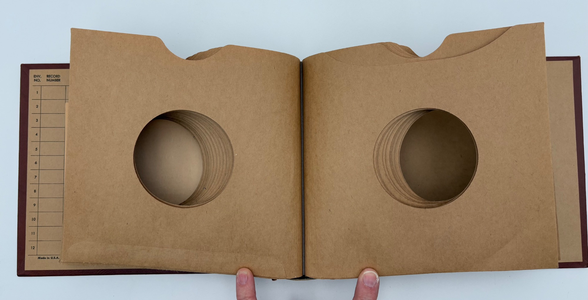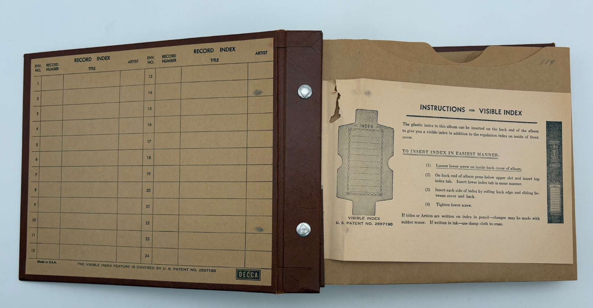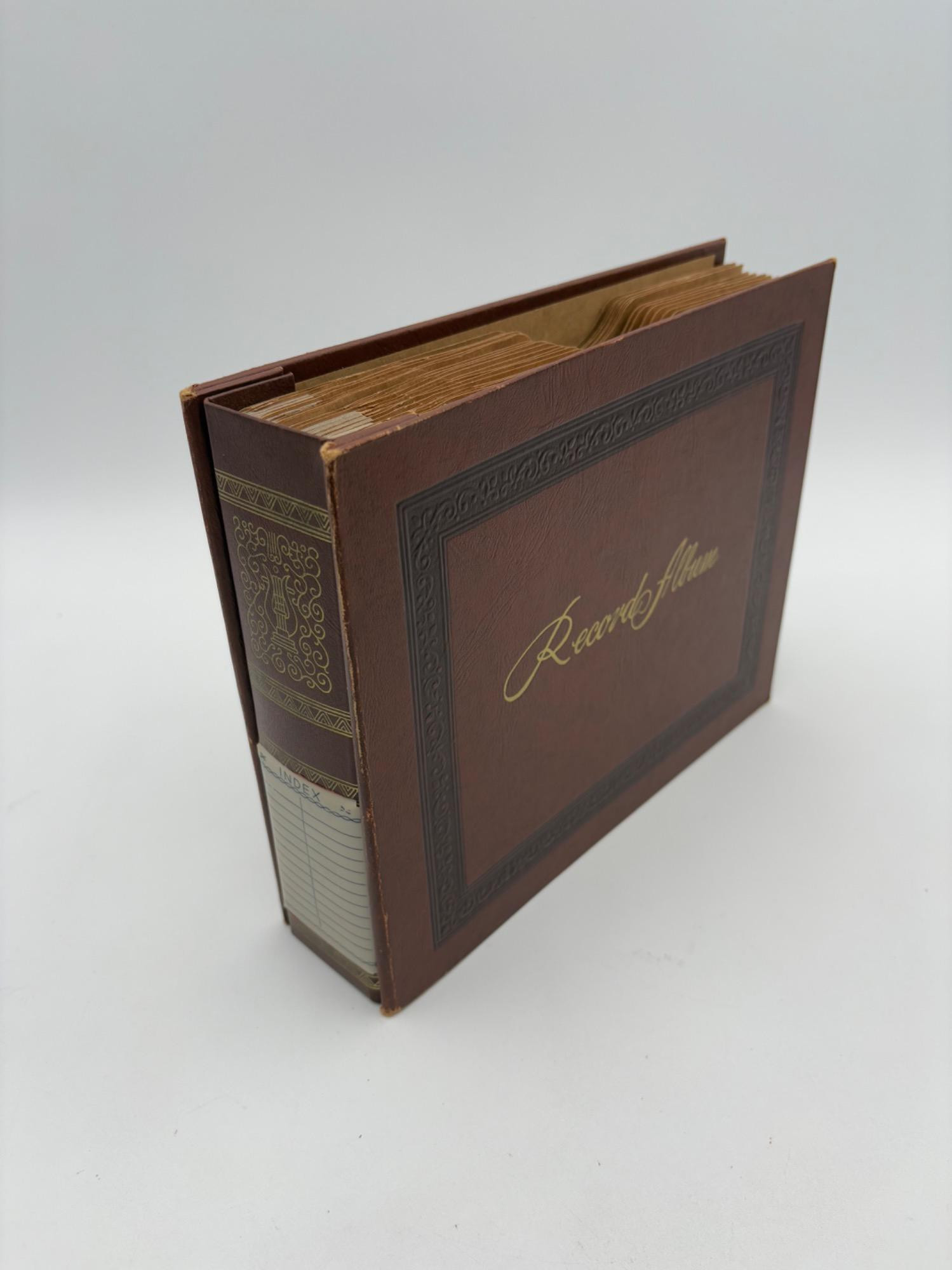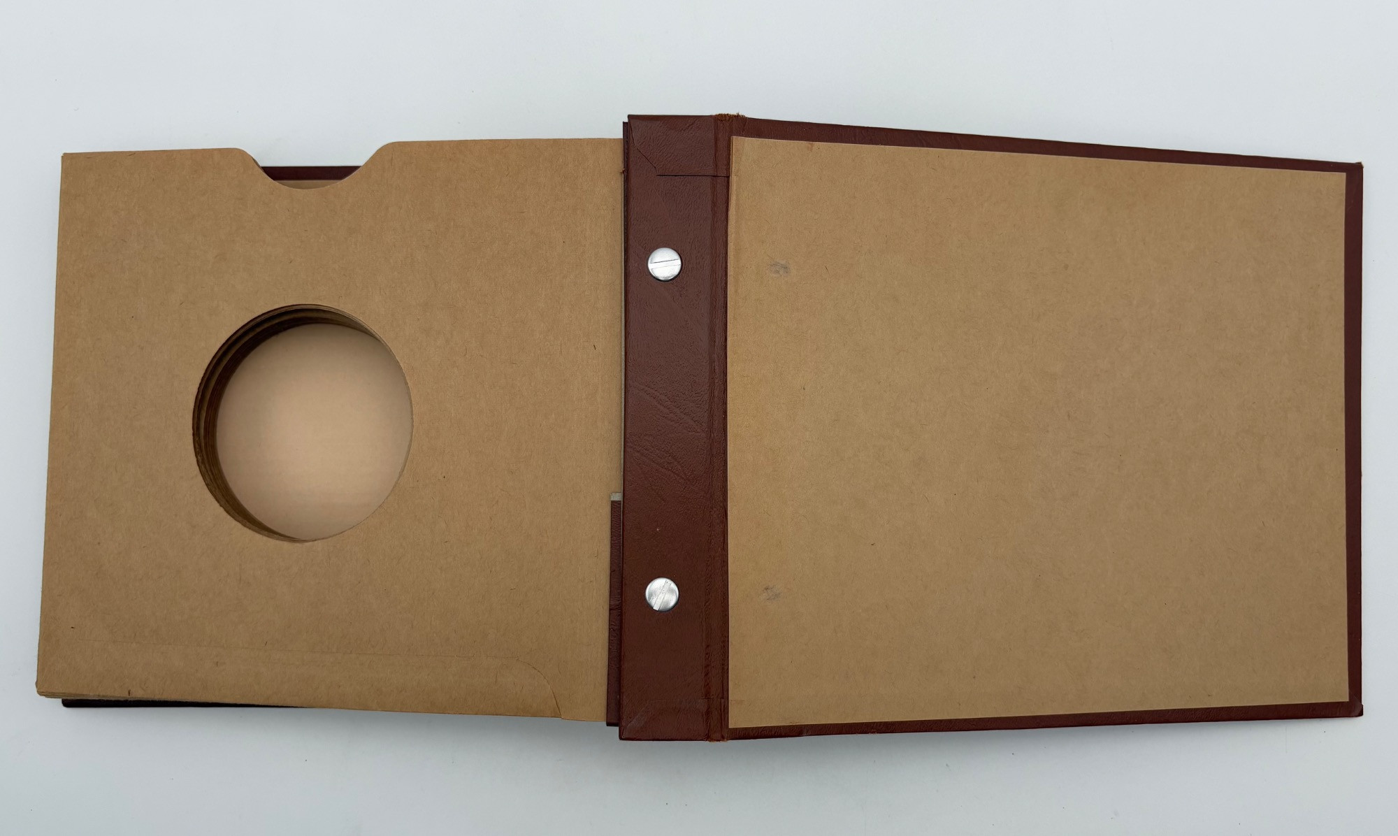 leatherette brown album with 24 slots. Cursory examination of the records show