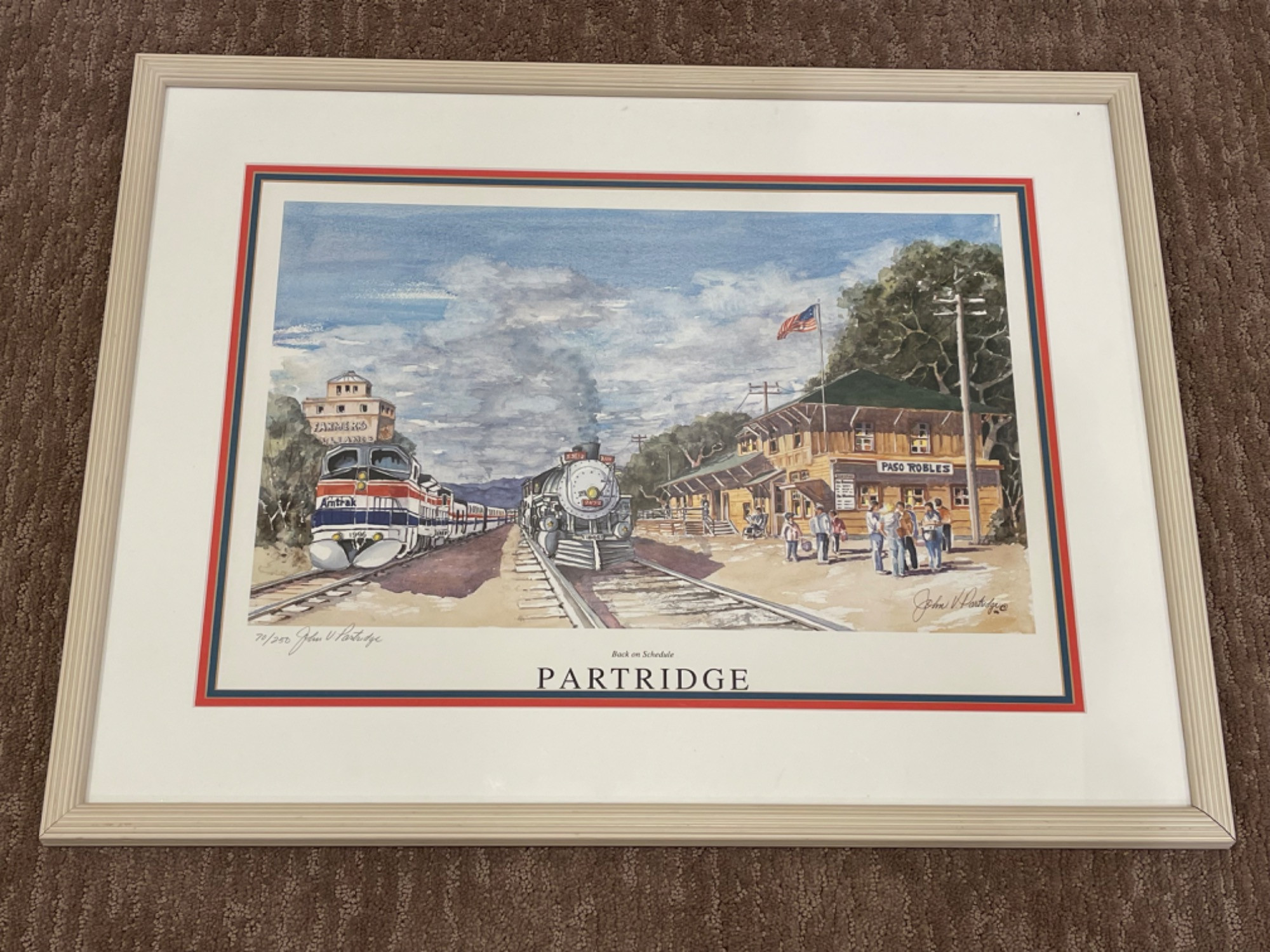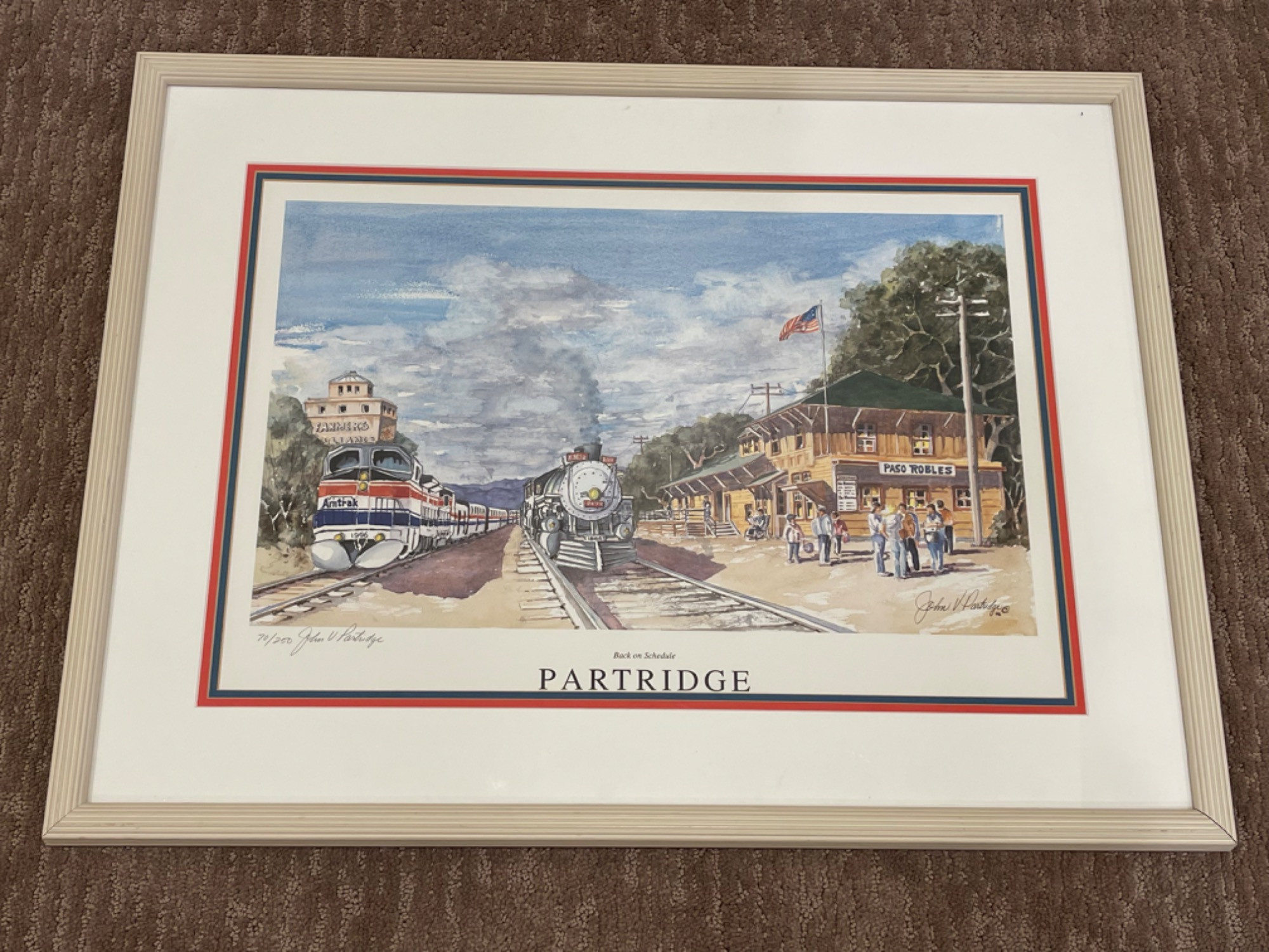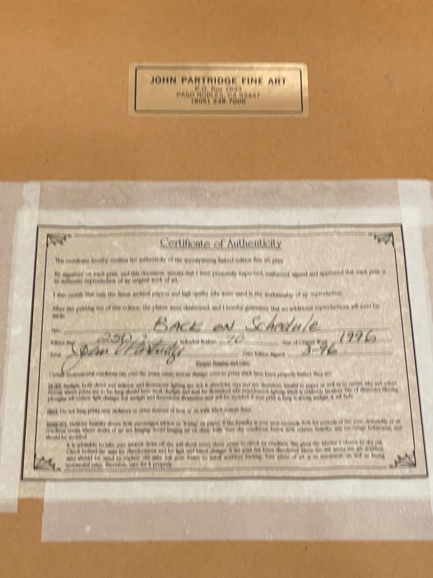 S/N 1996 Lithograph "Back On Schedule" By John Partridge W/ COA Great condition, minor scratches and scuffs to frame. COA included.