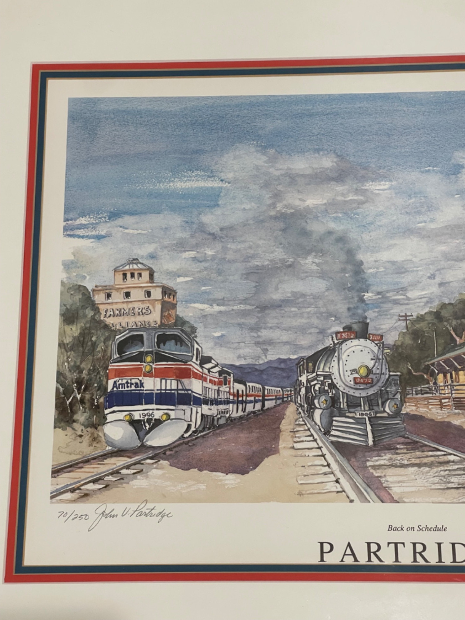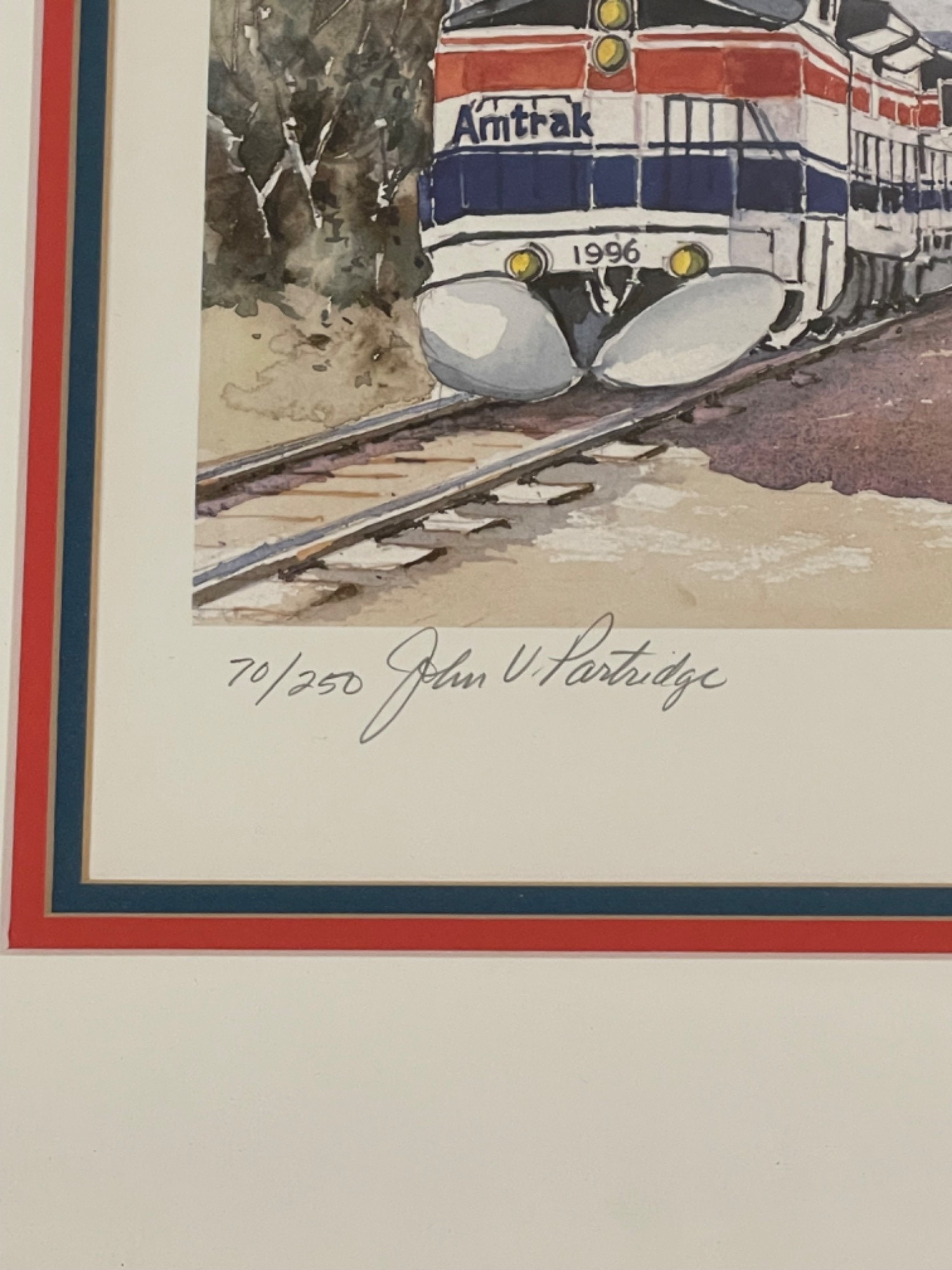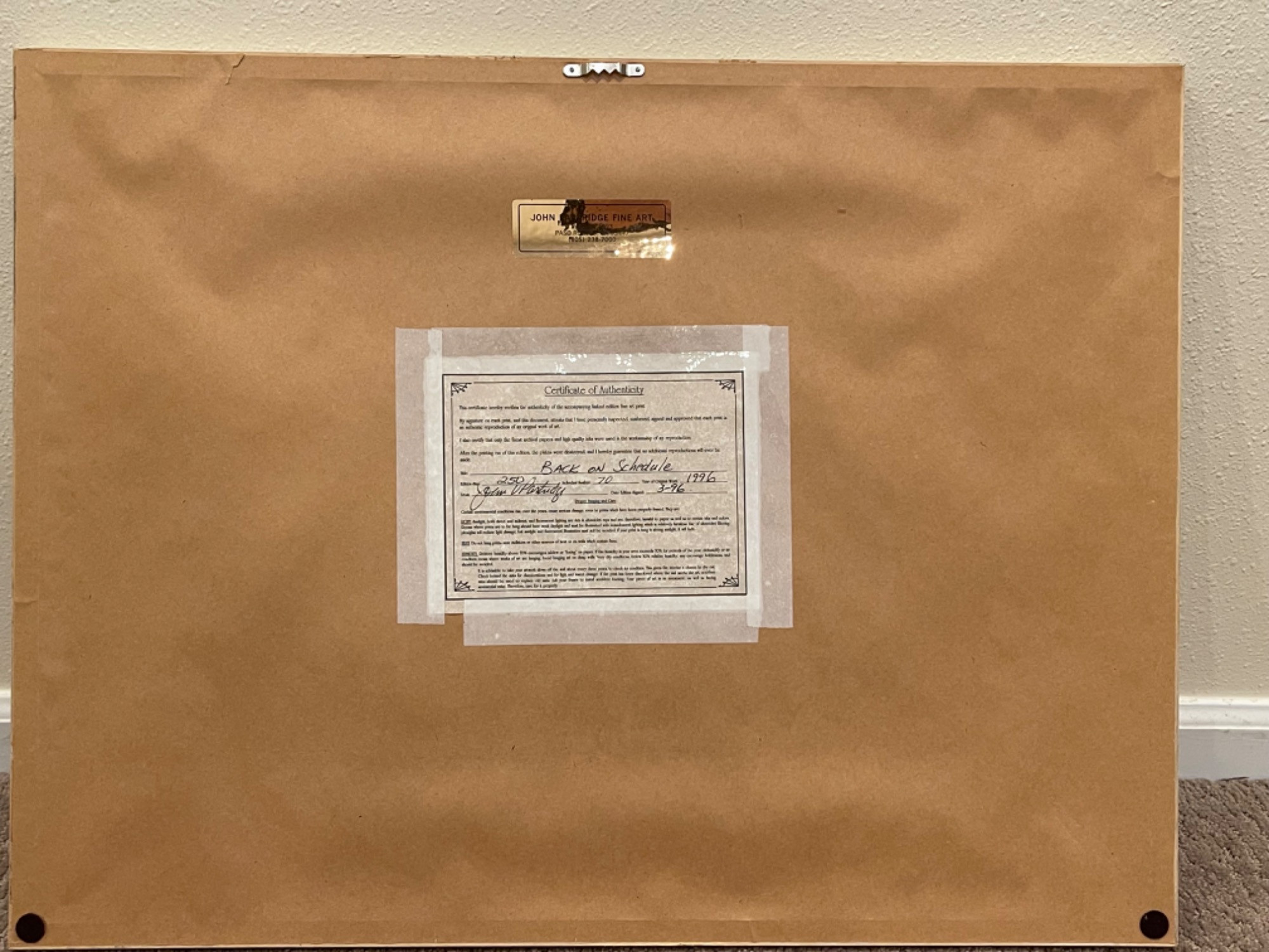 S/N 1996 Lithograph "Back On Schedule" By John Partridge W/ COA Great condition, minor scratches and scuffs to frame. COA included.