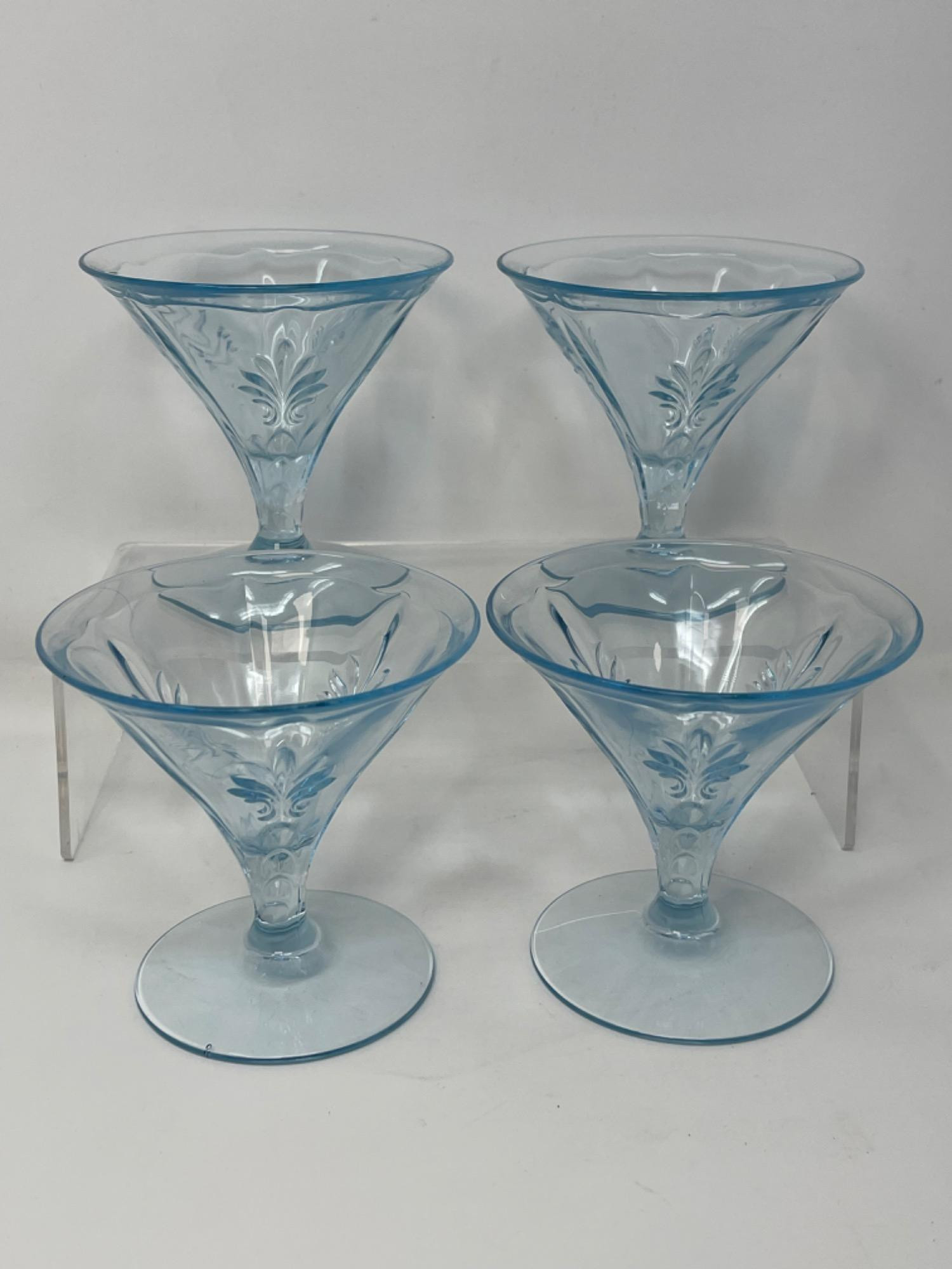 Blue Fostoria Baroque Blue Pieces Great condition. Smallest: 2.5” H Largest: 6.5” H Display stand NOT included.
