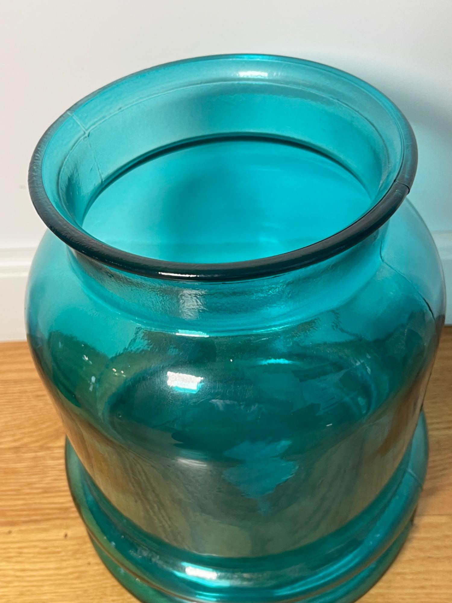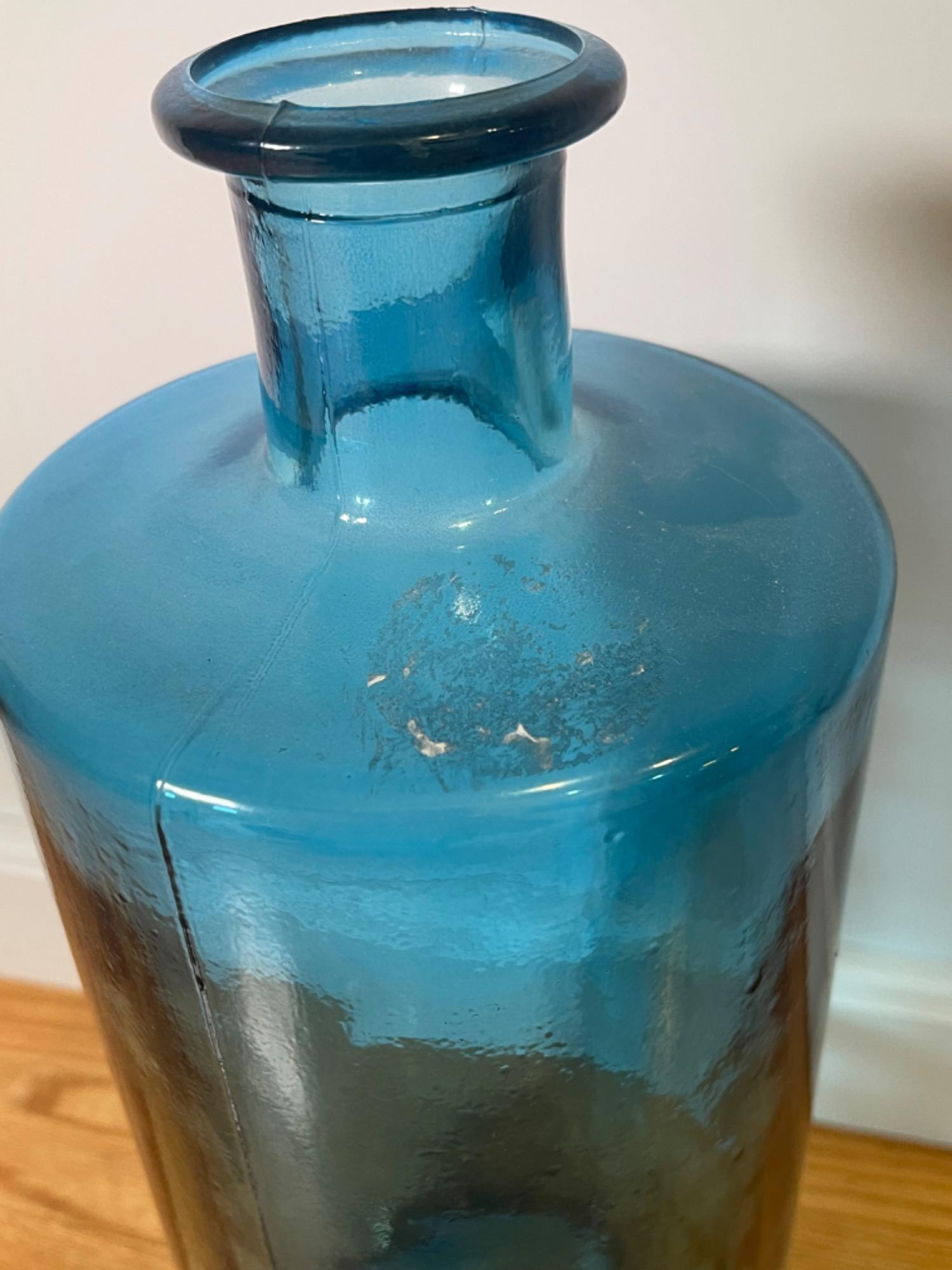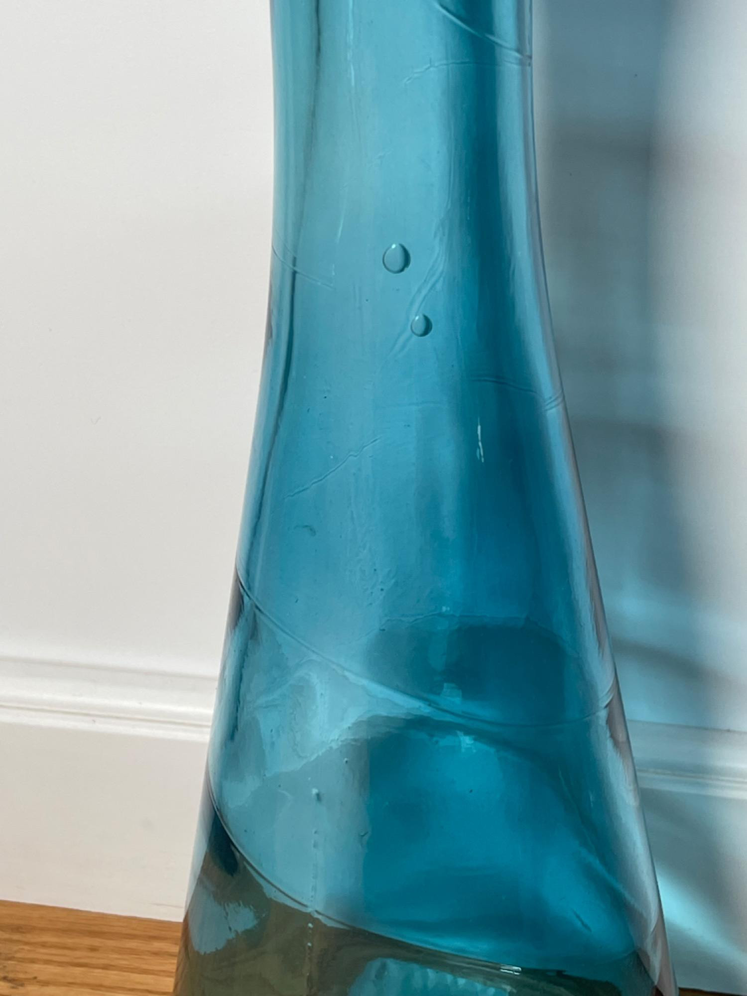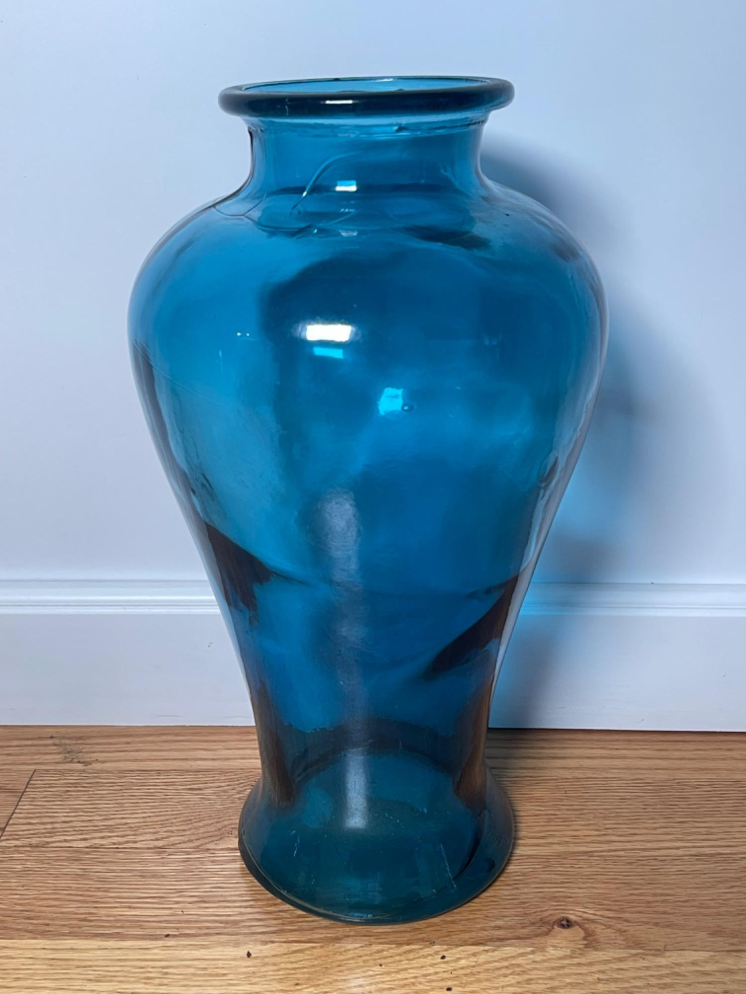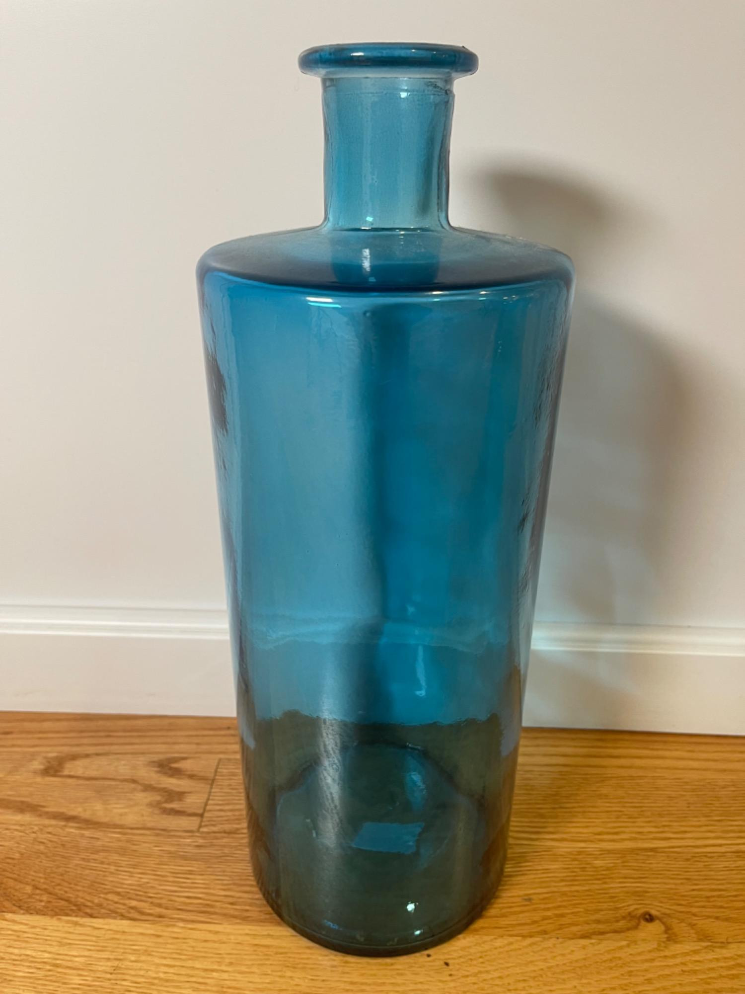 Beautiful Blue Glass Vase Decor All have some scratches and scuffs, but are in good condition. Smallest: 10" H Largest: 16" H