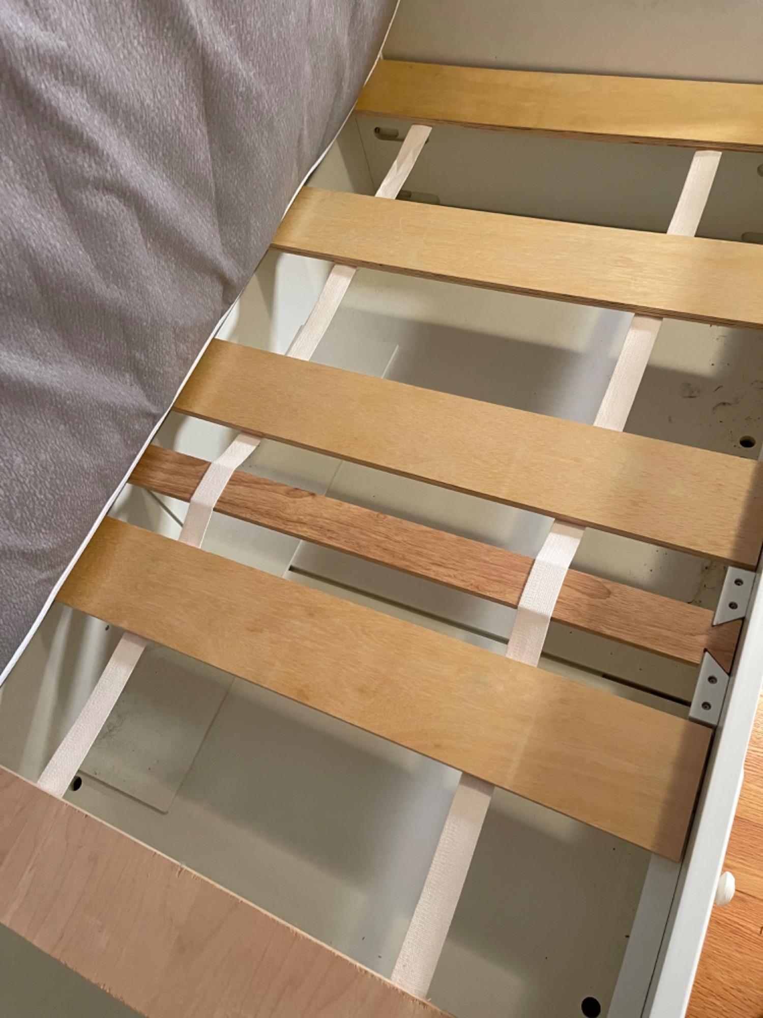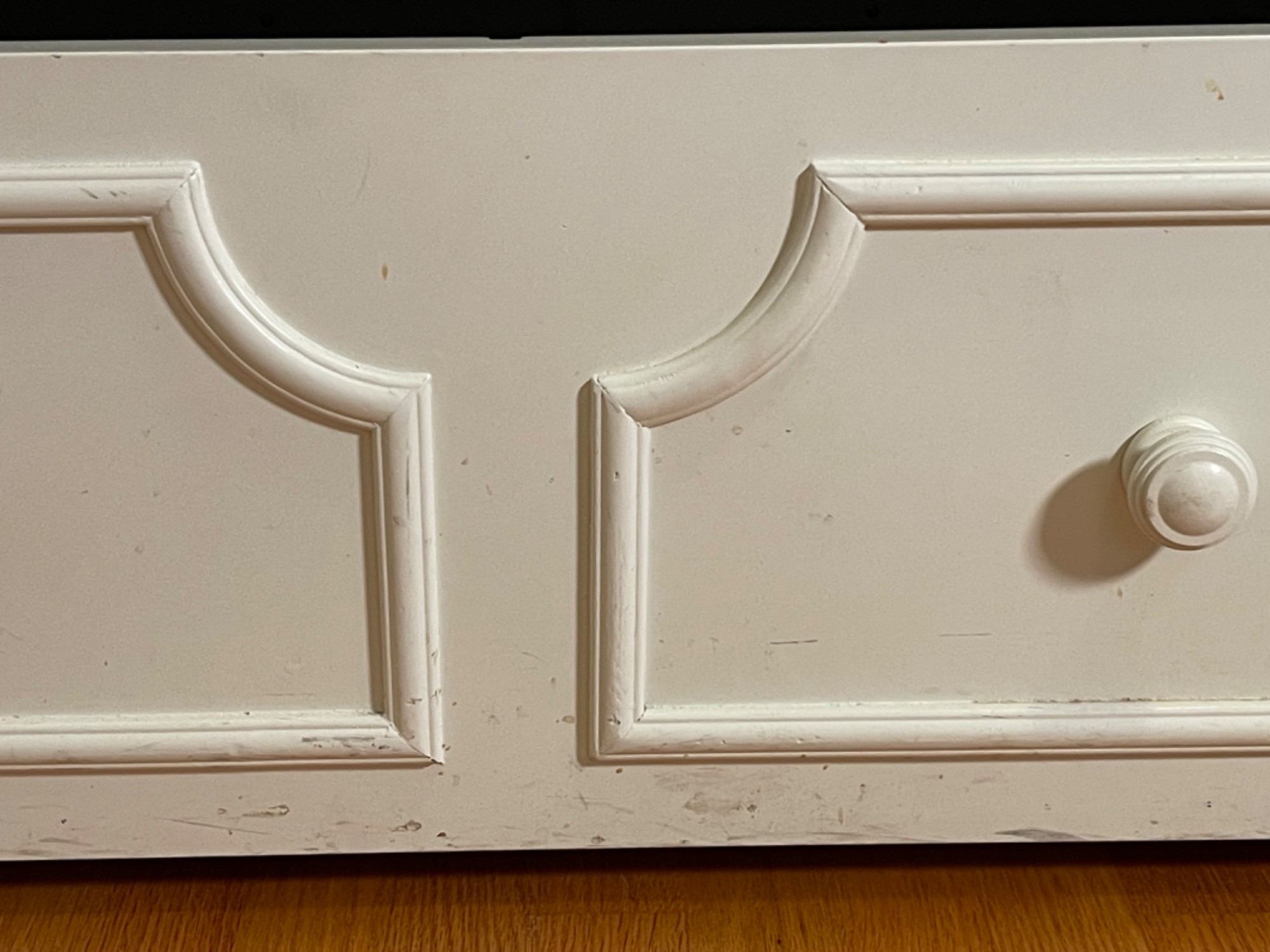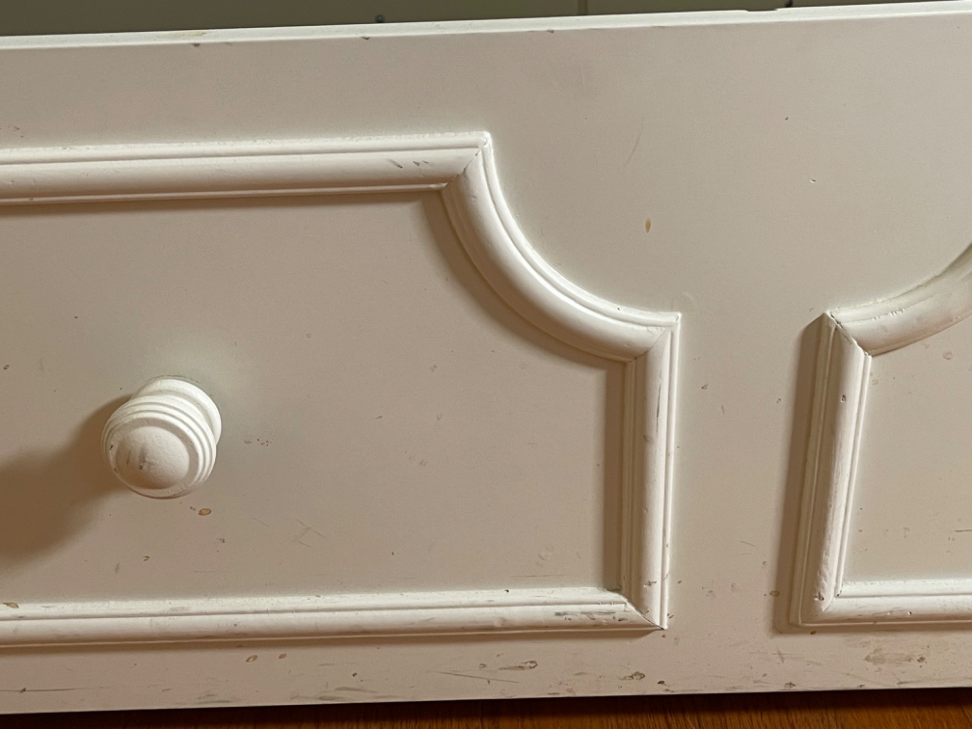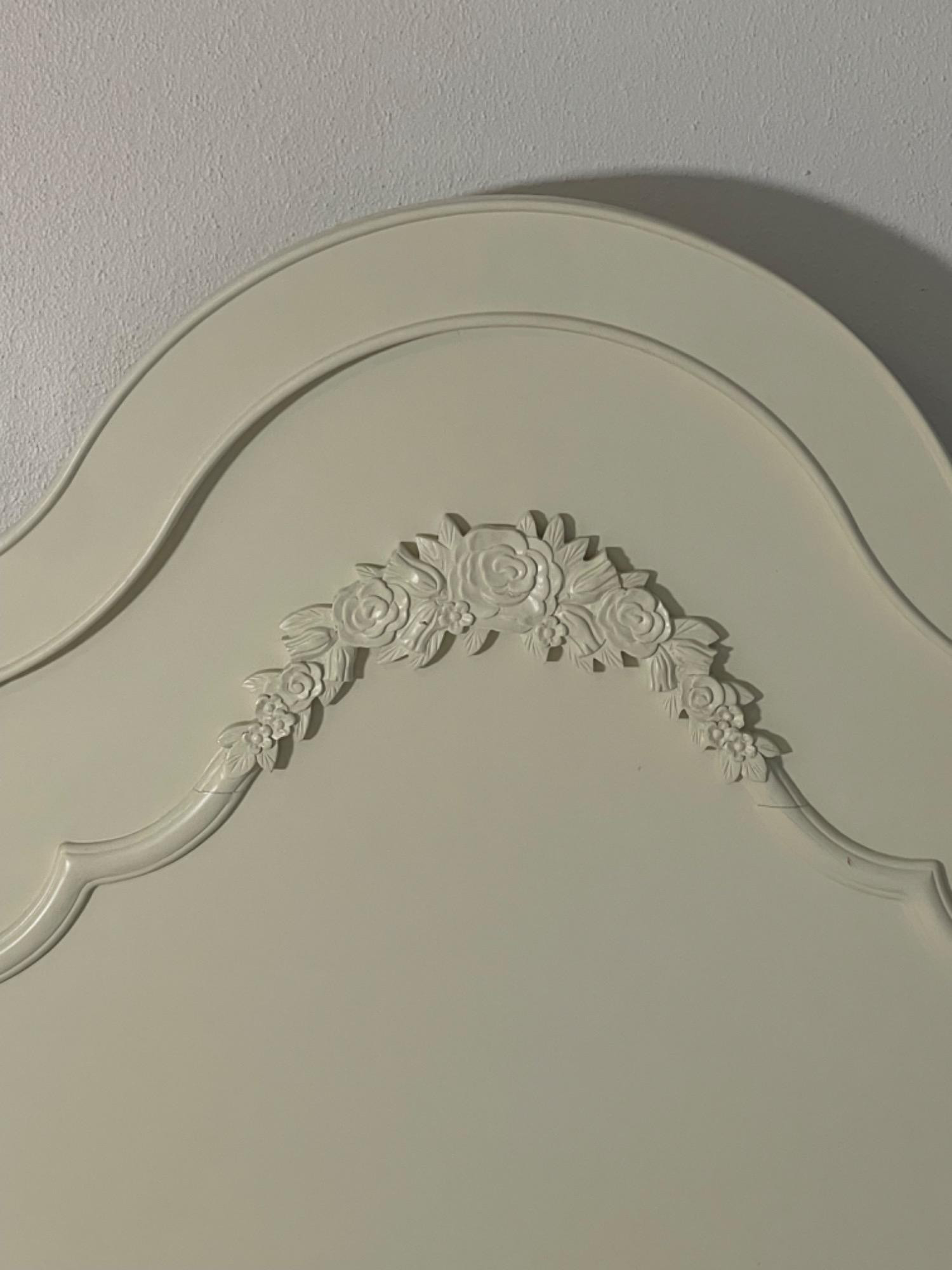 White Twin Trundle Bed and Mattress Only one mattress included. Mattress is in good used condition. Frame has many scuffs and scratches to paint, but is sturdy. Good used condition. Headboard measurements: 41.5" W x 53" H