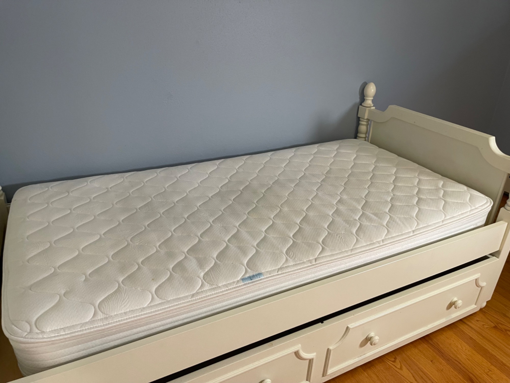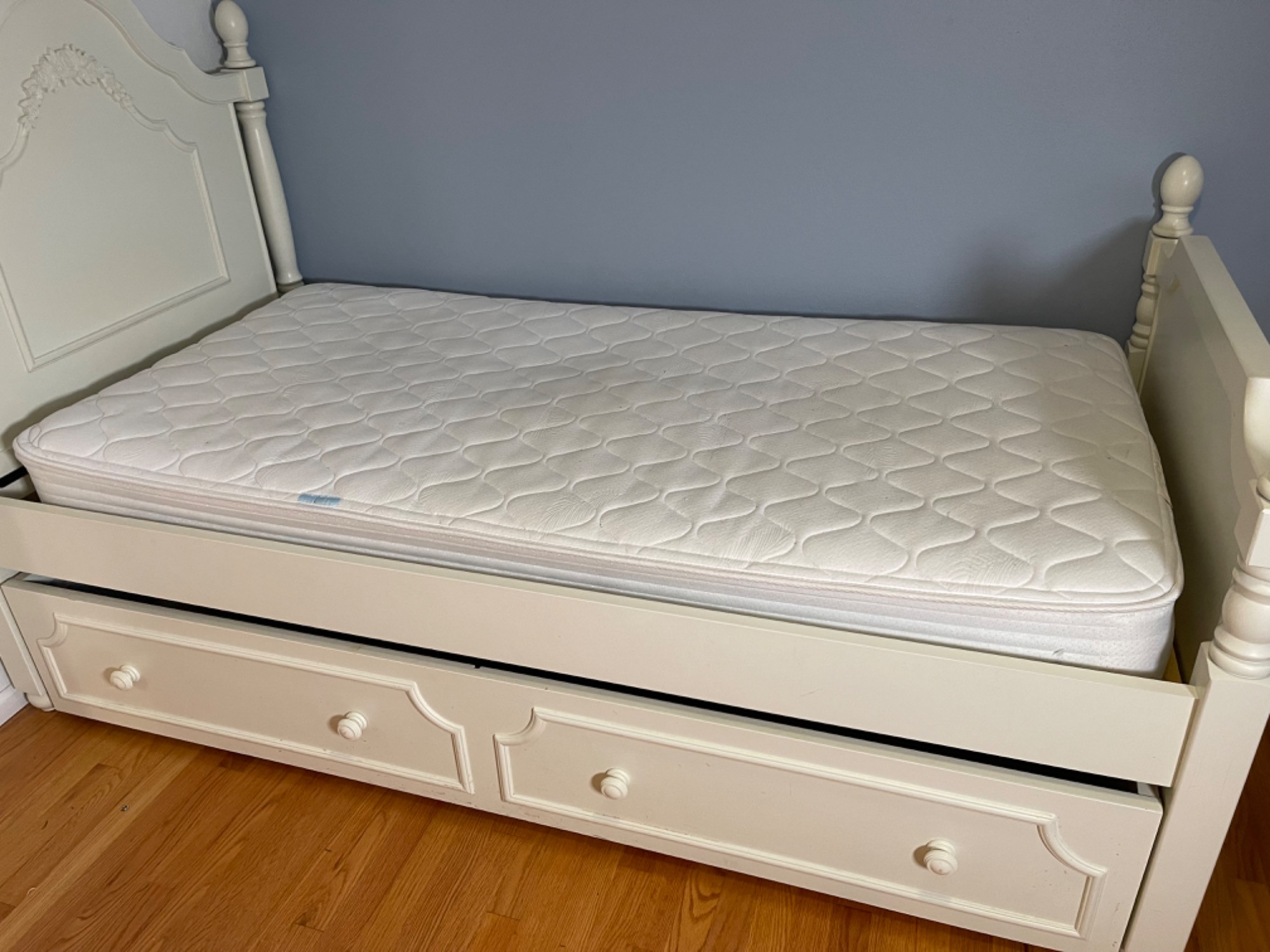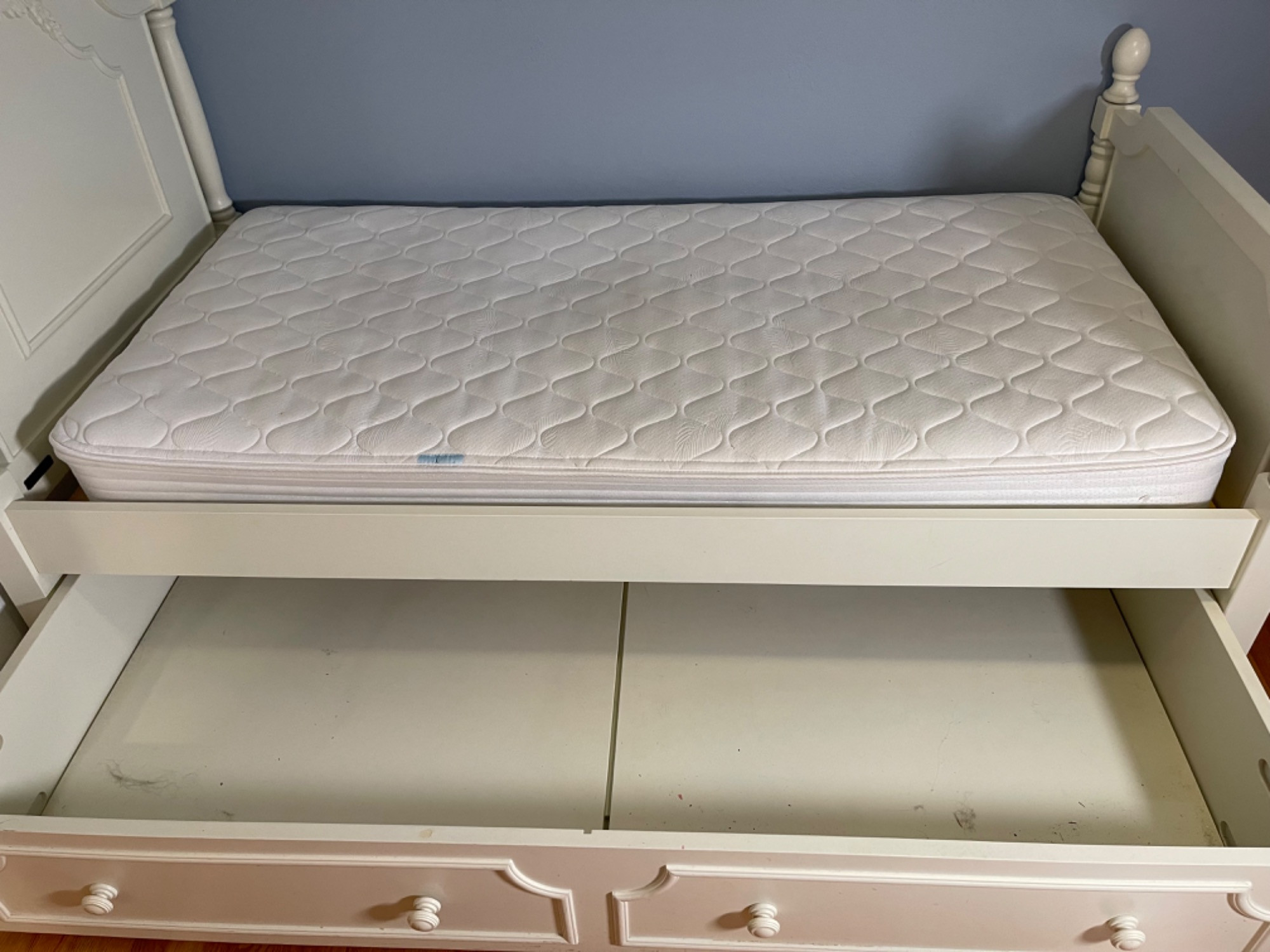 Lot # 40 - White Twin Trundle Bed and Mattress