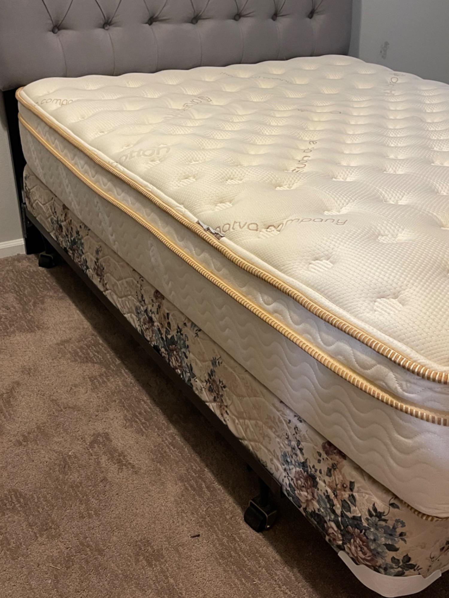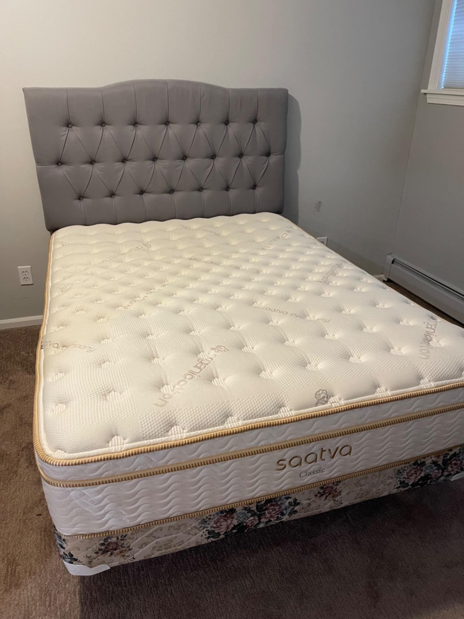 Full Size Bed + Mattress & Box Spring All look to very lightly used and are in good condition. Headboard measurements: 55" W x 54" H
