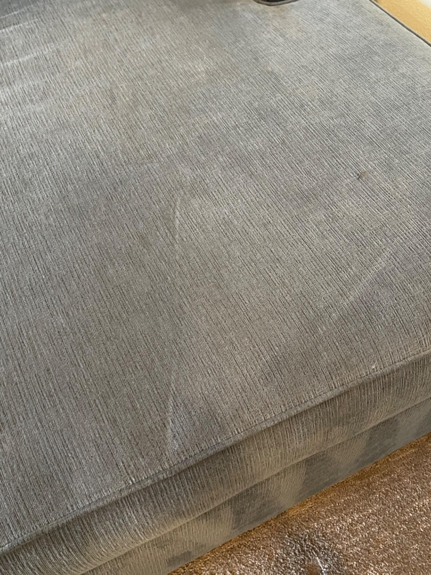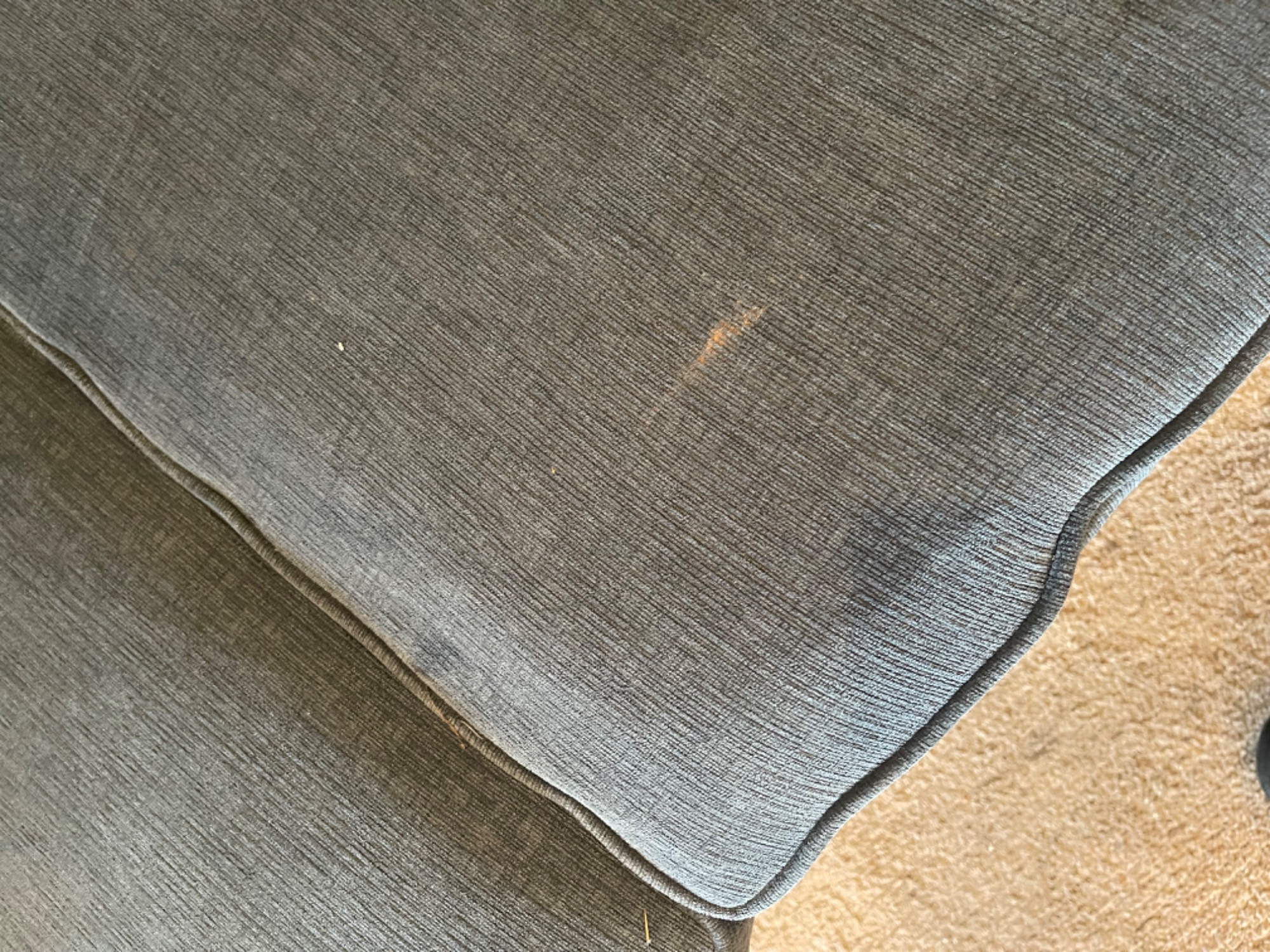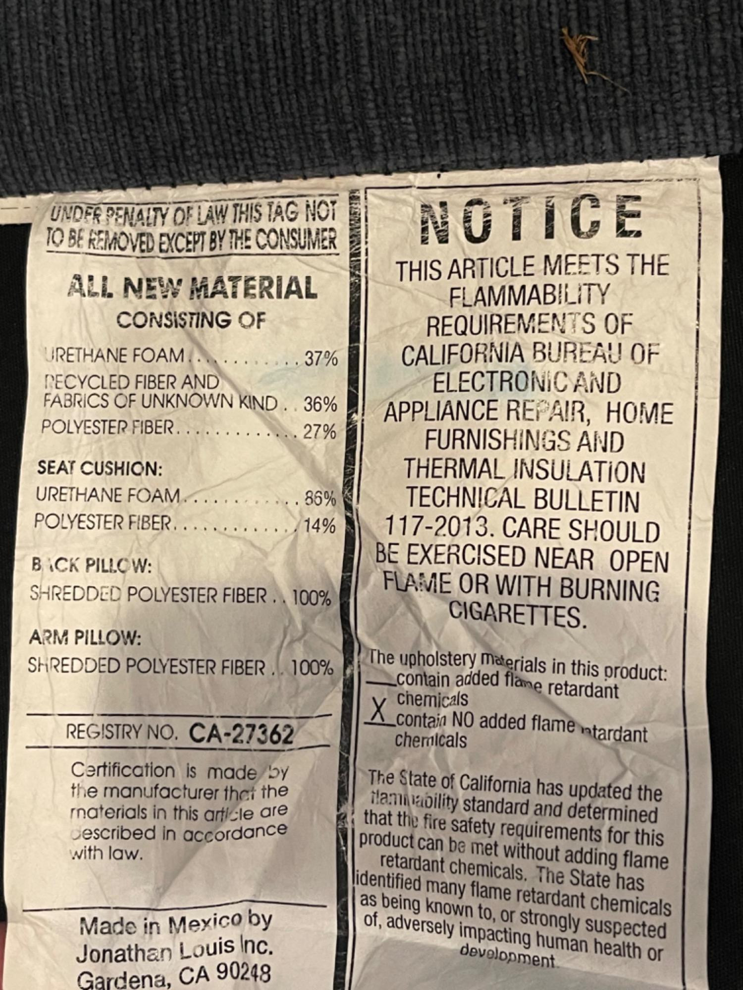 Large Jonathan Louis Blue Sectional Very used, but good condition. Some stains on undersides of cushions, but other stains are minor. Chaise: 65" L