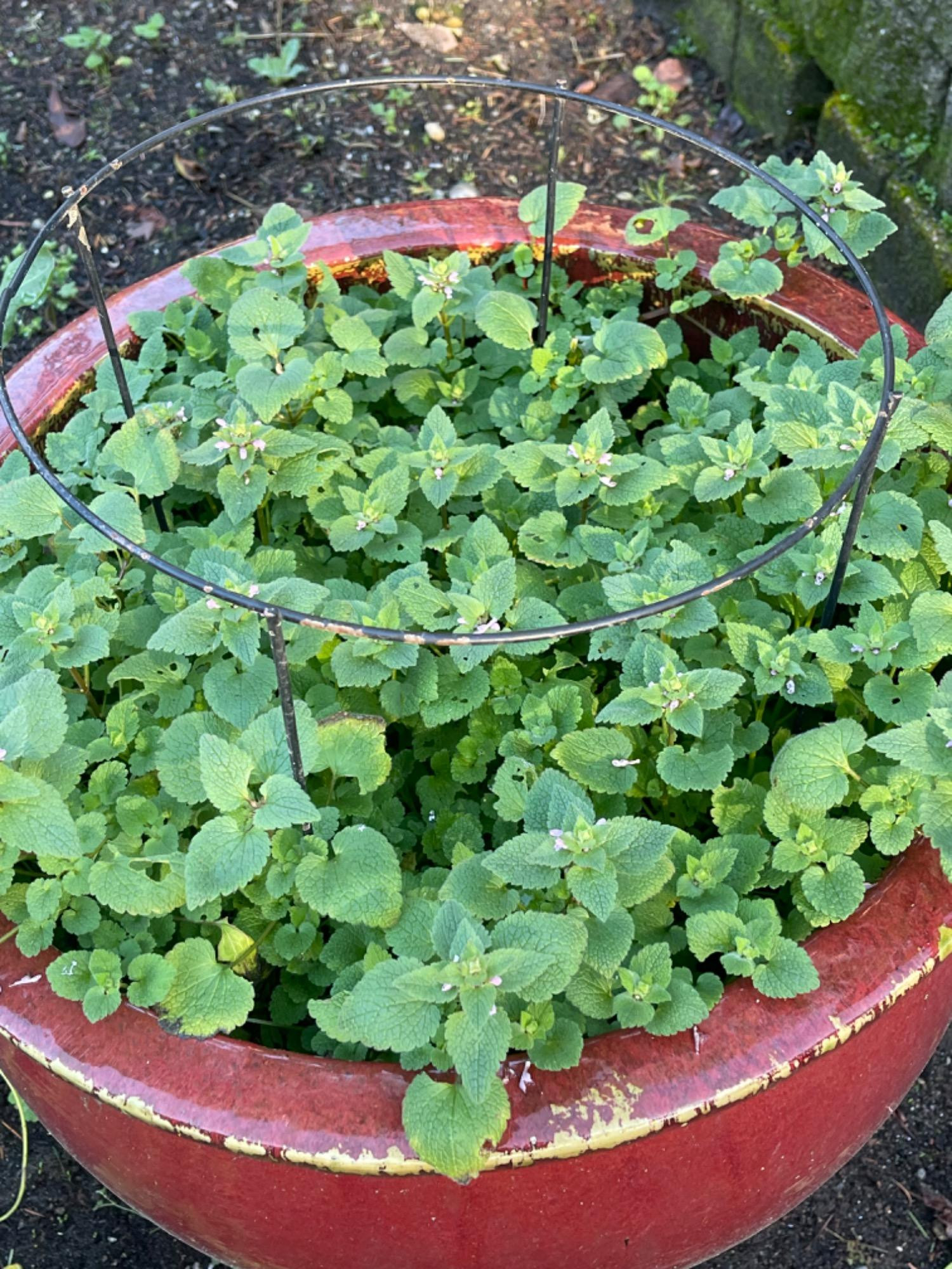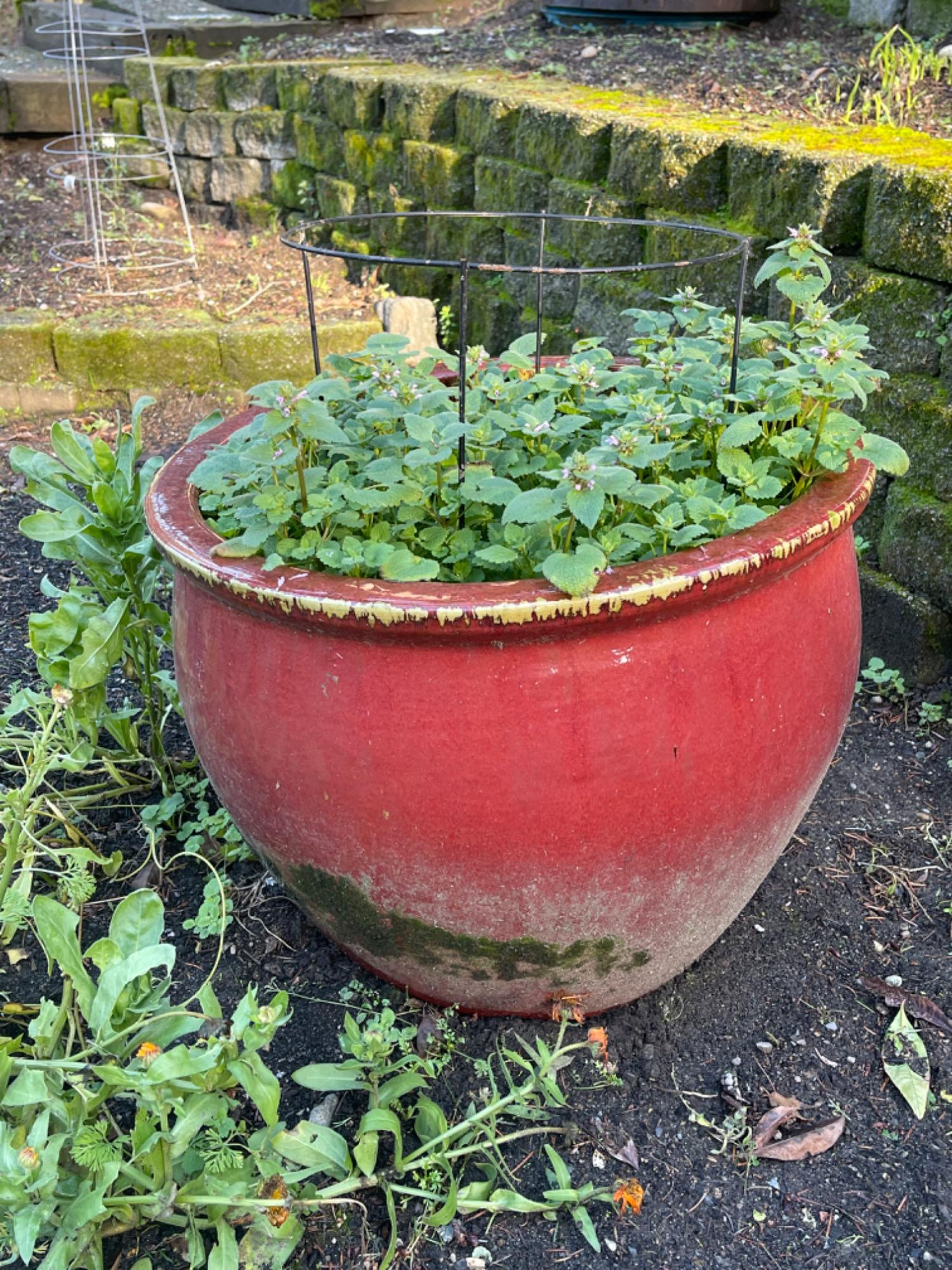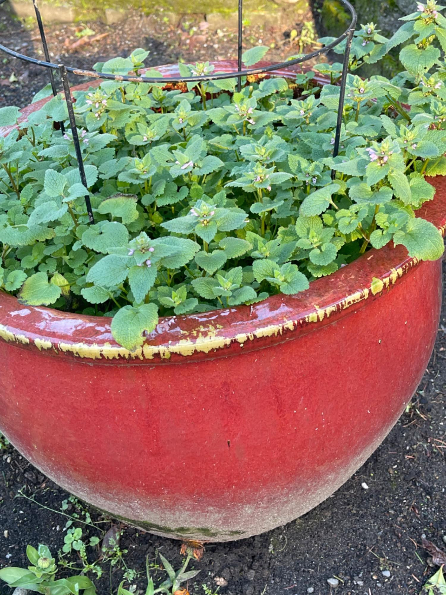 Large Red Pot Good used condition. Minor scratches and scuffs. Typical wear from being outside. Unknown plant.