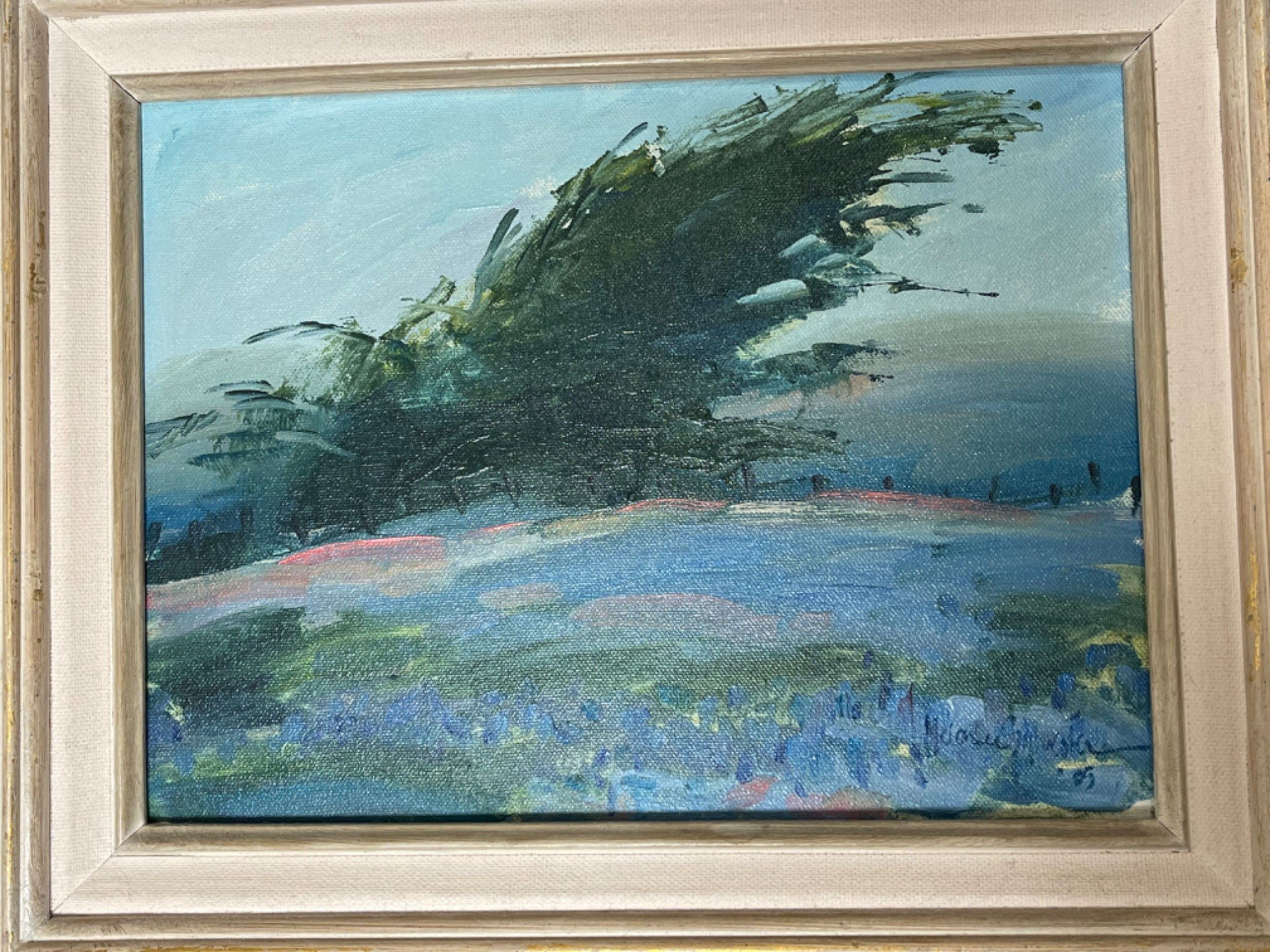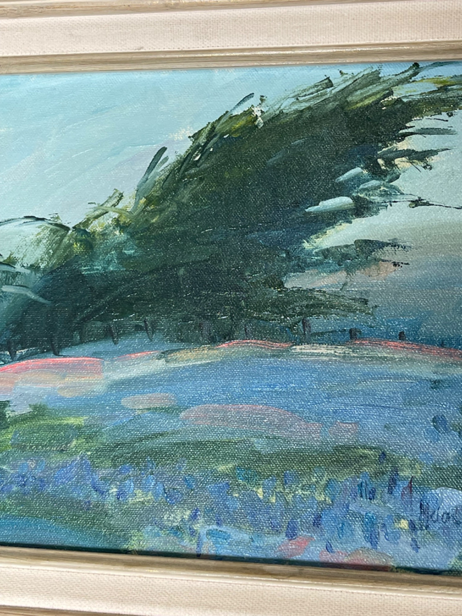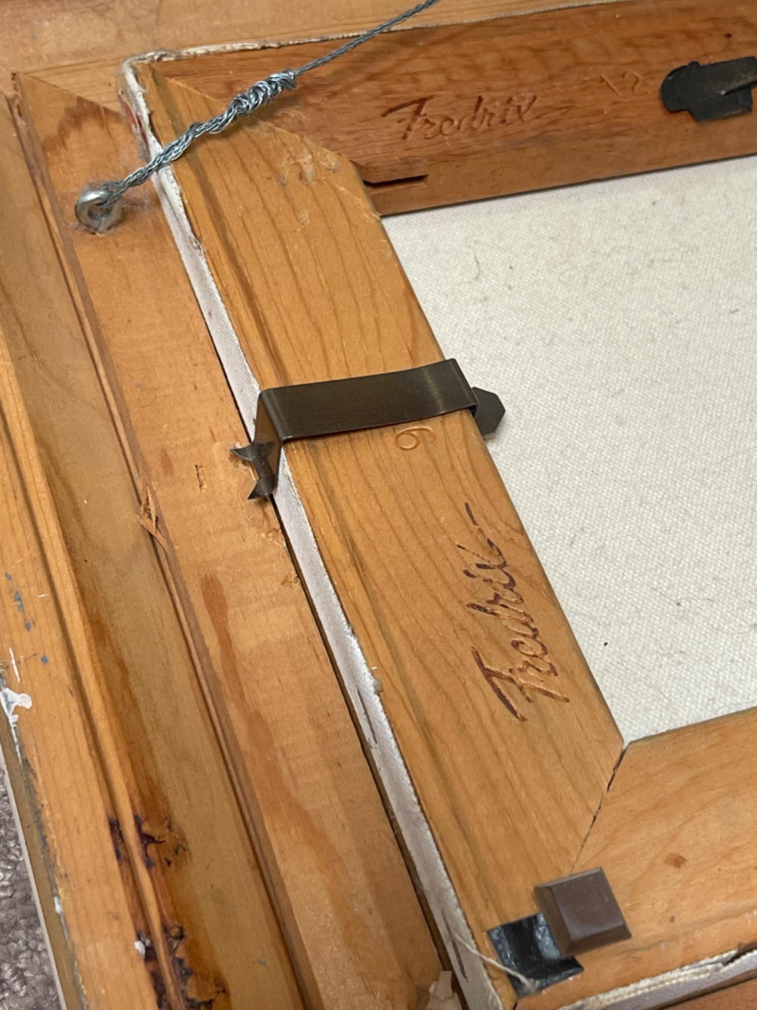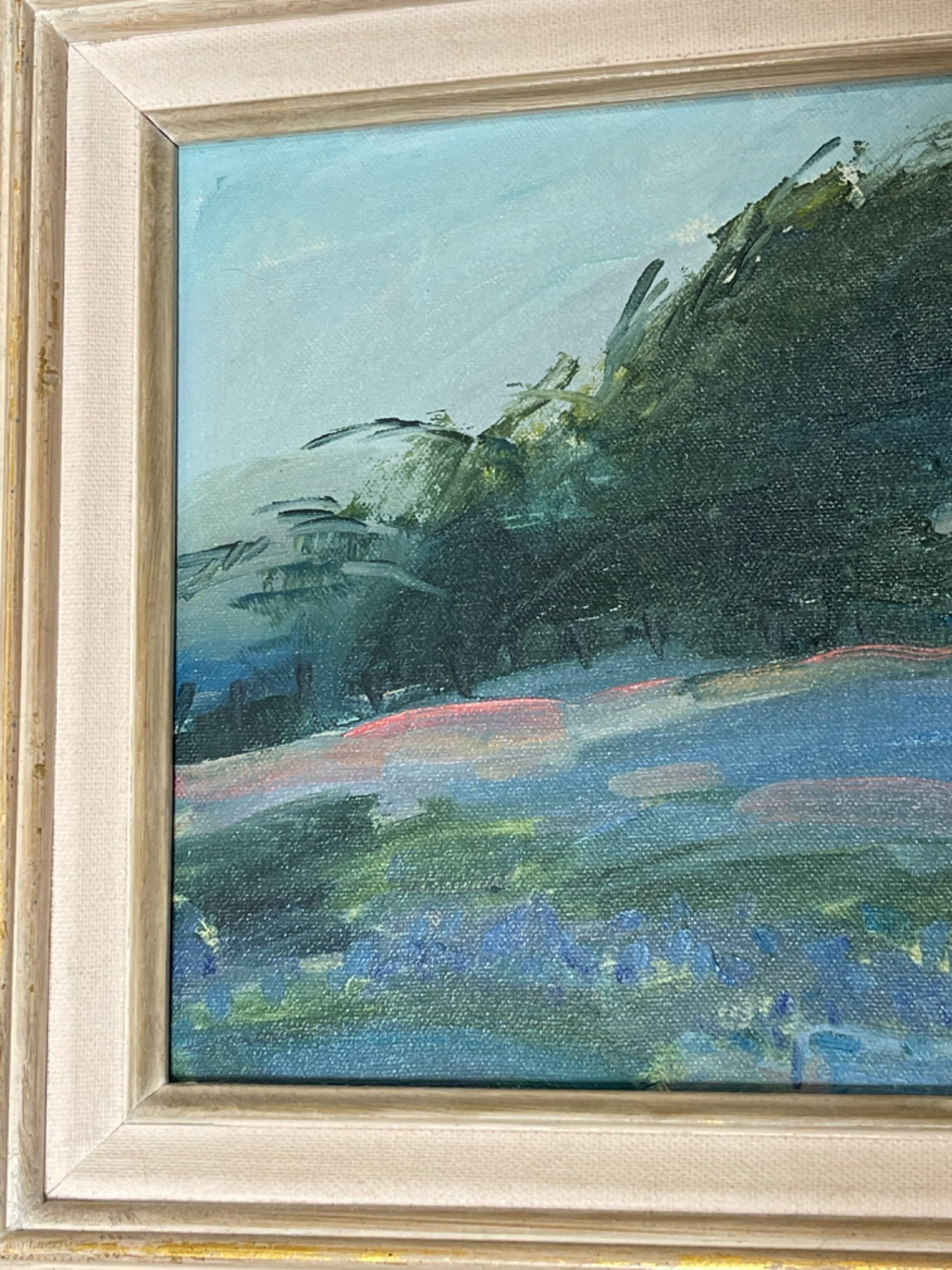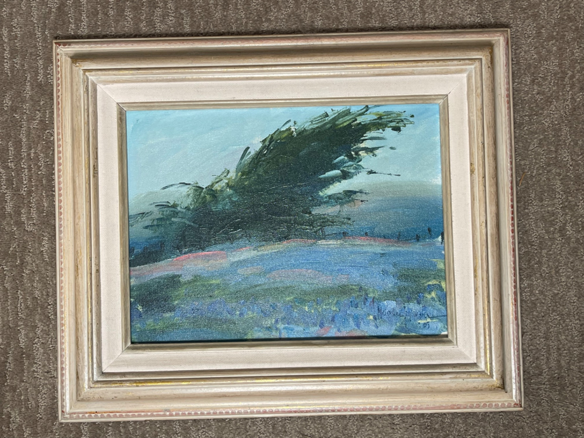 Small Melanee Sylvester Painting Painting has come out of frame on one side. Needs to be resituated in frame, or reframed. Painting in great condition otherwise.