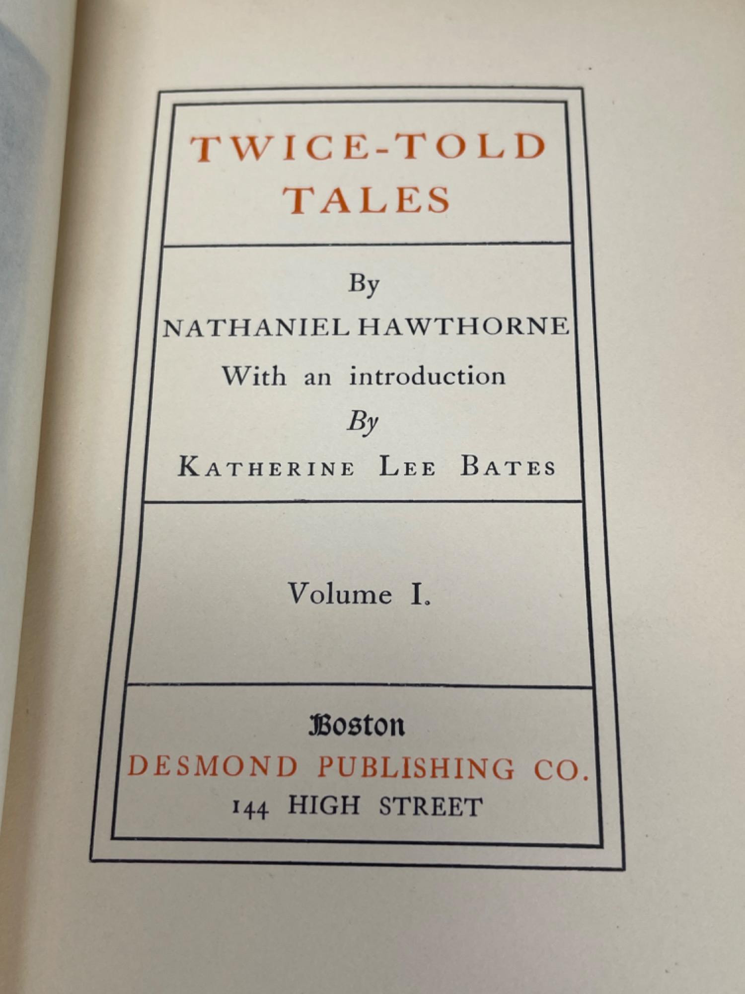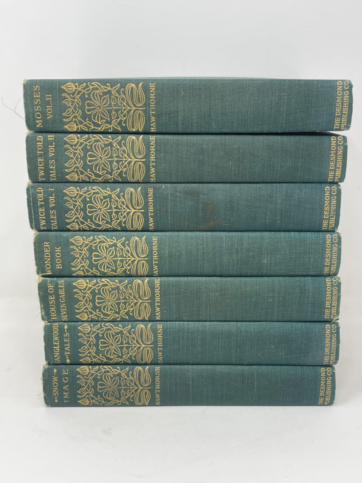 Antique Nathaniel Hawthorne Books - The Desmond Publishing Co. Copyright 1900 All in fragile condition, but holding together well. Some covers have minor staining as well. Please see photos for proper representation of quality.