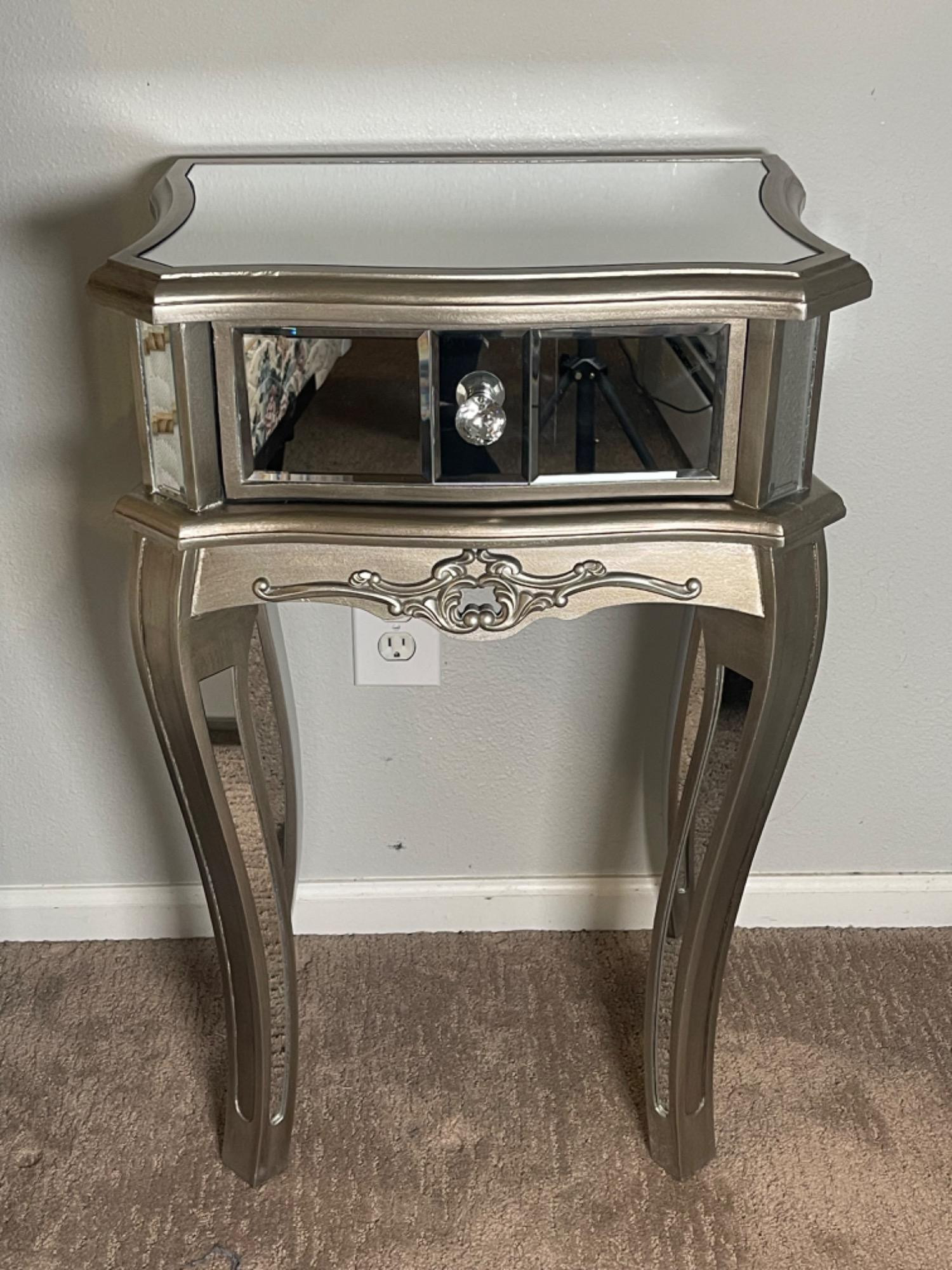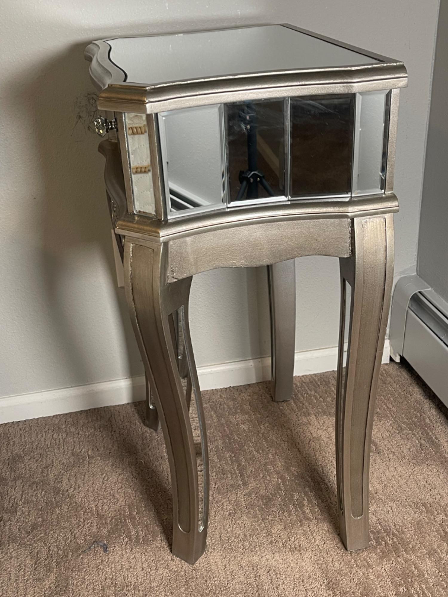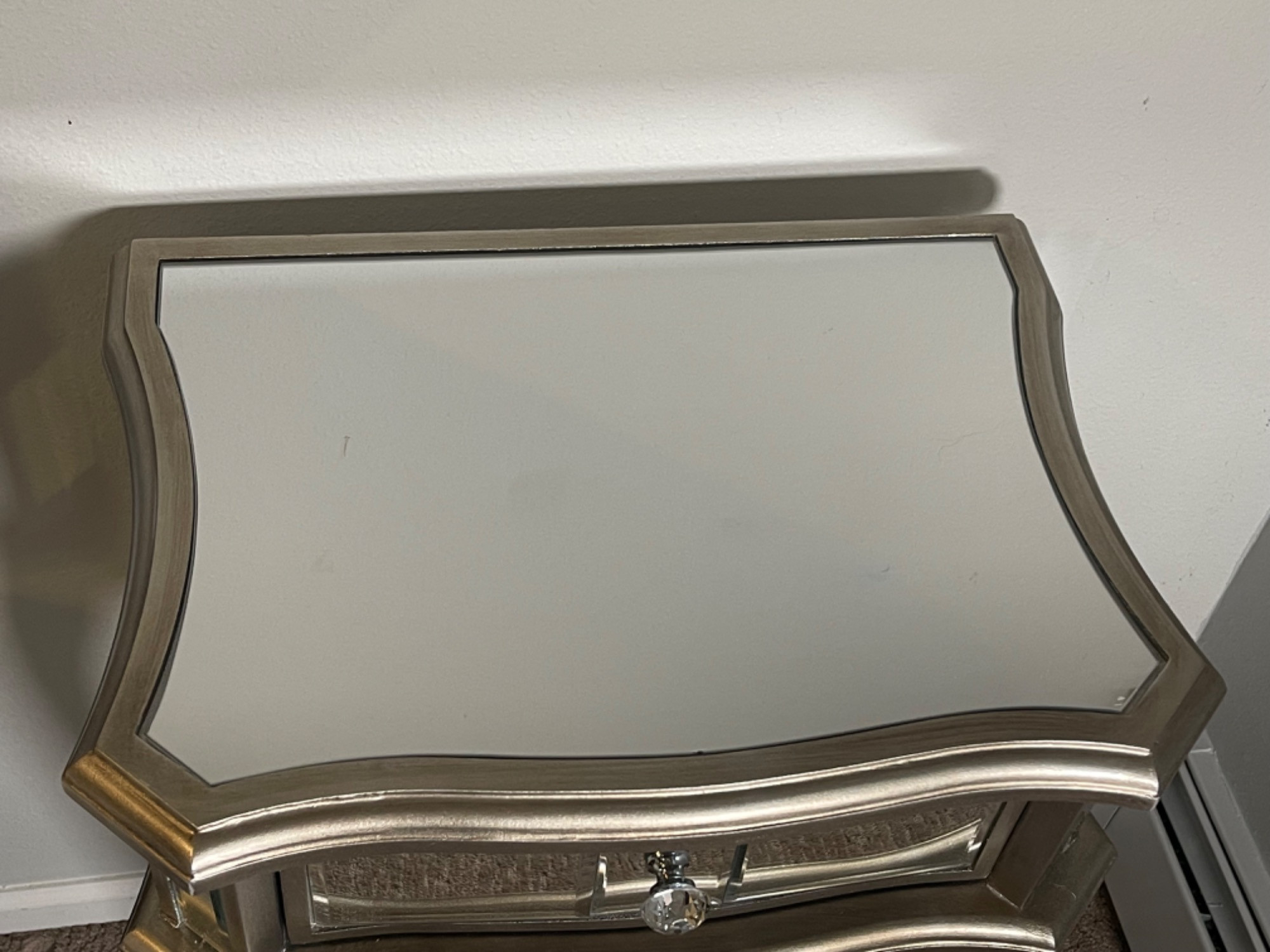 Glamorous Mirrored Nightstand #1 Great used condition. Minor scuffs and scratches from use.