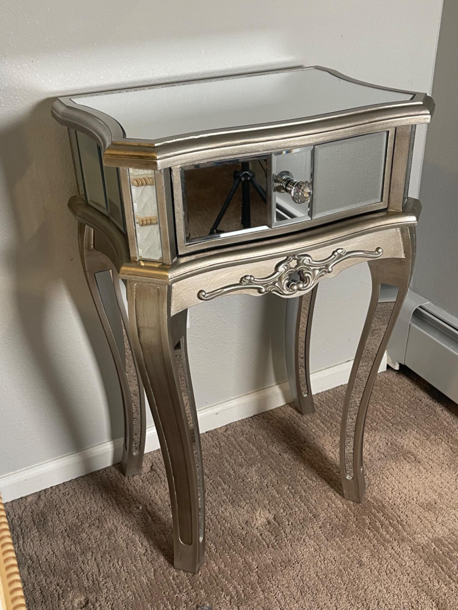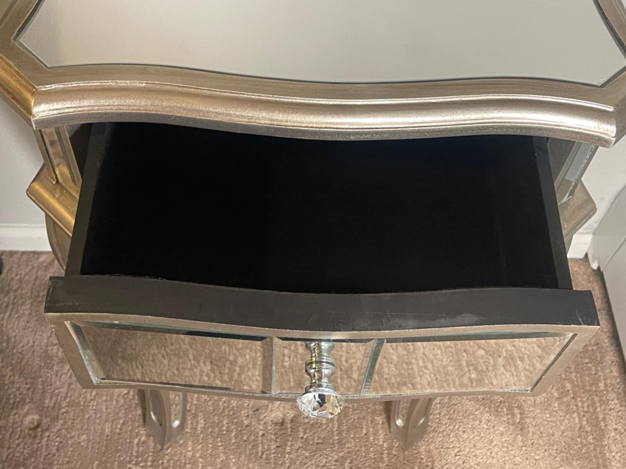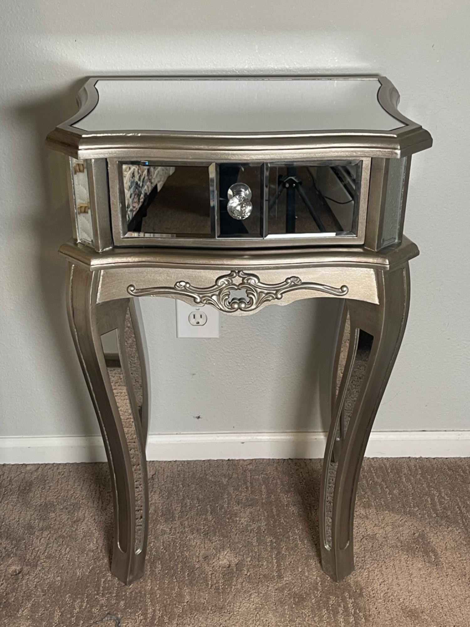 Glamorous Mirrored Nightstand #1 Great used condition. Minor scuffs and scratches from use.