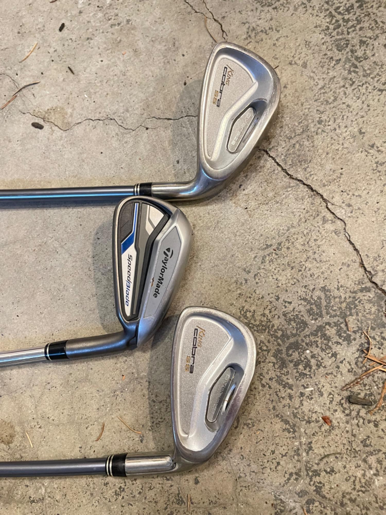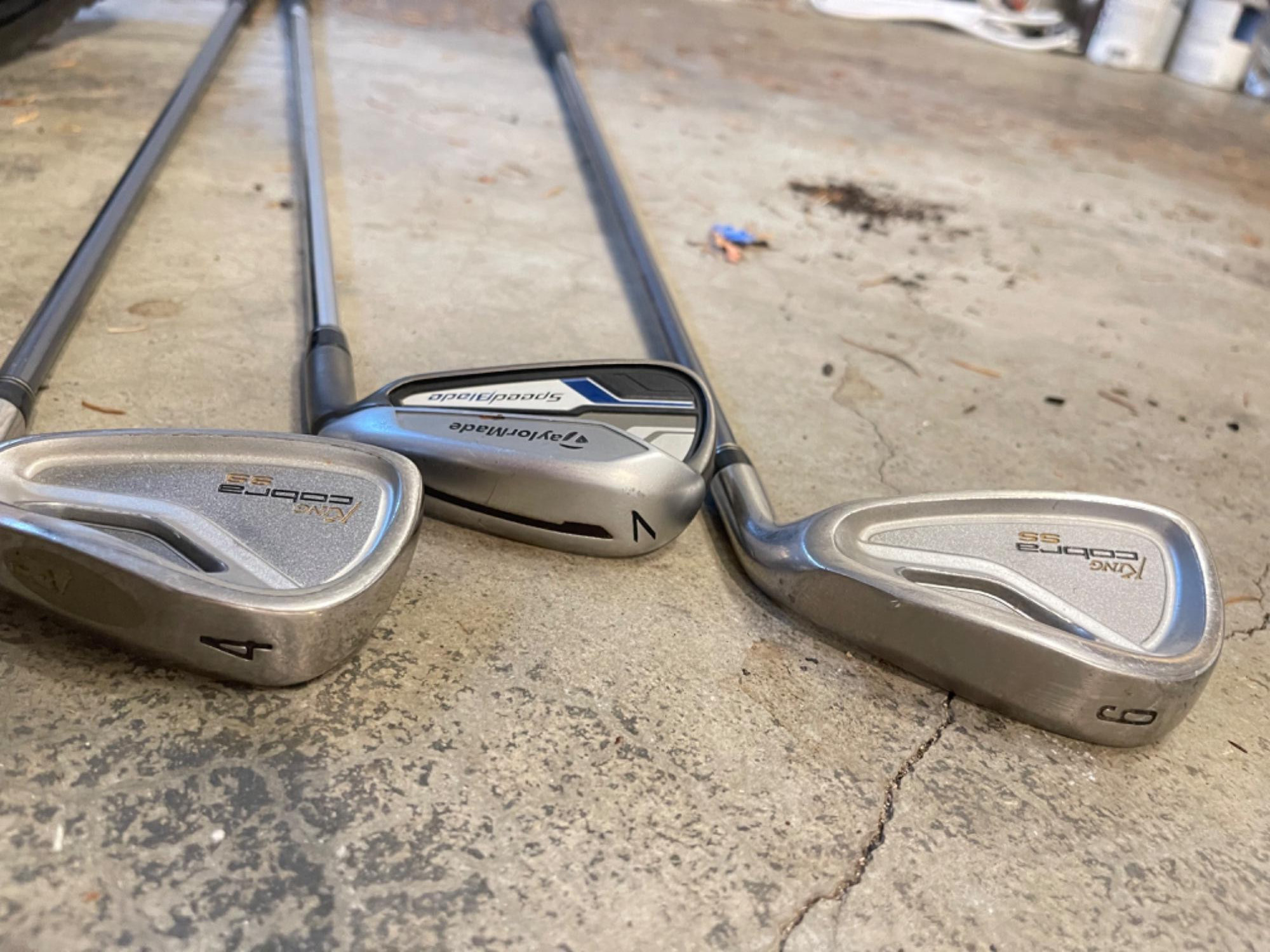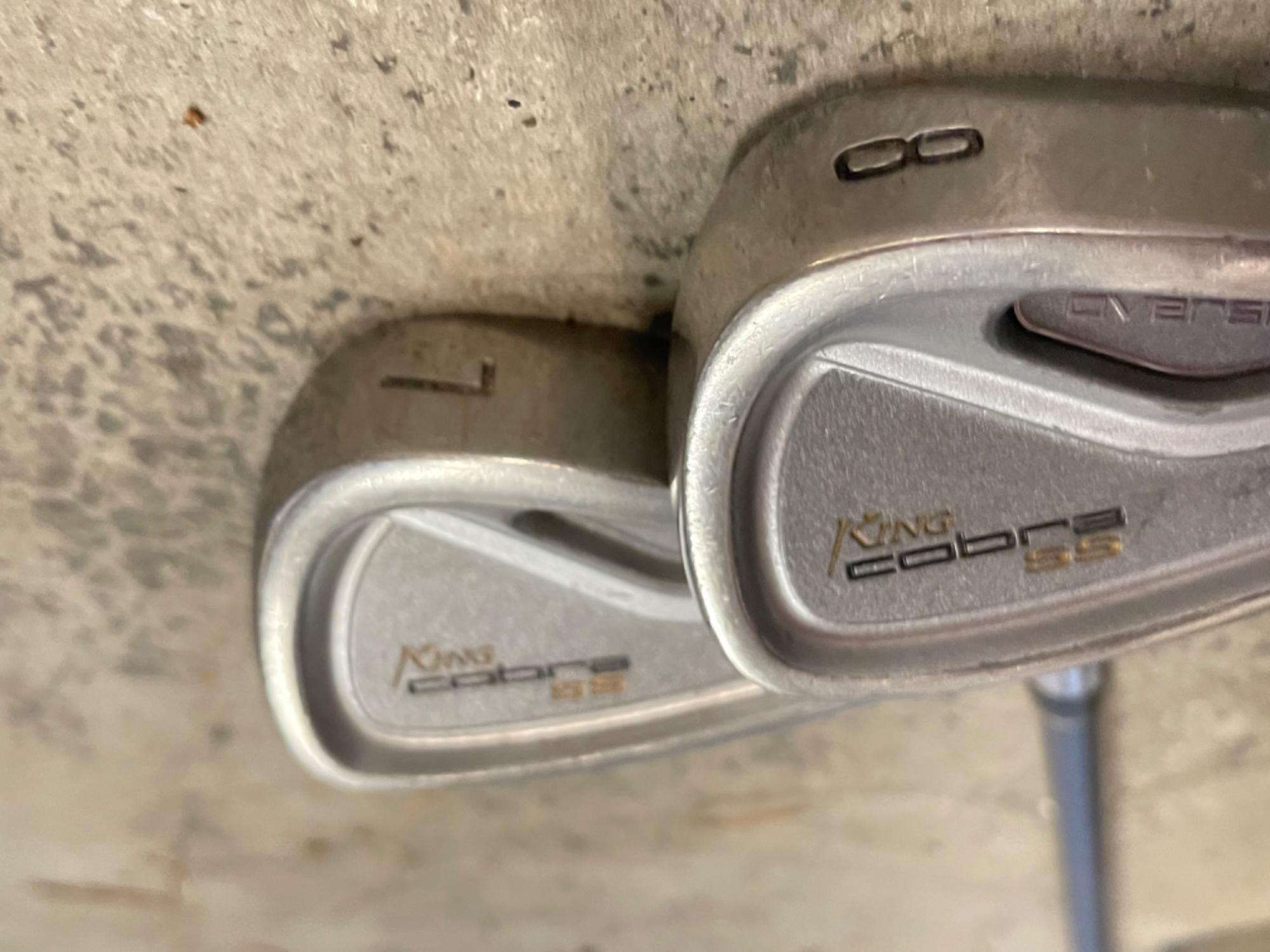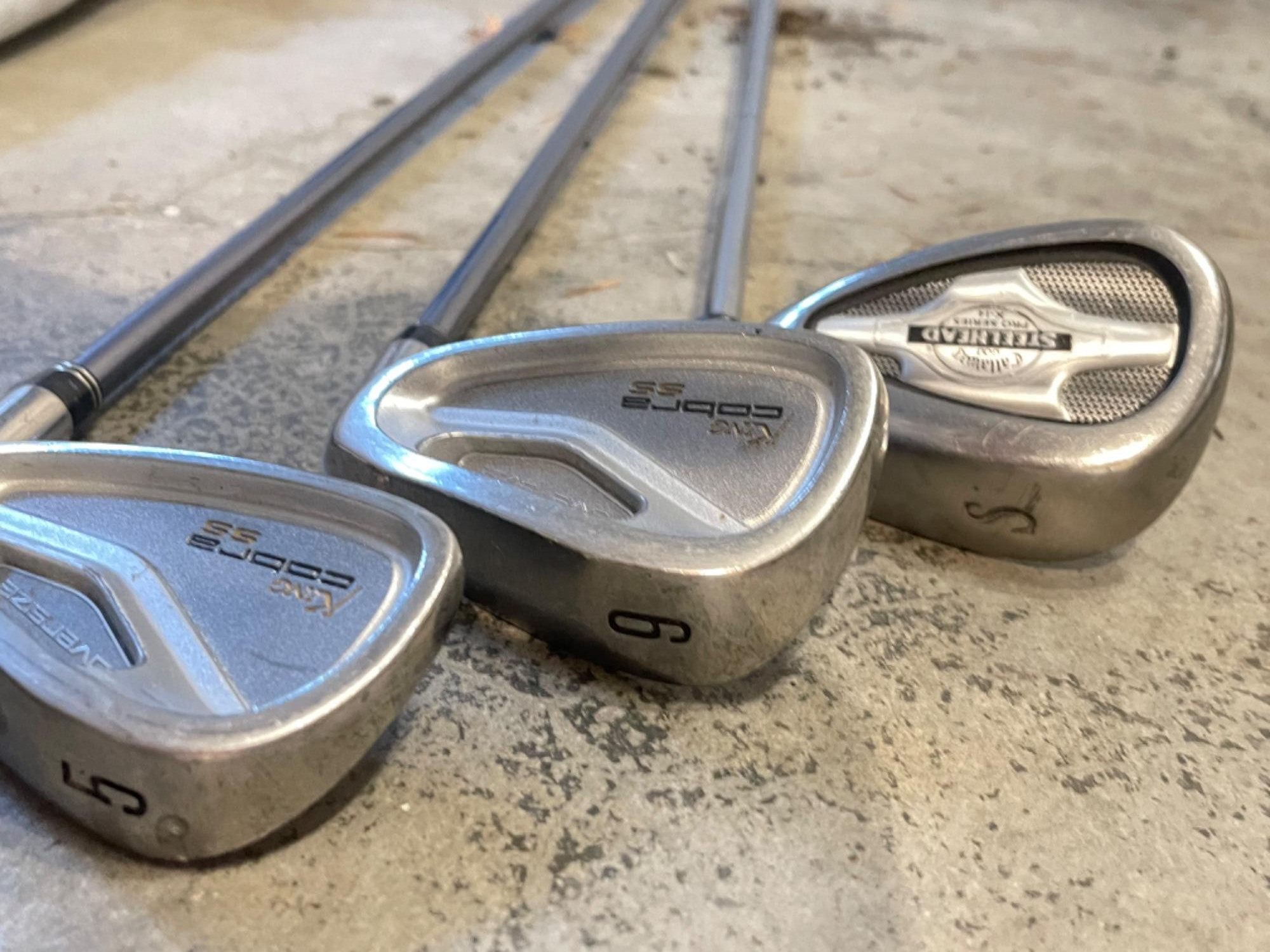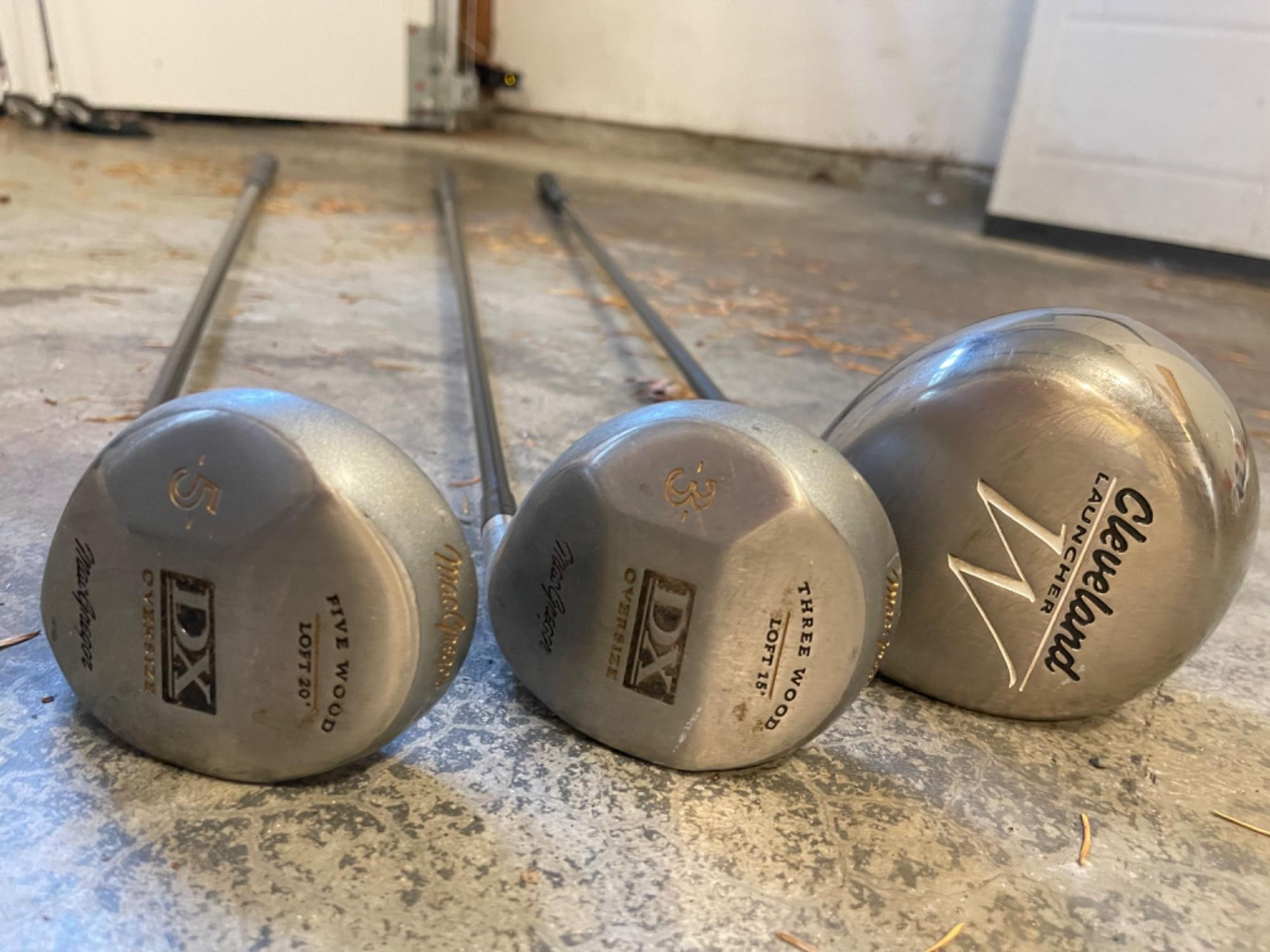 Golf Clubs and Titleist Bag All in good used condition. All have scuffs and scratches from use. Shortest: 34" L Longest: 46" L