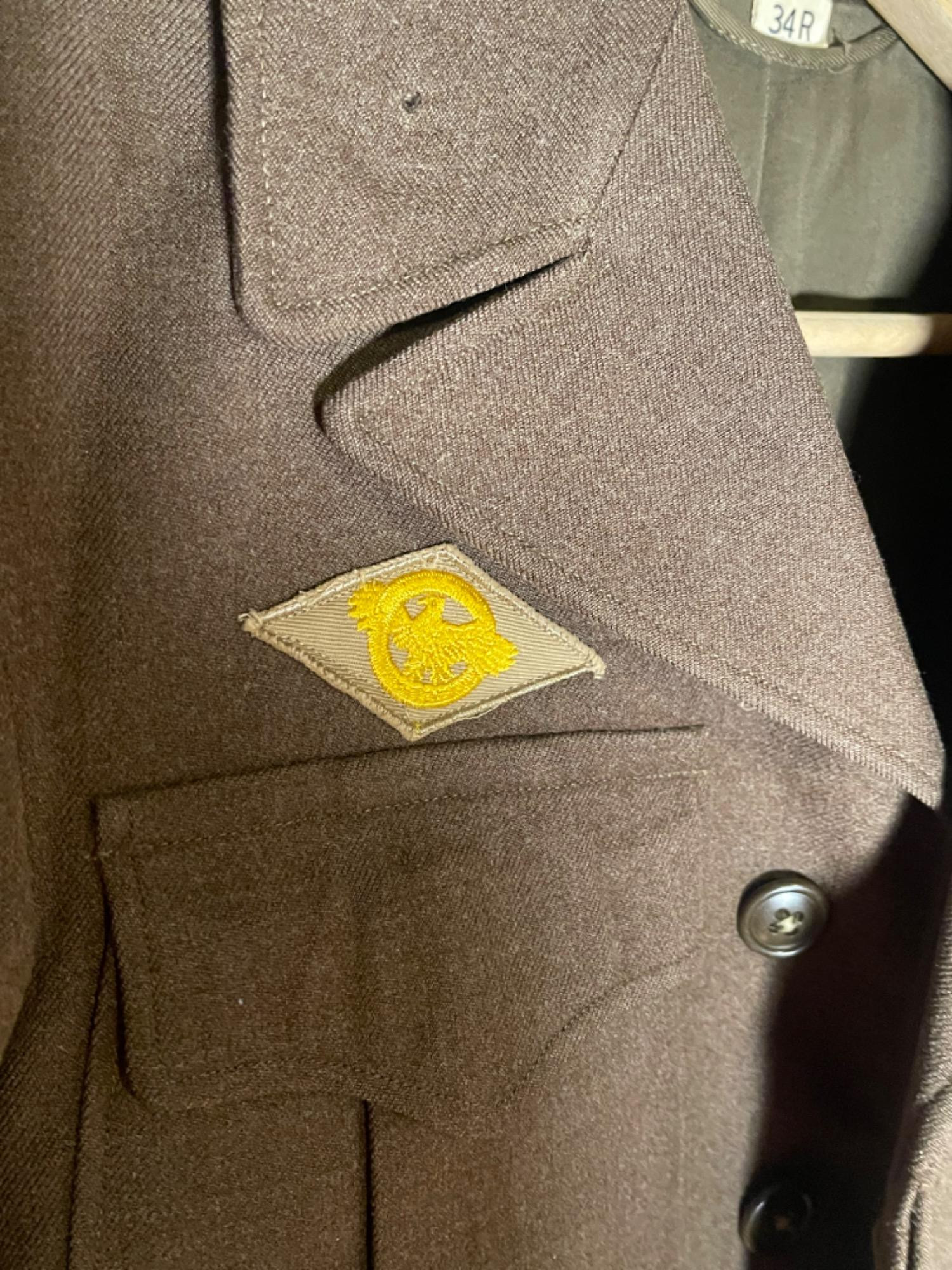 WWII U.S. Army Uniform & Cask Have been preserved in a garment bag so have been kept in great condition.