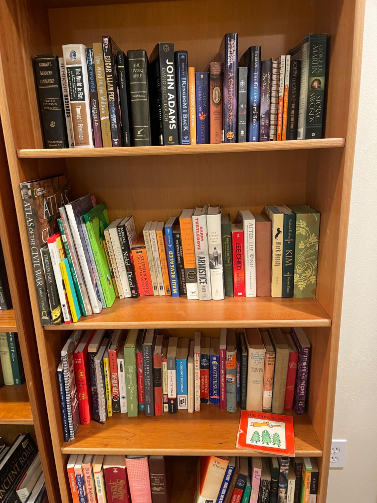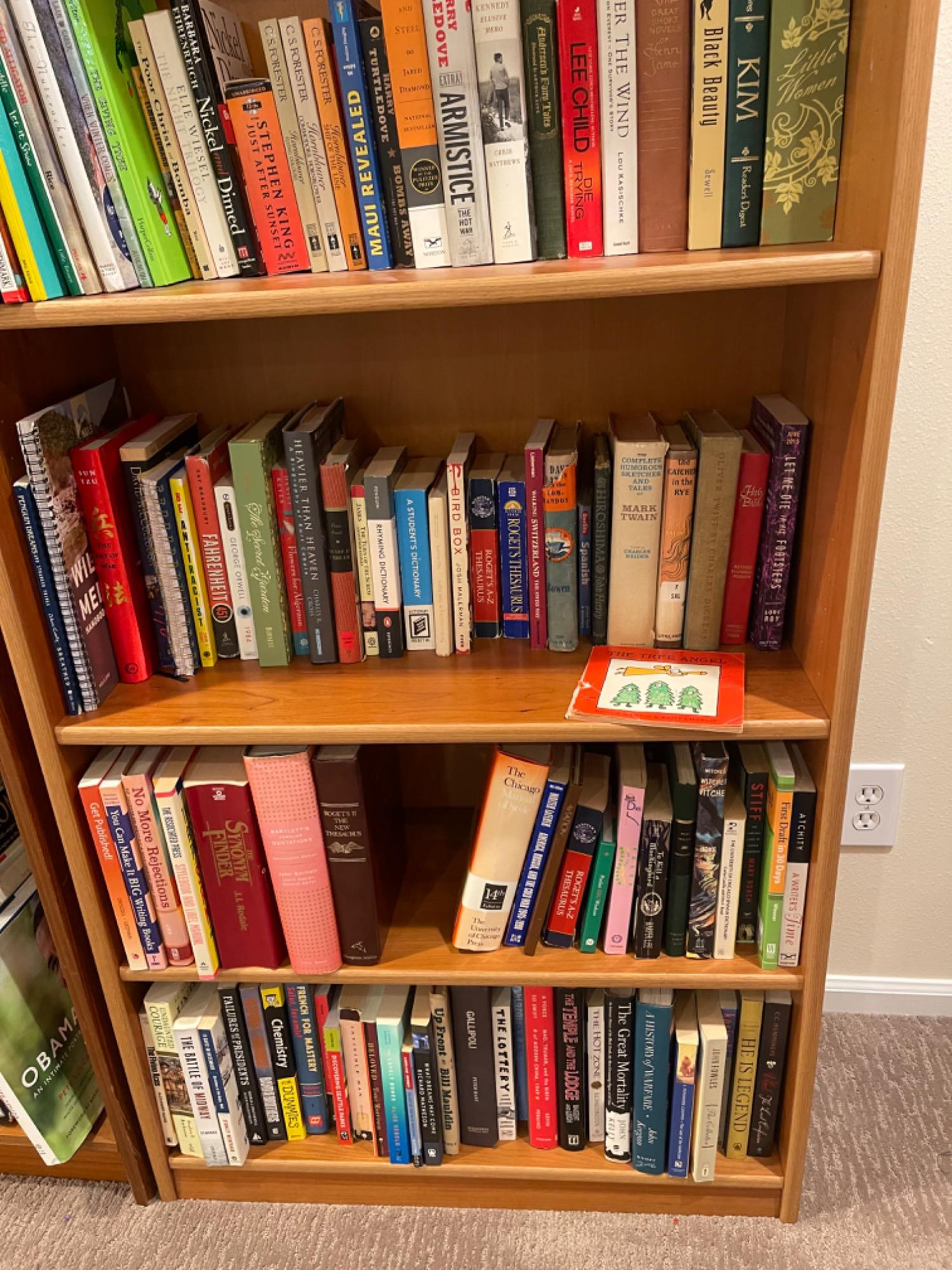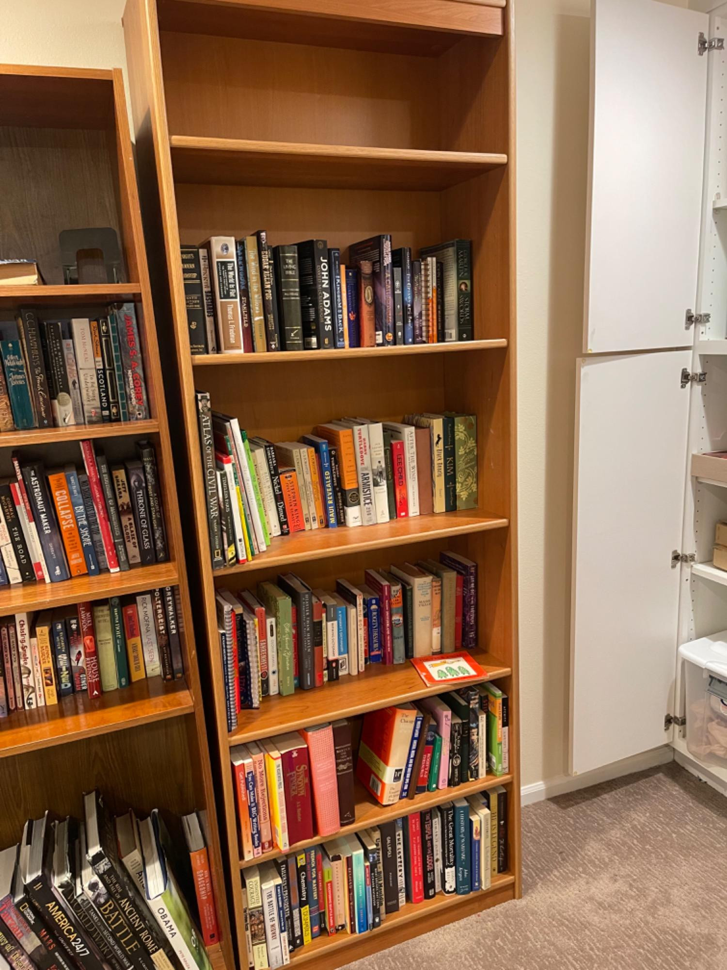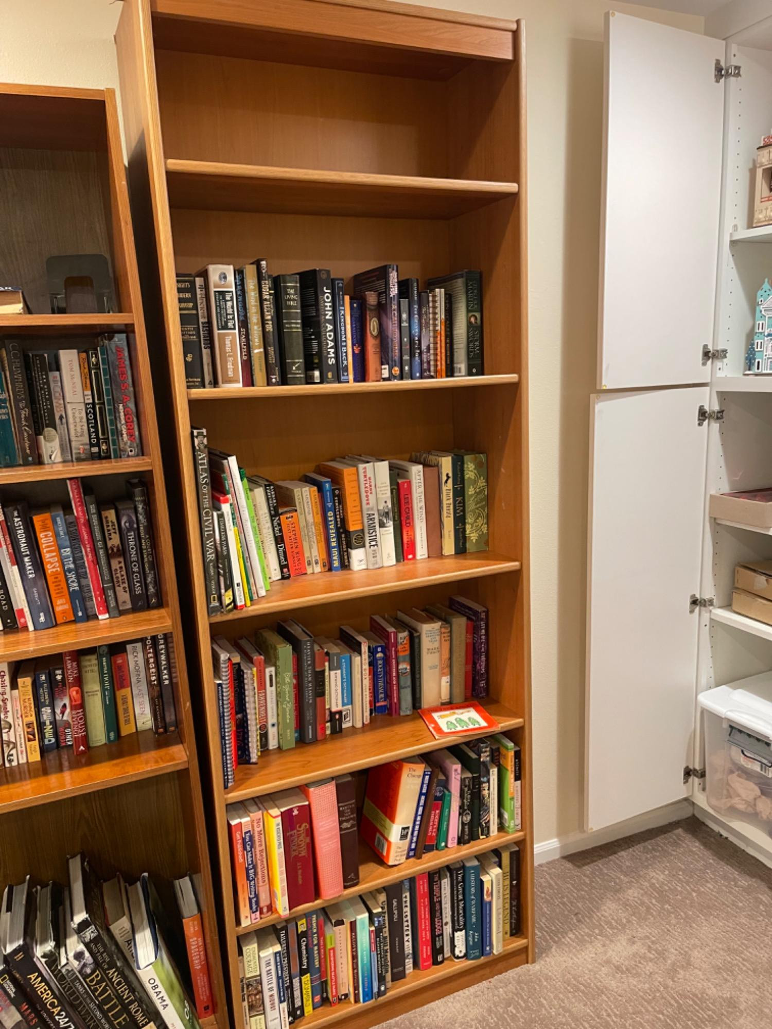 Large Bookshelf and Books! Some Vintage! Not all books are photographed in detail. Much more to find! All books are included in sale, and must go with bookshelf. Bookshelf has some staining, scratches and chipping, but it in good sturdy condition.