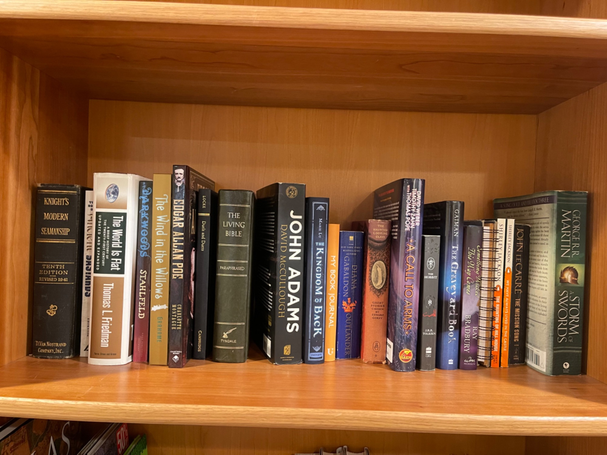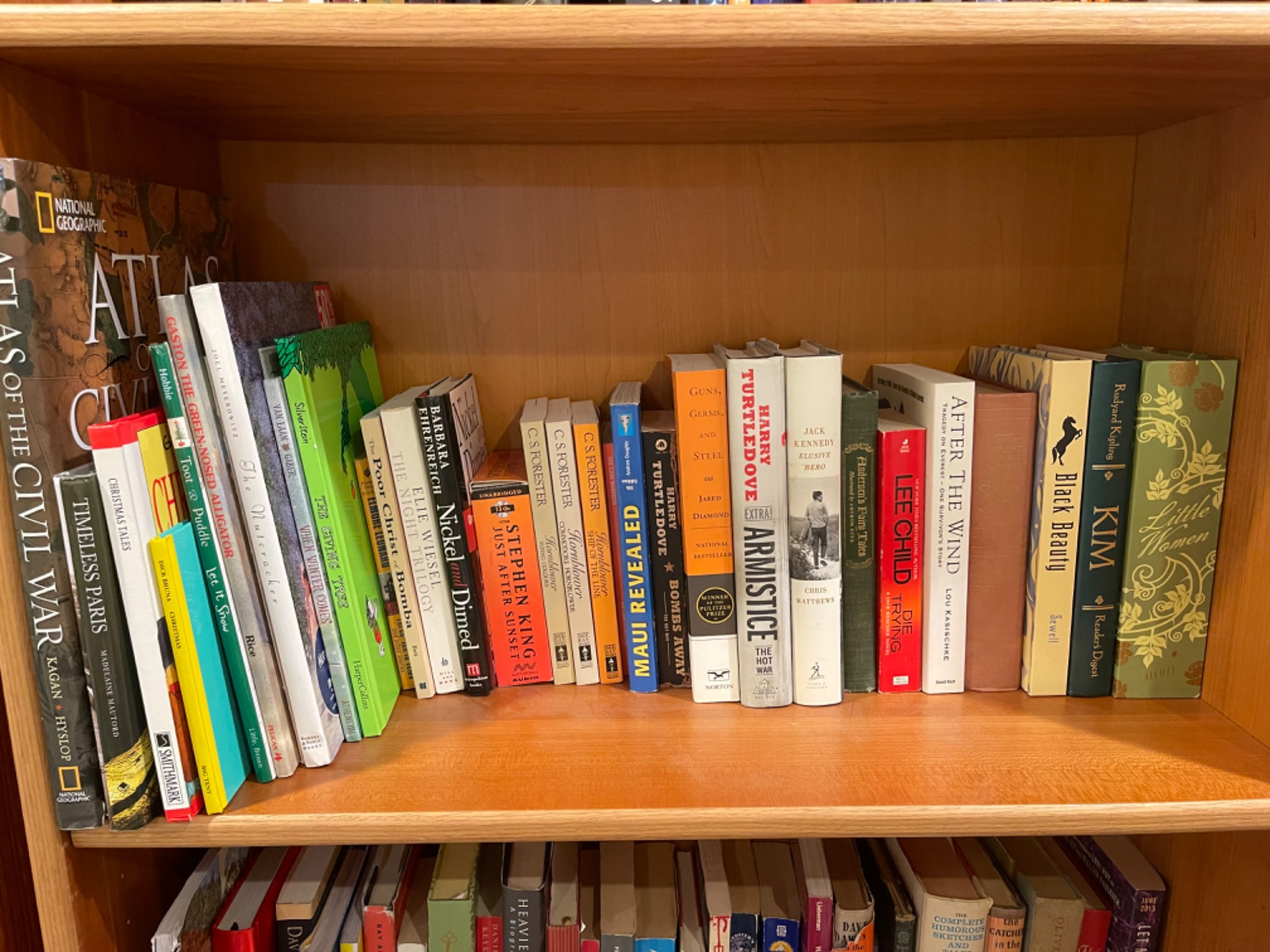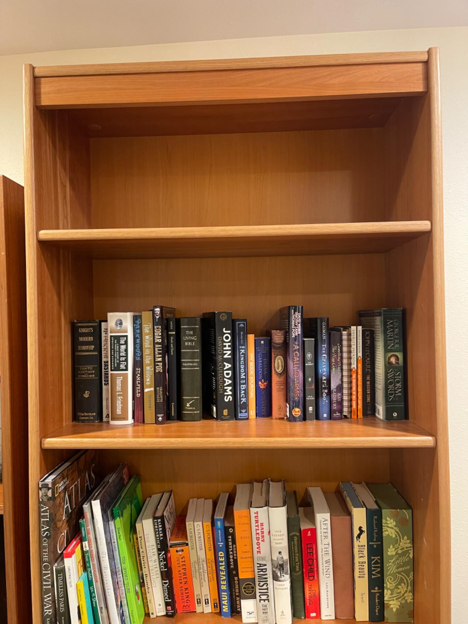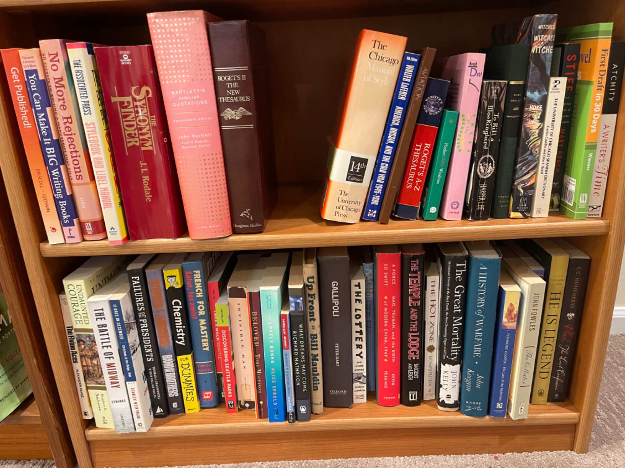 Large Bookshelf and Books! Some Vintage! Not all books are photographed in detail. Much more to find! All books are included in sale, and must go with bookshelf. Bookshelf has some staining, scratches and chipping, but it in good sturdy condition.
