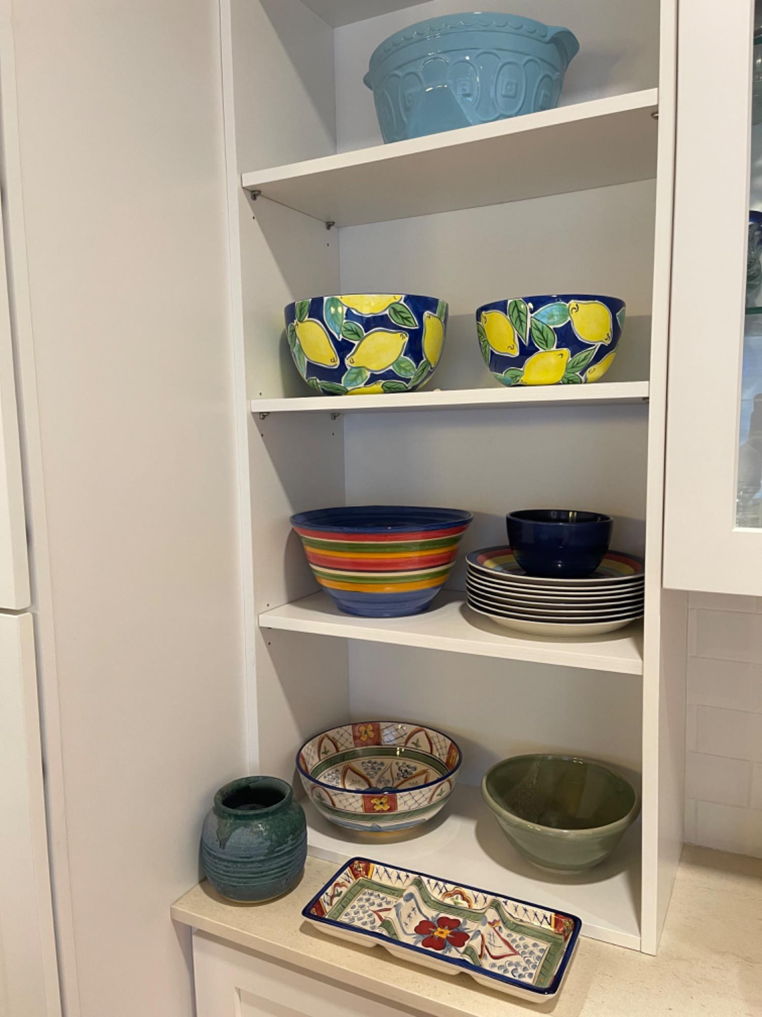 Decorative Kitchen Decor, Bowls and Dishes All have some scratches and scuffs from use. Rainbow plates have some chips around edges on a few of the plates. Smallest: 6" W Largest: 13.5" W