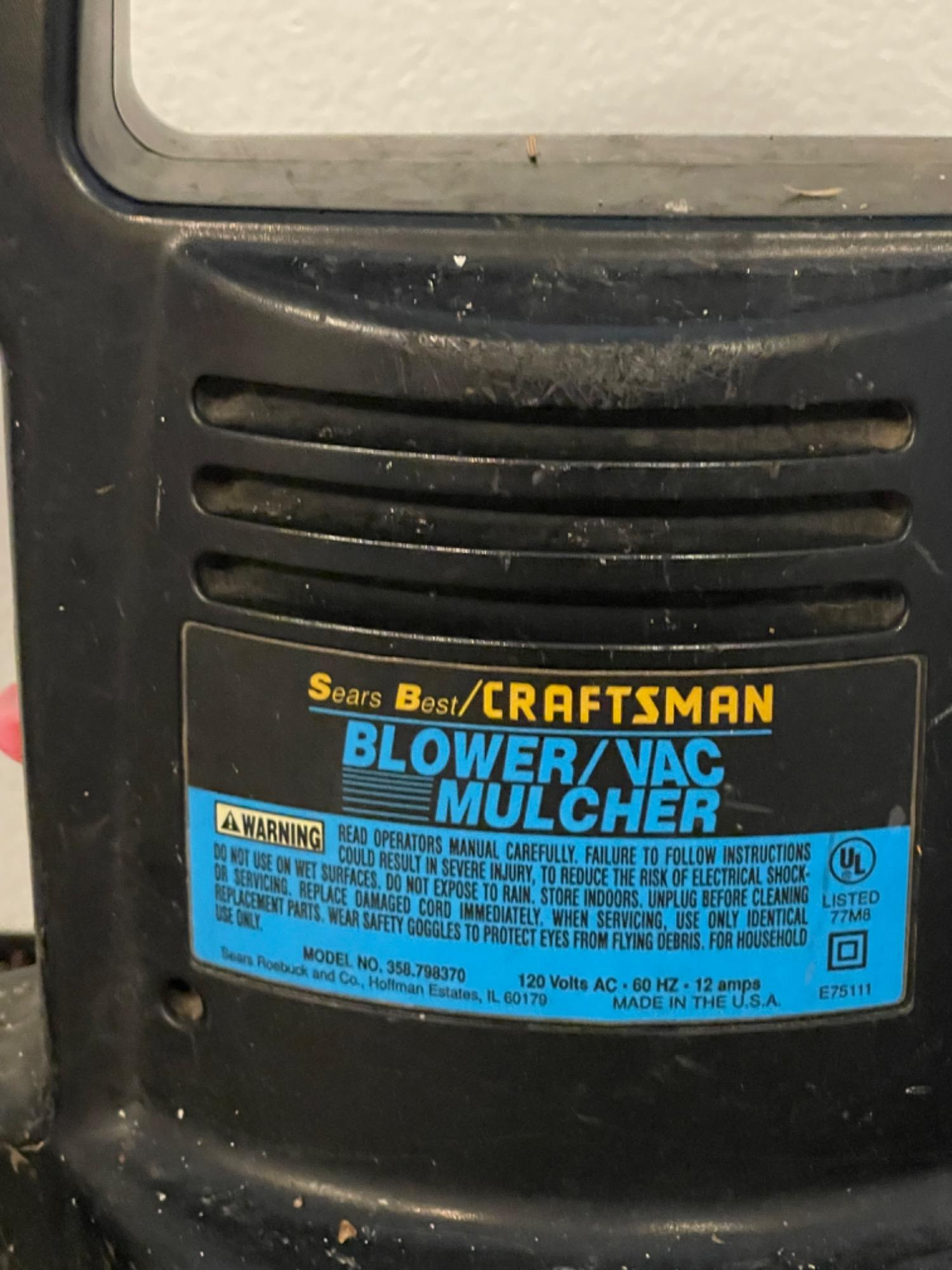 Craftsman Blower Untested, but was working great when last used. Very used, Needs cleaning.