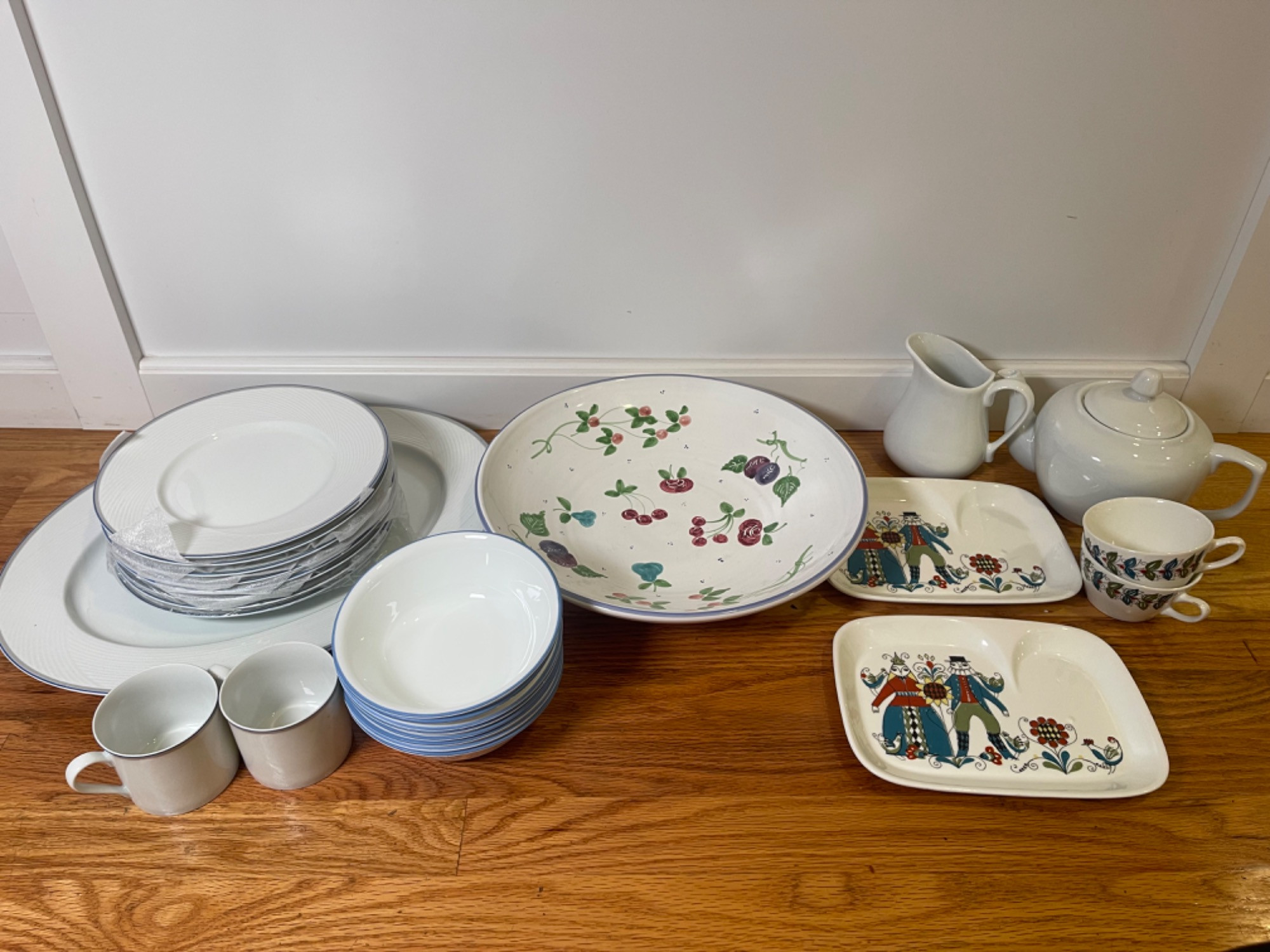 Assorted Vintage Dishes - Dansk, Corelle, Saga Norway & More! All in good used condition. All have minor scuffs and scratches from use. Smallest: 3" W Largest: 16.75" W