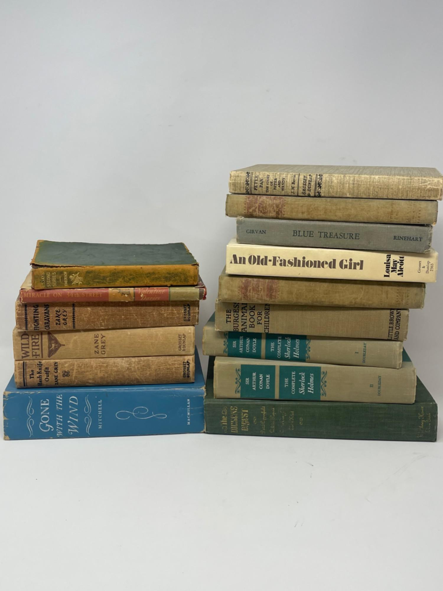 Vintage and Antique Books! - Sherlock Holmes, Gone With The Wind + Not all years and contents of books photographed. All books range in quality. A couple are very worn and fragile, while others are holding together much better. Please see photos.