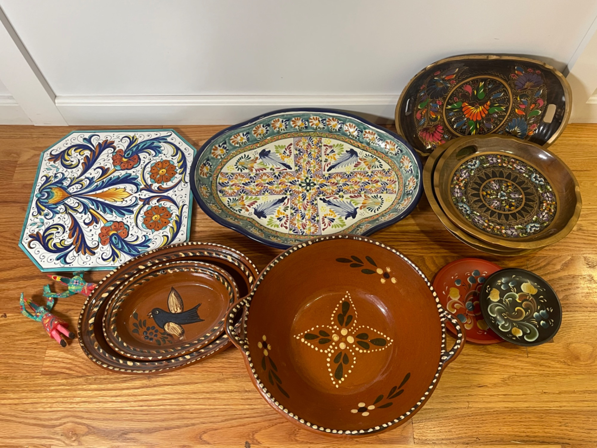 Colorful Platters & Dishes - Italian, Mexican & Norwegian! All are in very good used condition. No large cracks or chips. Smallest: 6" W Largest: 18.5" W