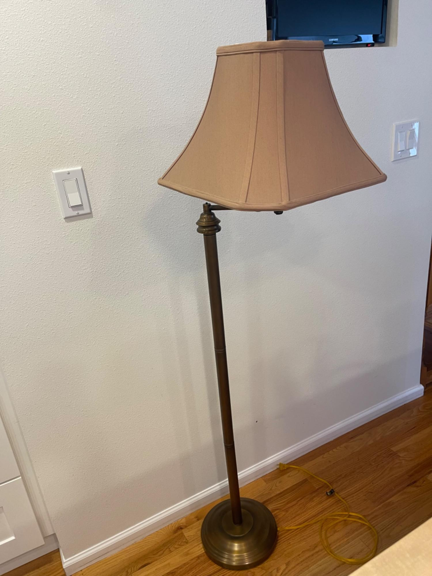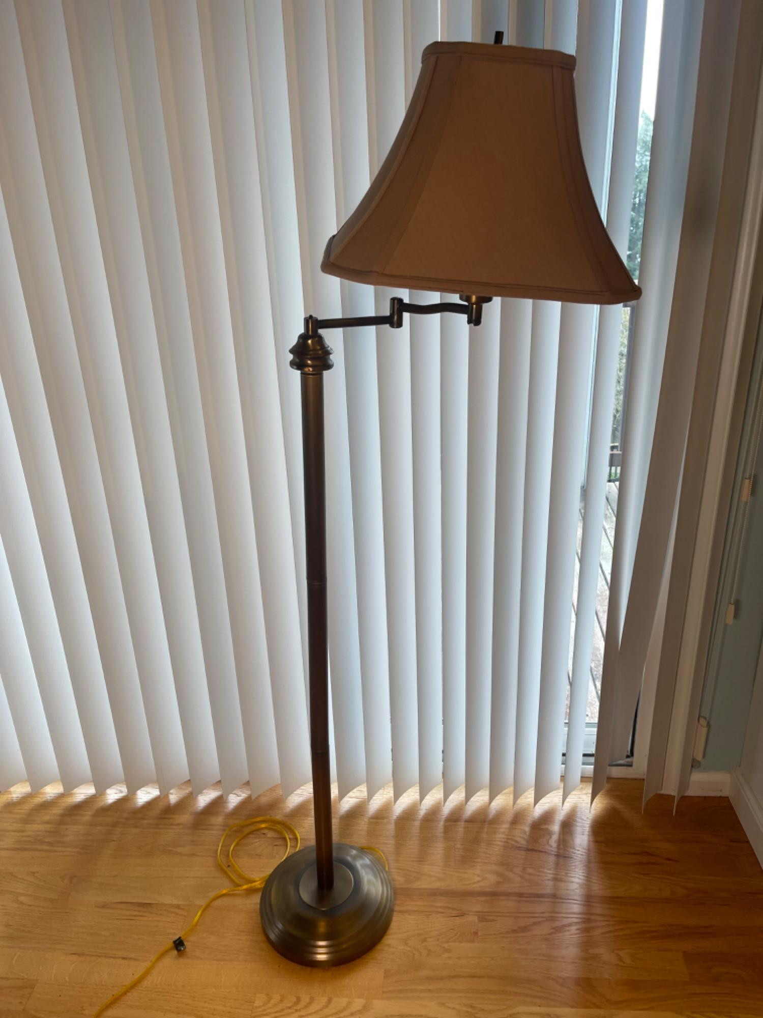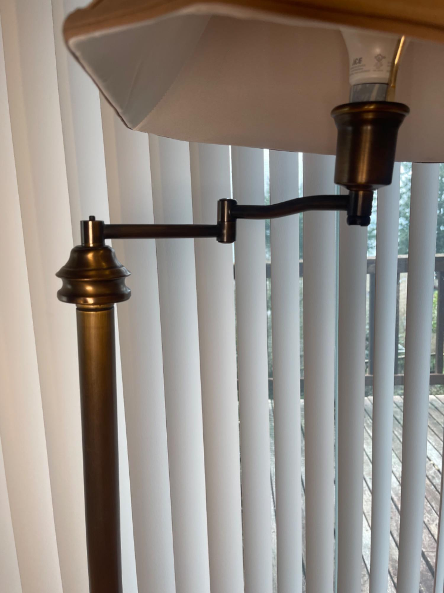 Swing Arm Floor Lamp Good working condition. Minor staining and fraying to shade.