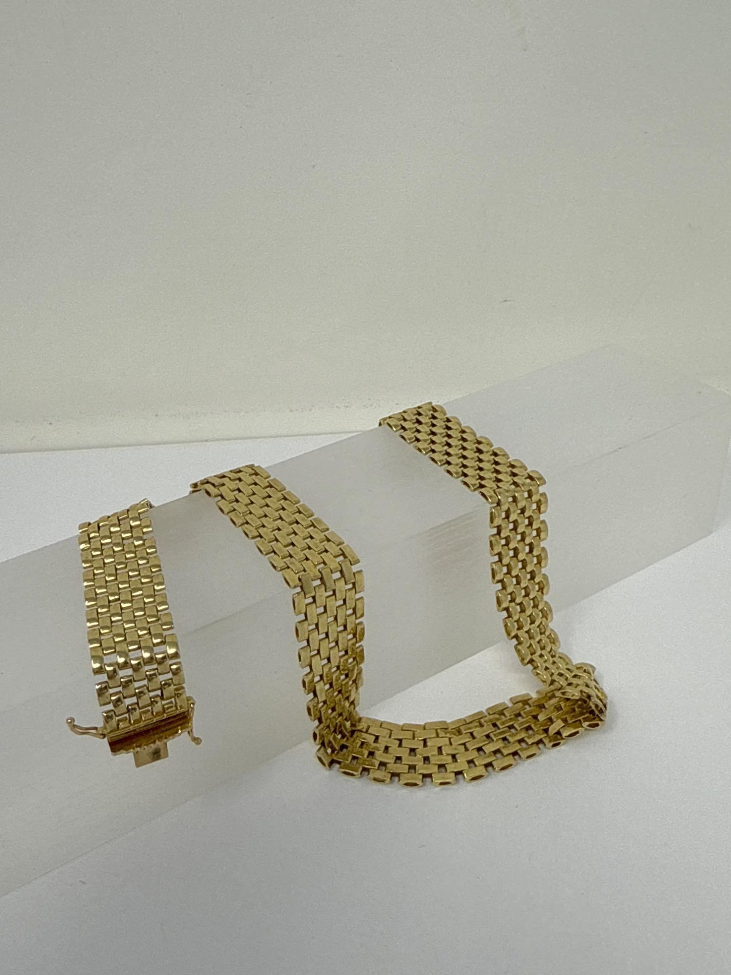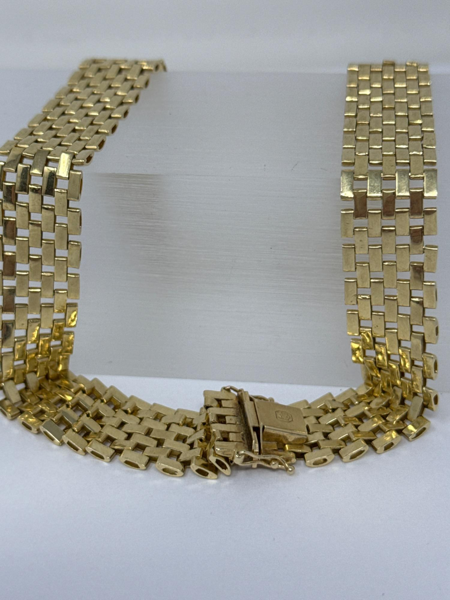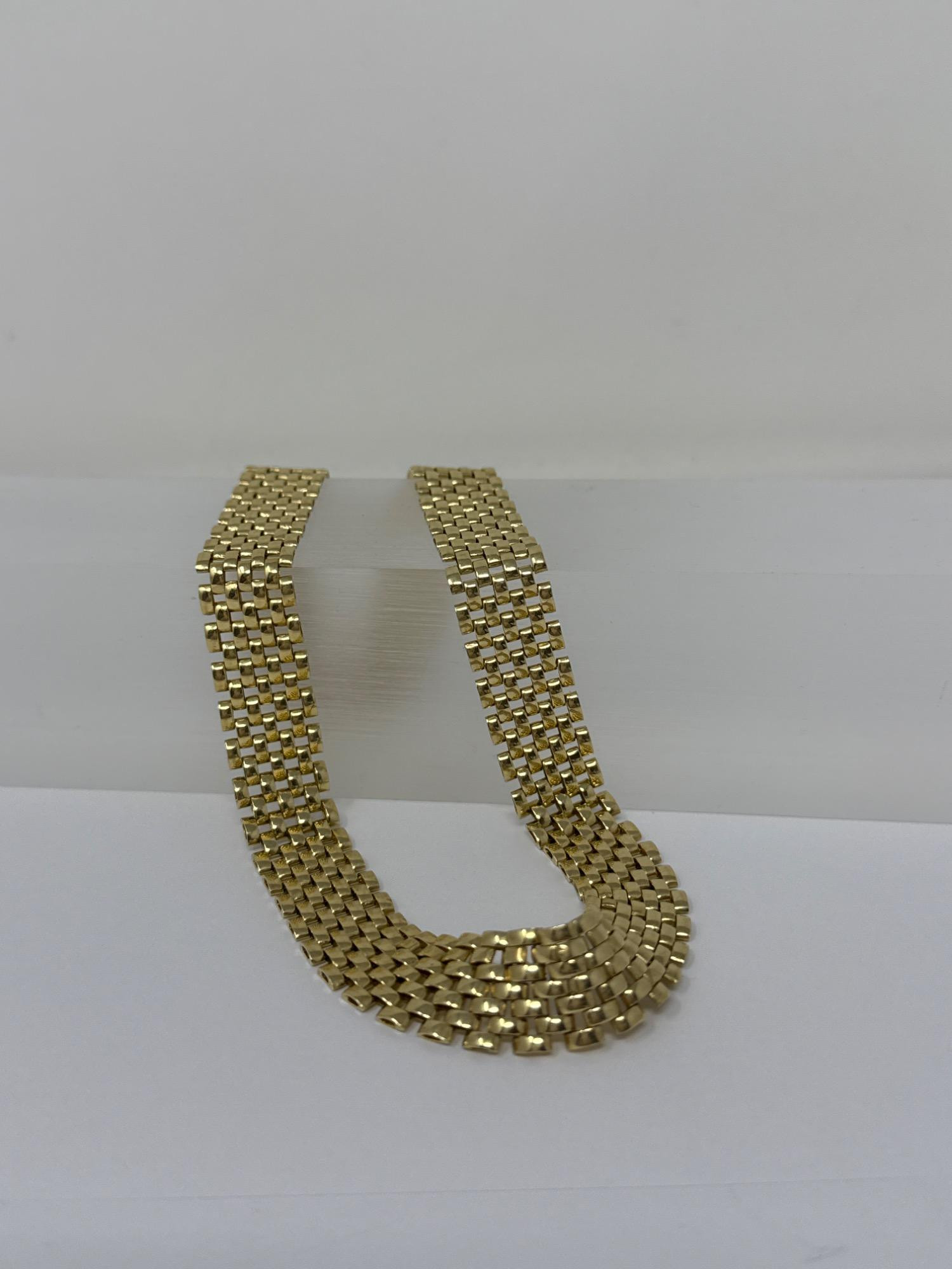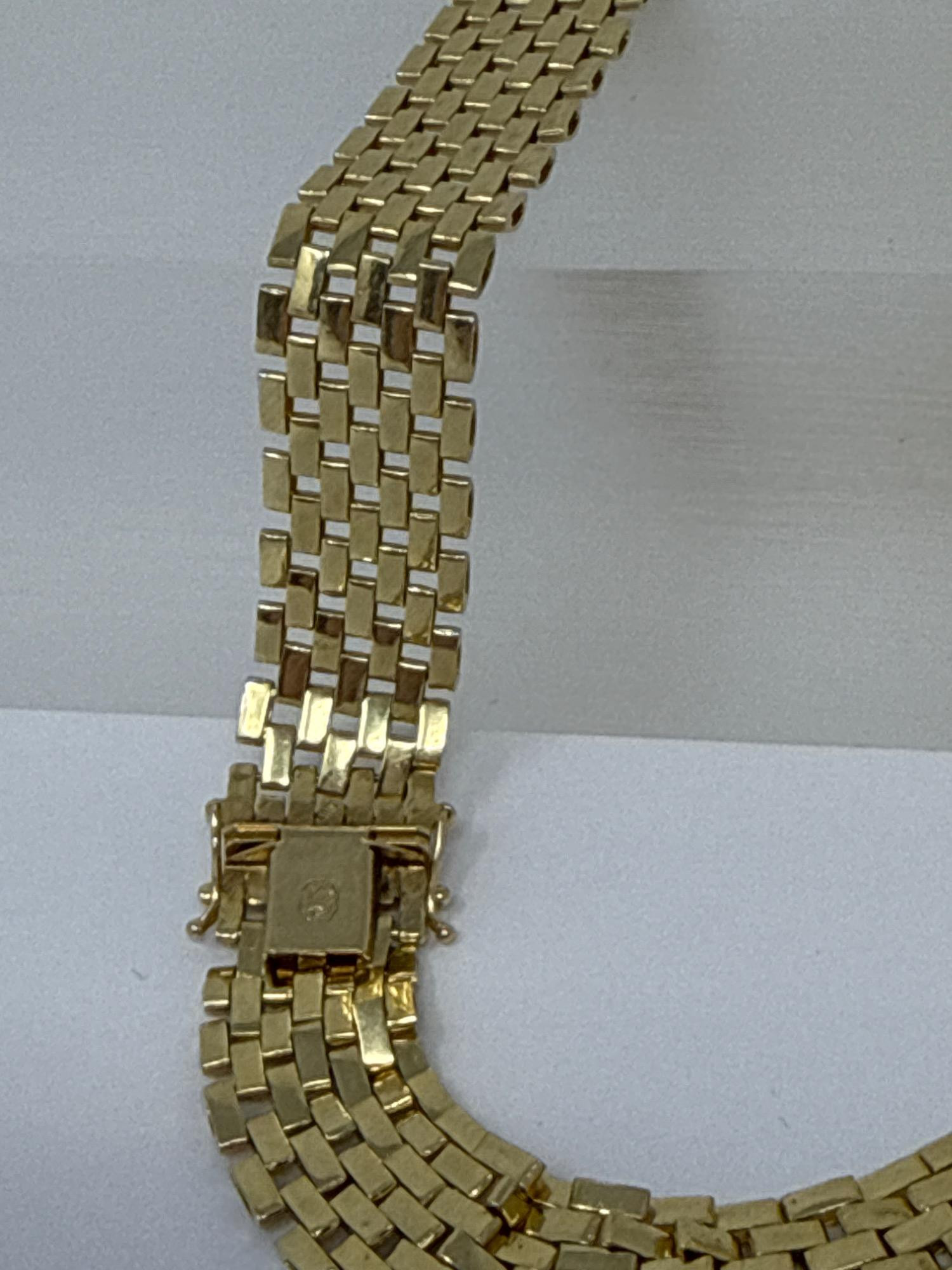 Stunning Panther Link 14 K Gold Necklace 52 Grams. Safety clasp. Very good condition. Display block NOT included.