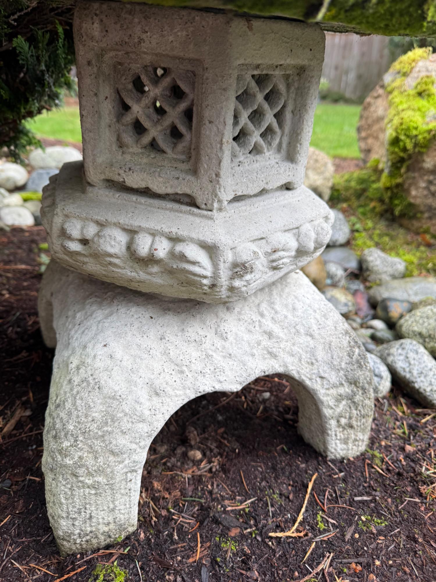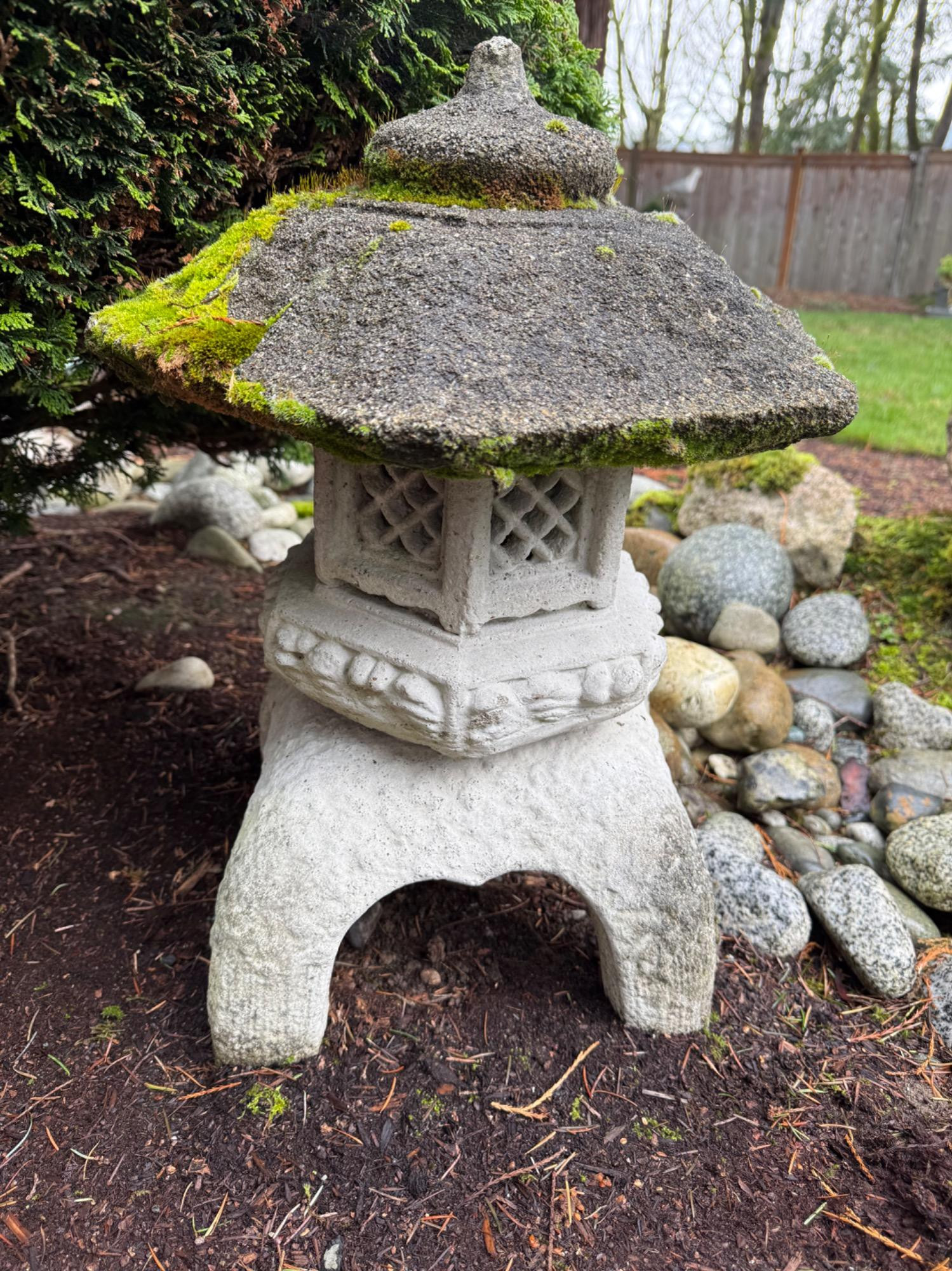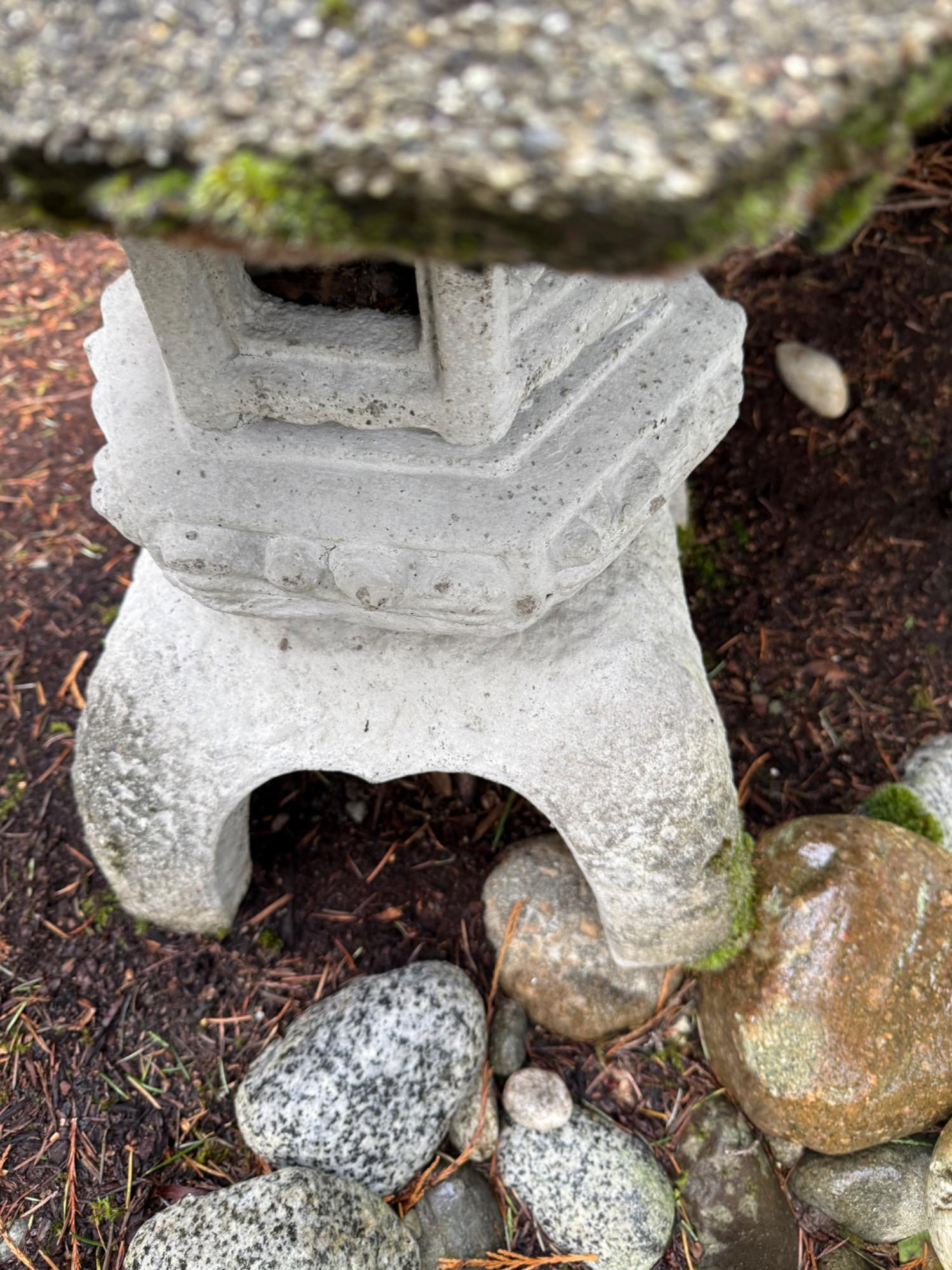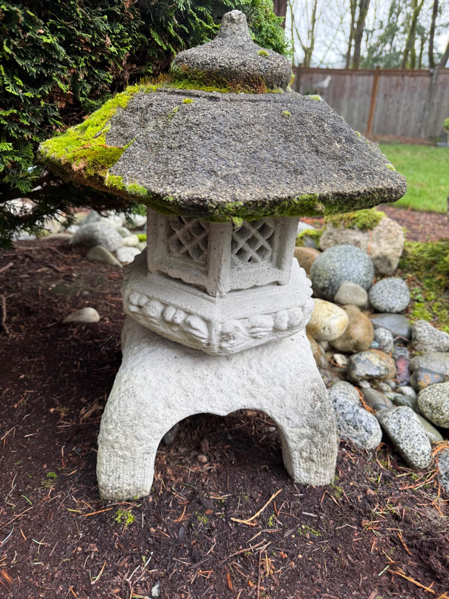 Cement Pagoda BELLEVUE PICK UP ONLY - We will reach out to you with the pick up address after the auction is over. 17" W at the top Comes apart.