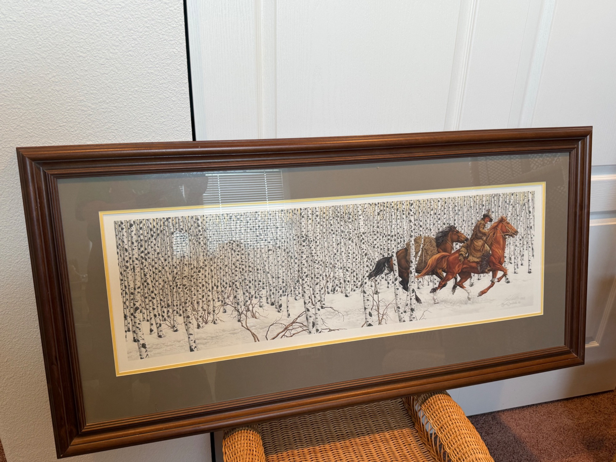 Numbered print by Bev Dolittle. 34178/67996 Signed by artist. Professionally framed with print envelope included. Titles “Sacred Ground”